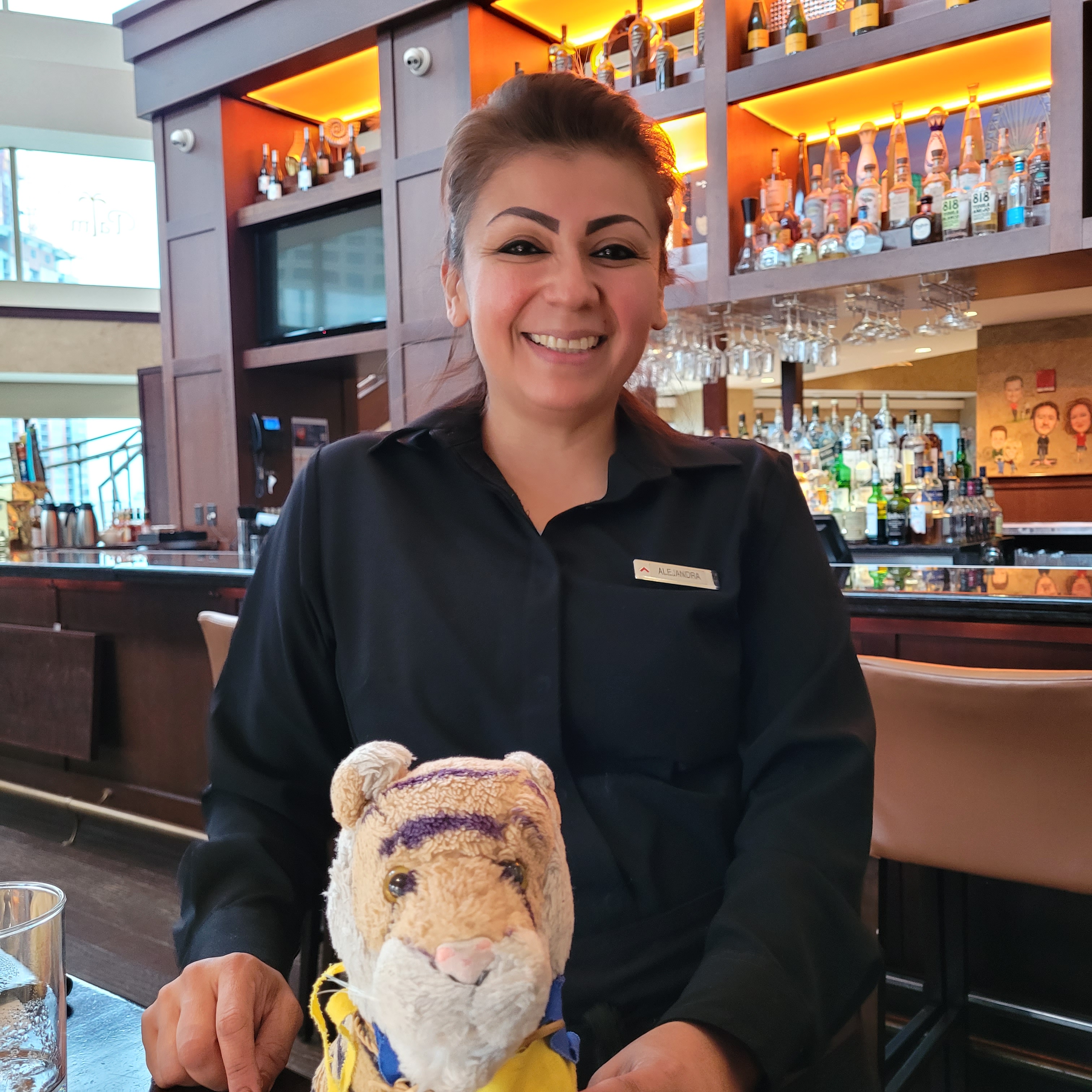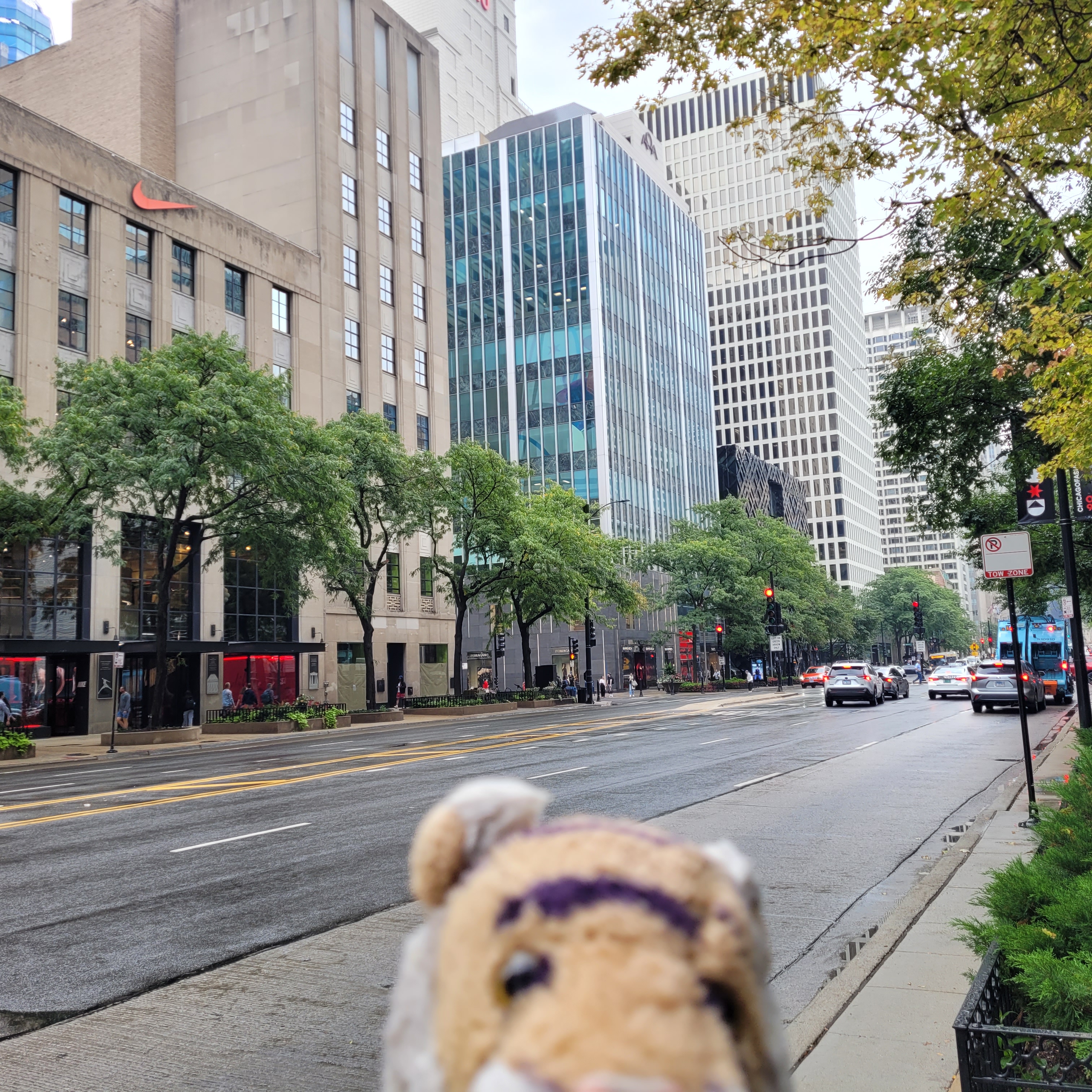 We went on a trip to Chicago!!! It was SO MUCH FUN!!! Here I am on the Riverwalk along the Chicago River! So many kinds of boats use the river – private yachts, tour boats, kayaks, barges, coast guard boats; it is very interesting to watch.OMG!! Auntie Darcy met us in Chicago that made me so happy she has so many good ideas for things to do! Here we are at the famous Chicago Cloud Gate sculpture also know as The Bean. Auntie Darcy lets me ride on her head mom does not let me do that.Here is The Bean in the evening you can see the reflection of some of the skyscrapers. We really loved this sculpture it is really cool and amazing! I will write more about The Bean later!We stayed at the Chicago Swissotel and it was great I highly recommend! This is the fruit plate that Auntie Darcy had for breakfast every morning at the hotel restaurant The Palm.This is Alejandra who took care of us at breakfast every day she is soooo beautiful and super nice and helpful and made our visit extra special! Here I am downtown after it rained and the streets are still wet. On the way out of the hotel we asked the concierge if it was going to rain and he said yes would you like an umbrella and mom said yes Auntie Darcy said no she had her good rain jacket. Then after walking for 20 minutes it started POURING RAIN!! Ha ha that was funny! me and mom had an umbrella and stayed dry and Auntie Darcy decided to go back and get an umbrella she is so much fun!