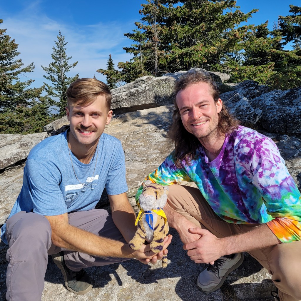 We went hiking! Last time we were on this mountain it was winter and mom got tired of breaking trail through the snow so we did not make it to the top of Mt. Kit Carson back then.In case you did not bring a trail map the park puts them up in a few spots. We did not bring a magnifying glass but it is okay because we were familiar with the trails where we were going. Notice the special Chicago pin I am wearing! From our trip to Chicago!This is me with Nick and Joey! Who we met at the summit of Mt. Kit Carson! They were super nice to talk to and are both super handsome. But not quite as handsome as me. Hey guys if you are reading this, you were right! Coeur d’Alene is French and it means “heart of the awl” because the French fur traders thought the indigenous Schitsu’umsh people had skillful trading practices. So it does have to do with Native Americans too.Here is the view from the summit! There is wildfire smoke making it hazy but it was still a beautiful day and a fun hike!