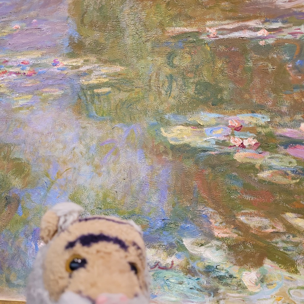 We went to the Art Institute of Chicago and it was fantastic!!!! Definitely one of the best art museums we have been to. Here I am outside with one of the Lions. Lions are okay but it would have been better if it was a TIGER. Tigers Rule!We saw many famous paintings! This is the real deal!It is good to look at art books or art online, but there is something special about seeing the real thing. You can see the paint texture and the colors in real life.The Art Institute building is beautiful and amazing but also very confusing. Mom and Auntie Darcy spent a lot of time figuring out how to get around and even when they got directions it was like “walk through two galleries until you see such-and-such a painting, then go down the stairs and turn around and go under the stairs and there will be elevator on the right go down another floor and all the way to the other end of the building and take two flights of stairs back up and when you see the statue of such and such there is an entry just past that”. Here is a picture of a painting of Monet’s water lilies for serenity.In case you could not tell this is a painting by Picasso.When we finally left the museum there were some awesome drummers out on the sidewalk! After a long day looking at art it was perfect for getting re-energized!On the way back to the hotel there were a bunch of professional photographers set up at an overpass and we found out it was because of the fall equinox. Twice a year on the equinox the sun passes right between the buildings on this major street and is super cool to see. You can search for it on the internet for good photos! We decided to stick around and wait for it!Soon a good sized crowd had gathered and spilled into the street and was causing a headache for traffic! It was great fun! You can see where the sun will pass between the buildings, but about 5 minutes before the event a cloud covered the sun and no one got a good photo. Everyone will have to try again in 6 months.