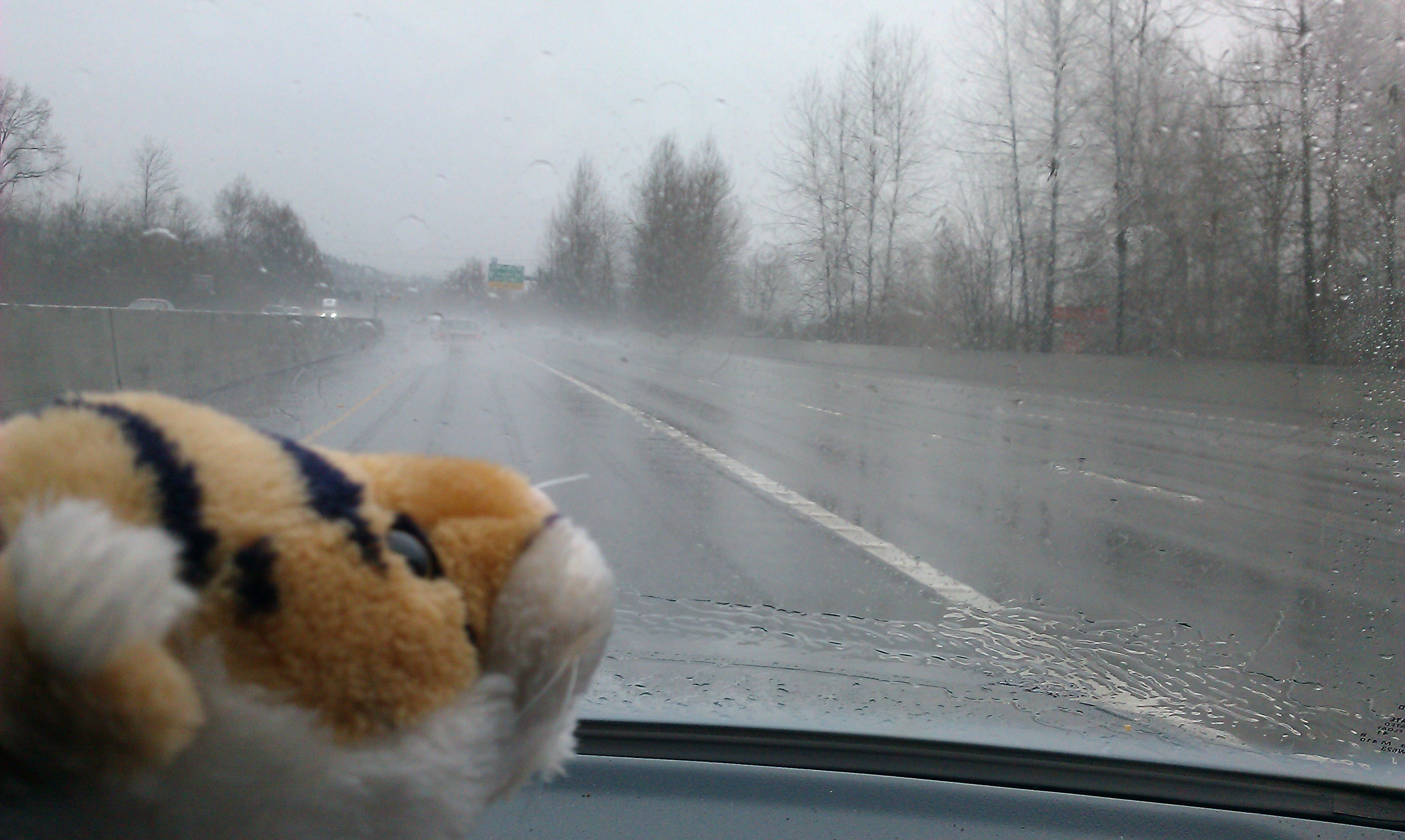 On Saturday mom went snowboarding and me and Dixie stayed in the car. It was cold and raining and I did not want to get wet. I mean Dixie did not want to get wet and cold she is just a puppy!
