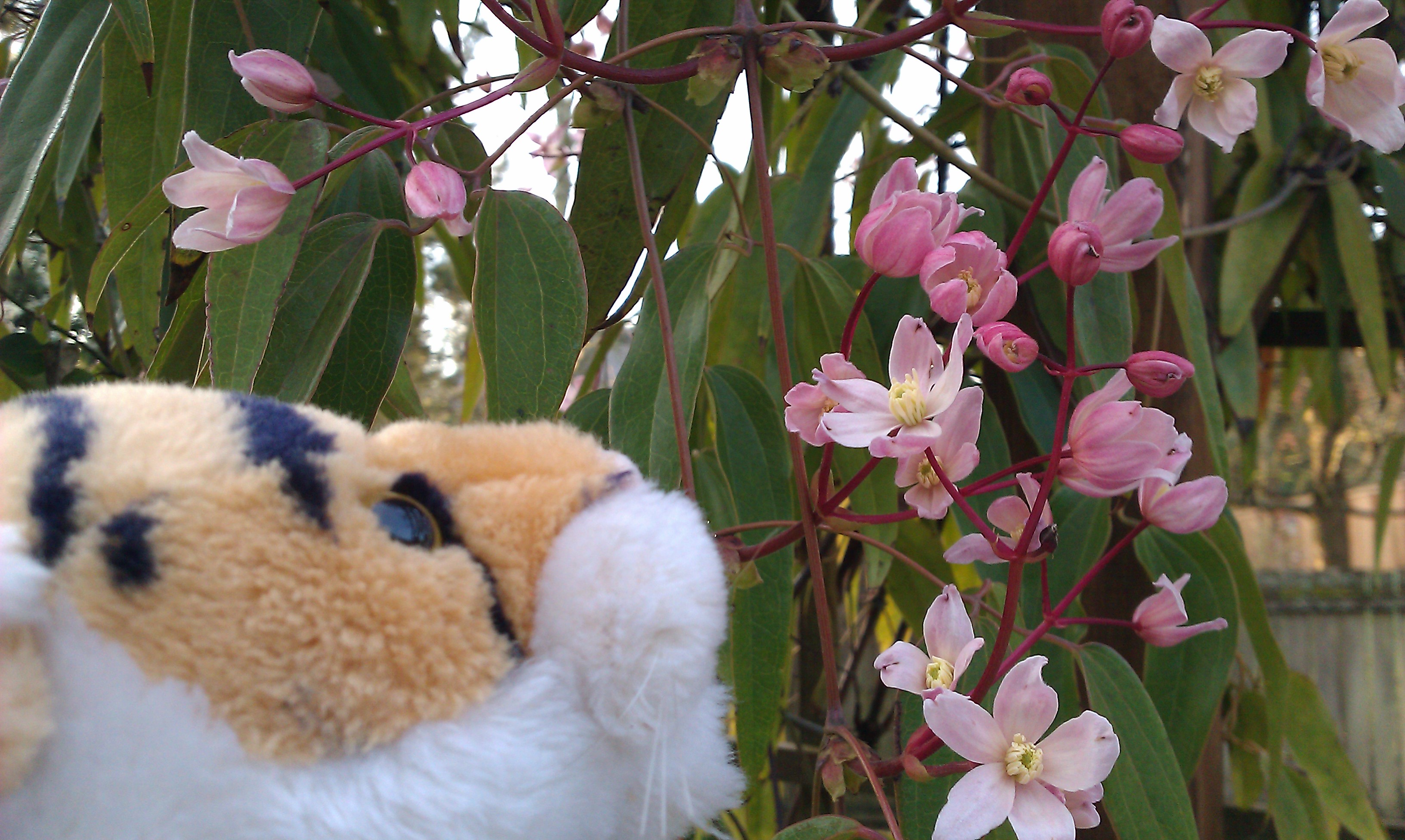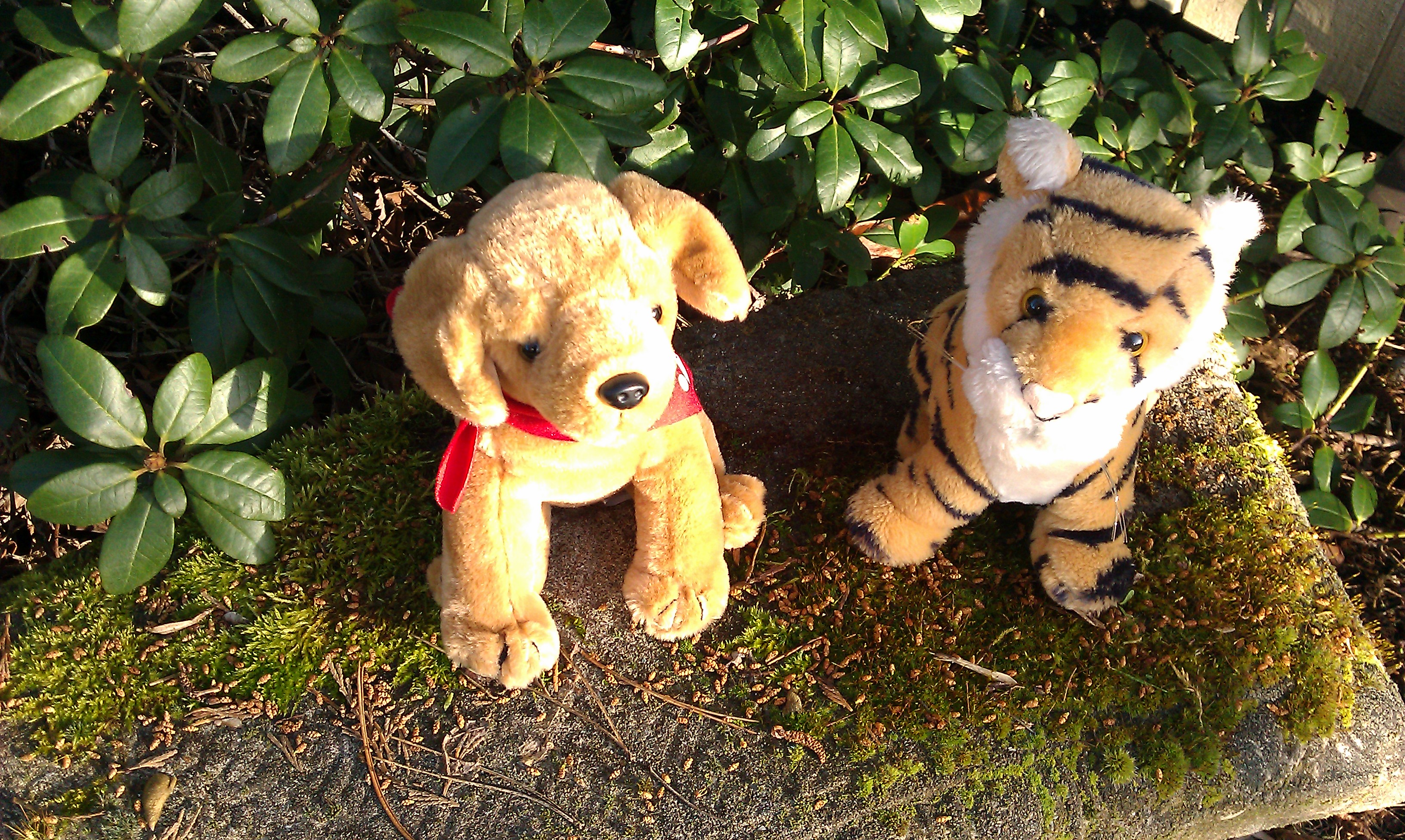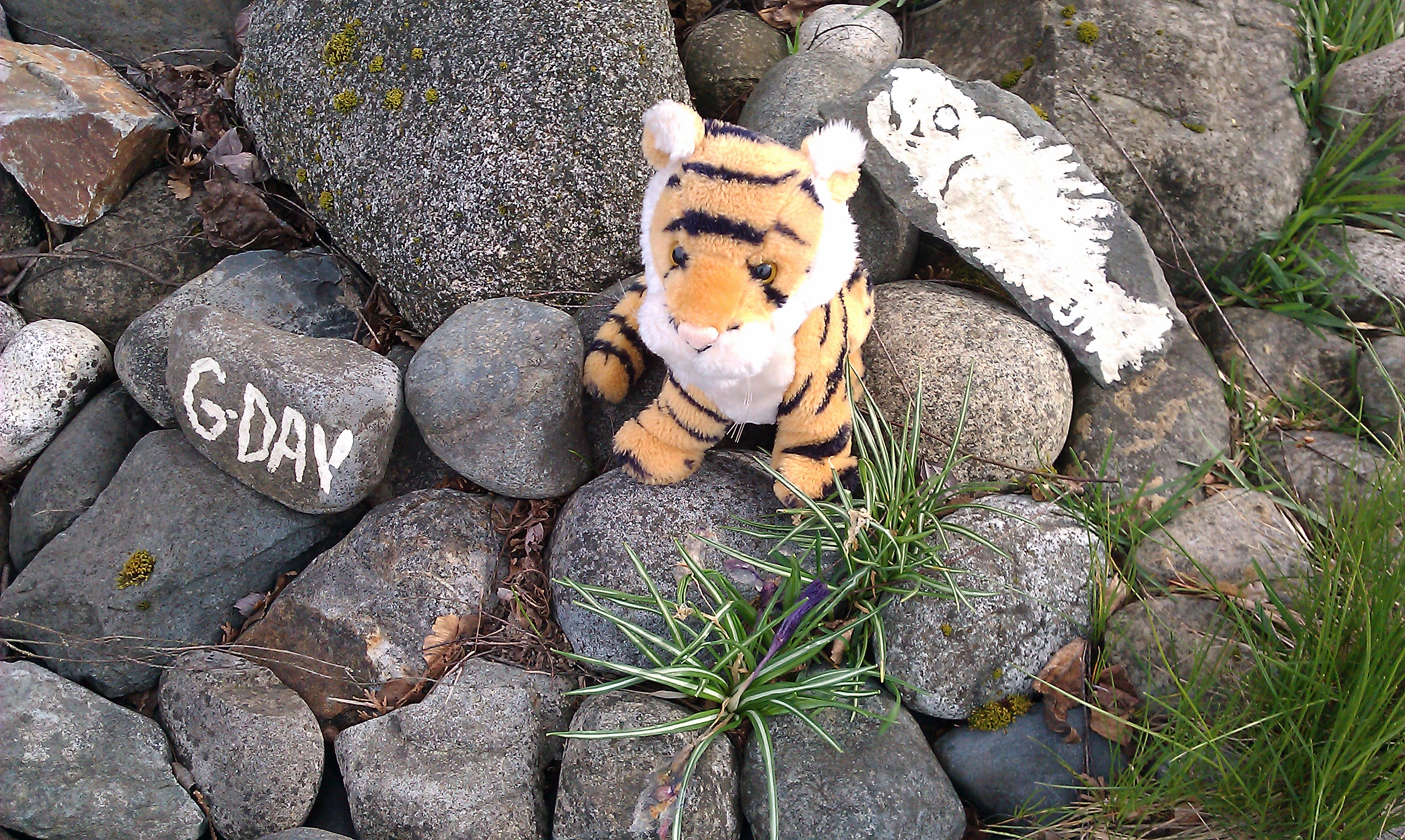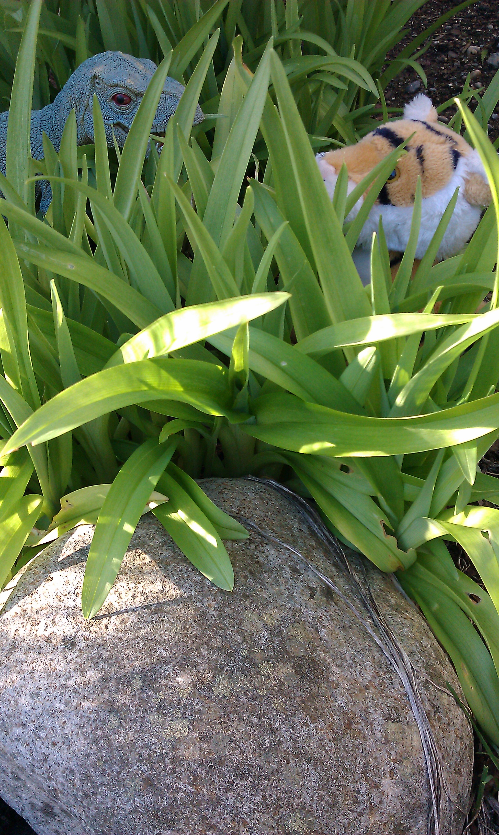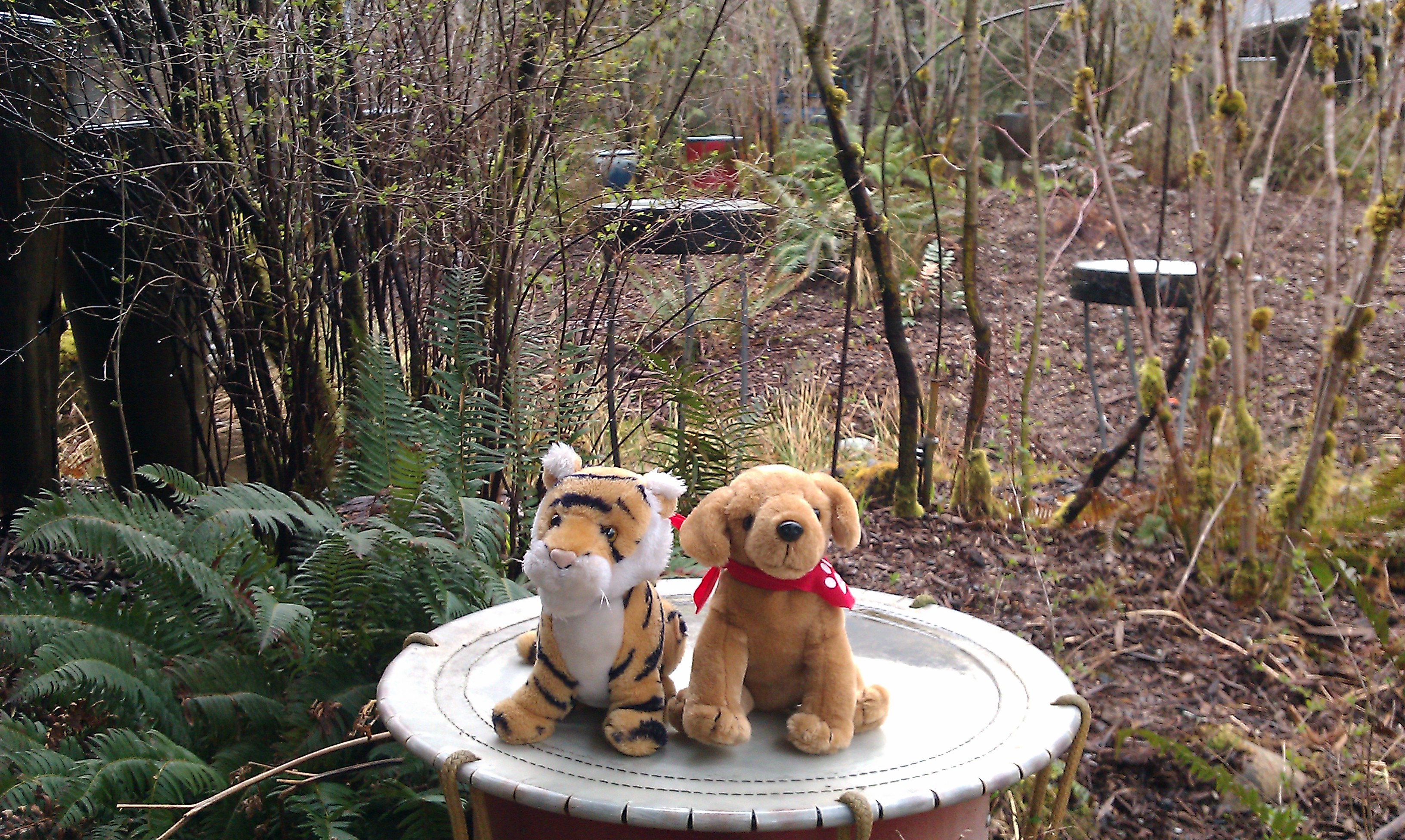 Here we are playing one of the drums. You are not supposed to walk in the rainforest garden but this drum was right by the walkway so it was ok.