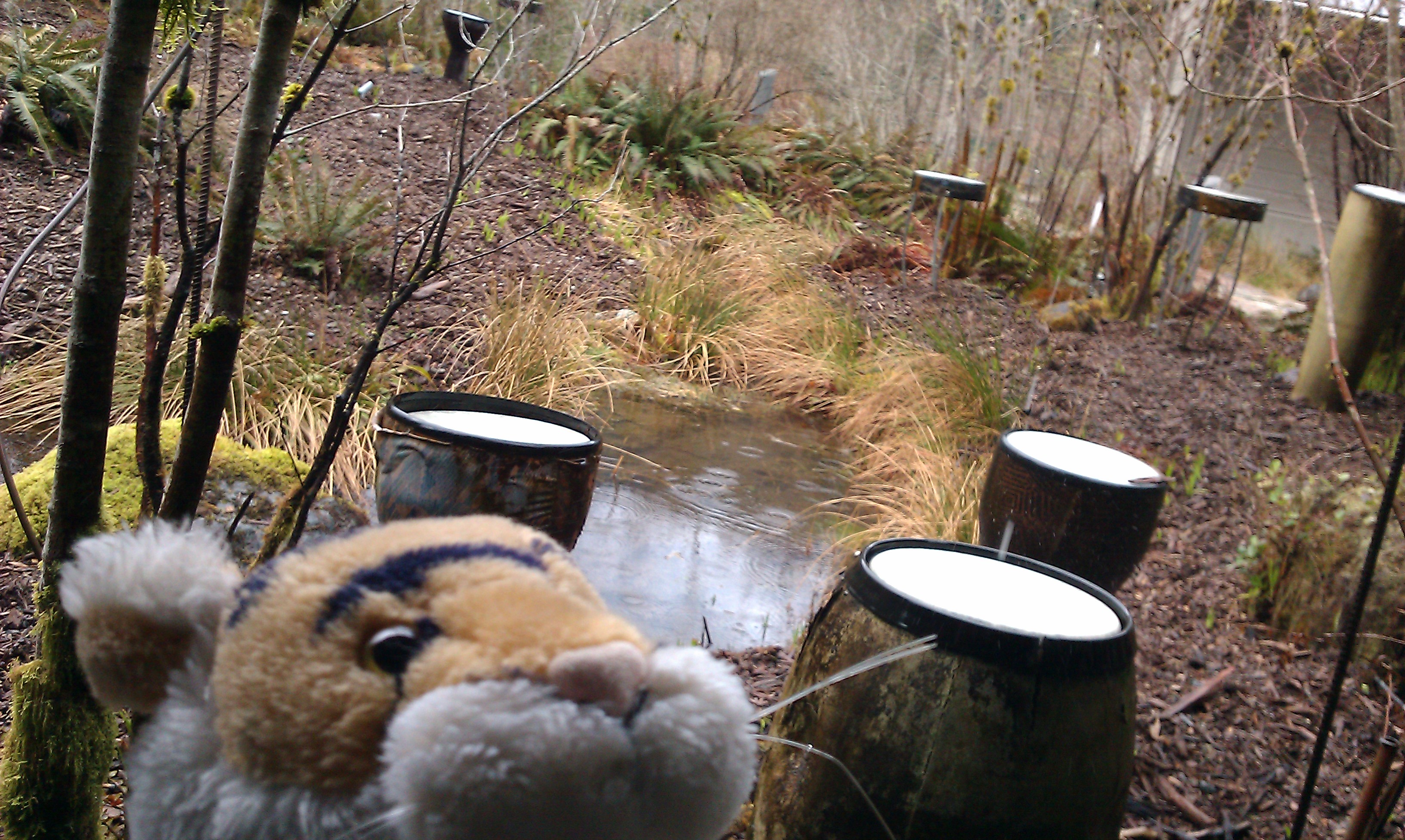 The we went to the Cedar River Watershed Education Center. It was Fantastic! It rains a lot there and they have a garden where the rain falls on drums and it sounds totally cool. Way fun!