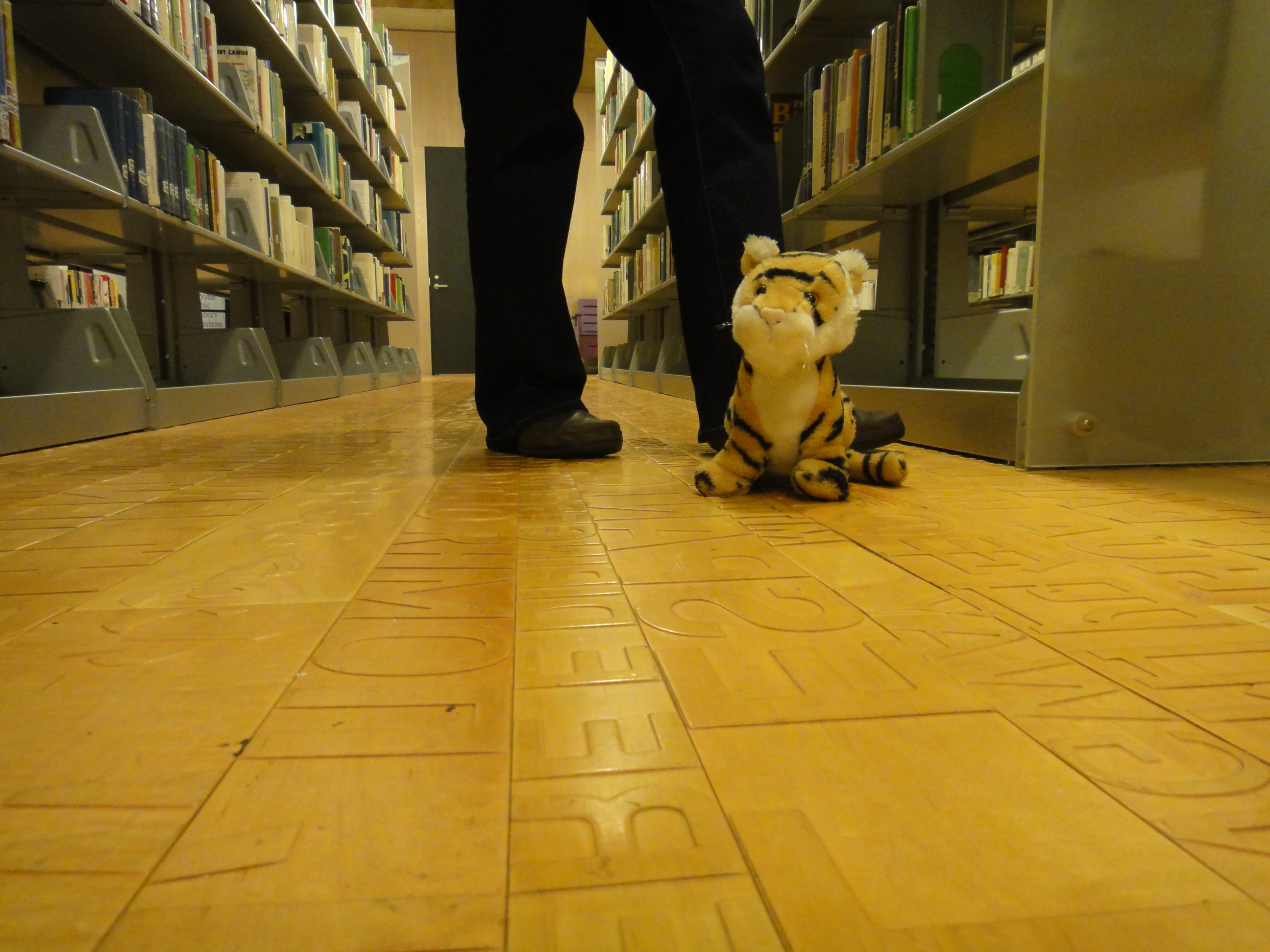 The floor has words in it! It is perfect for a tiger that is not so tall and cannot reach the bookshelves..