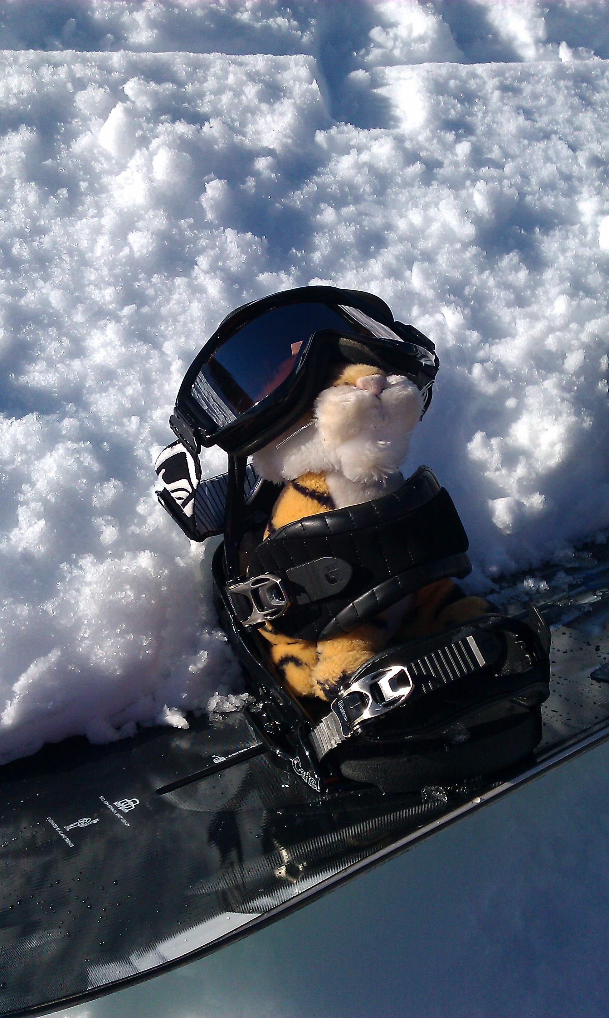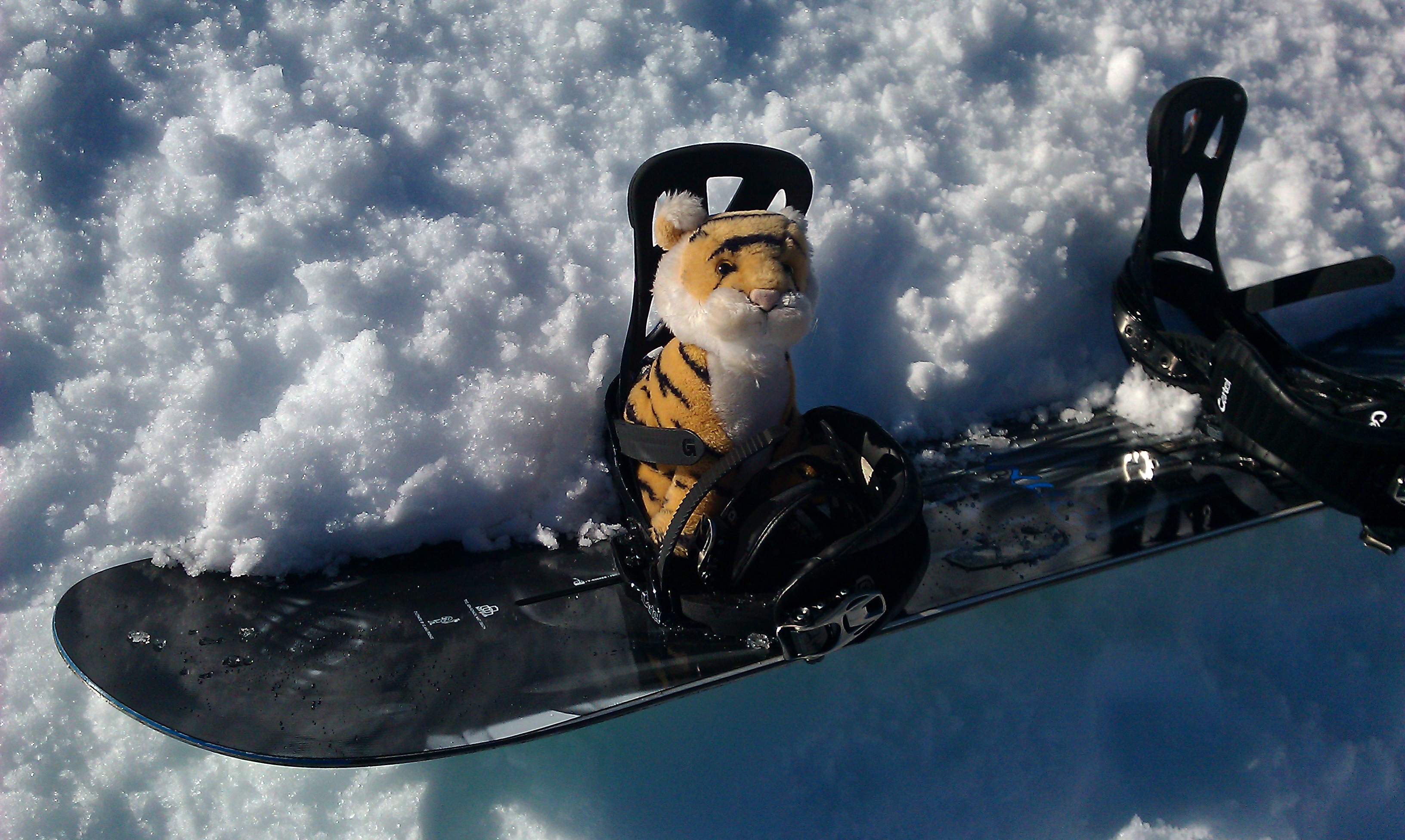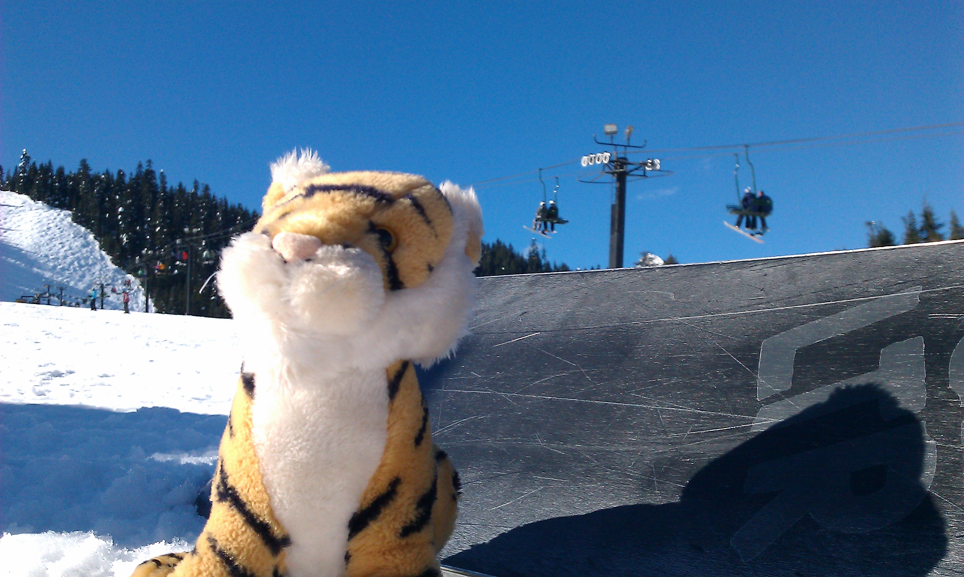 Whoo hooo! Riding with Auntie Darcy!!!! This is the way to snowboard! Free as a bird …. I mean tiger!