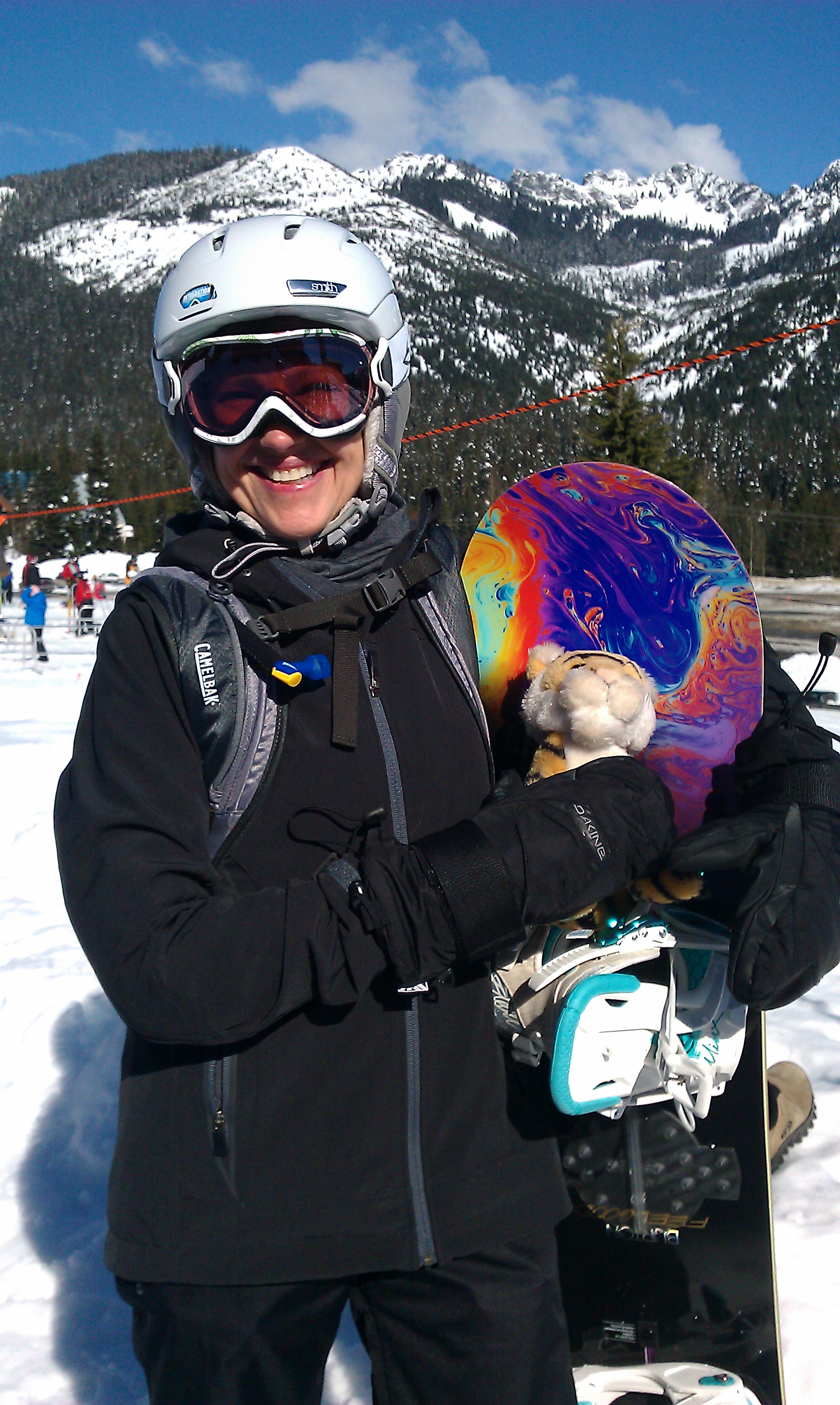 We met Mom’s friend Pat there. She can snowboard really good and has a really beauuutiful snowboard.