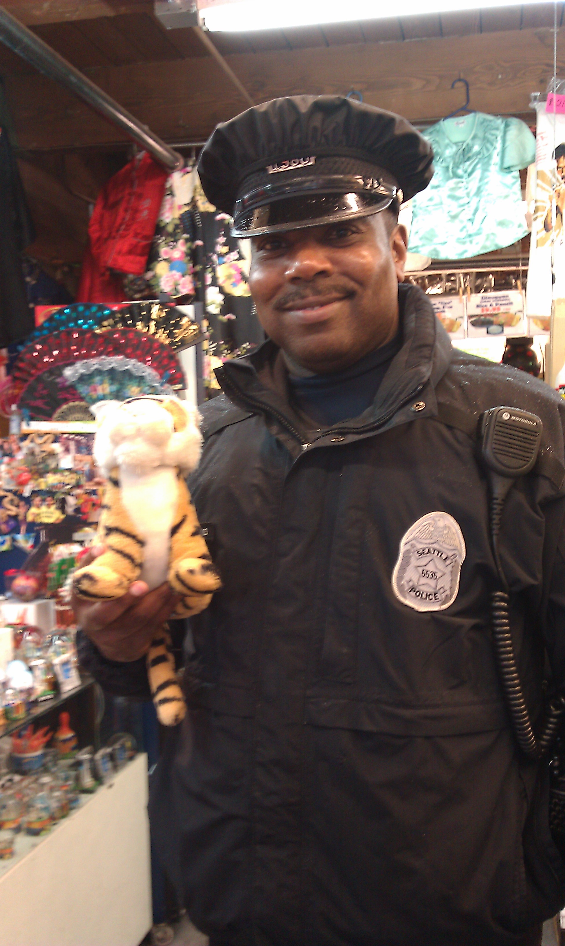 Here I am with the friendly policeman. I wanted him to handcuff me for fun but Mom said No.
