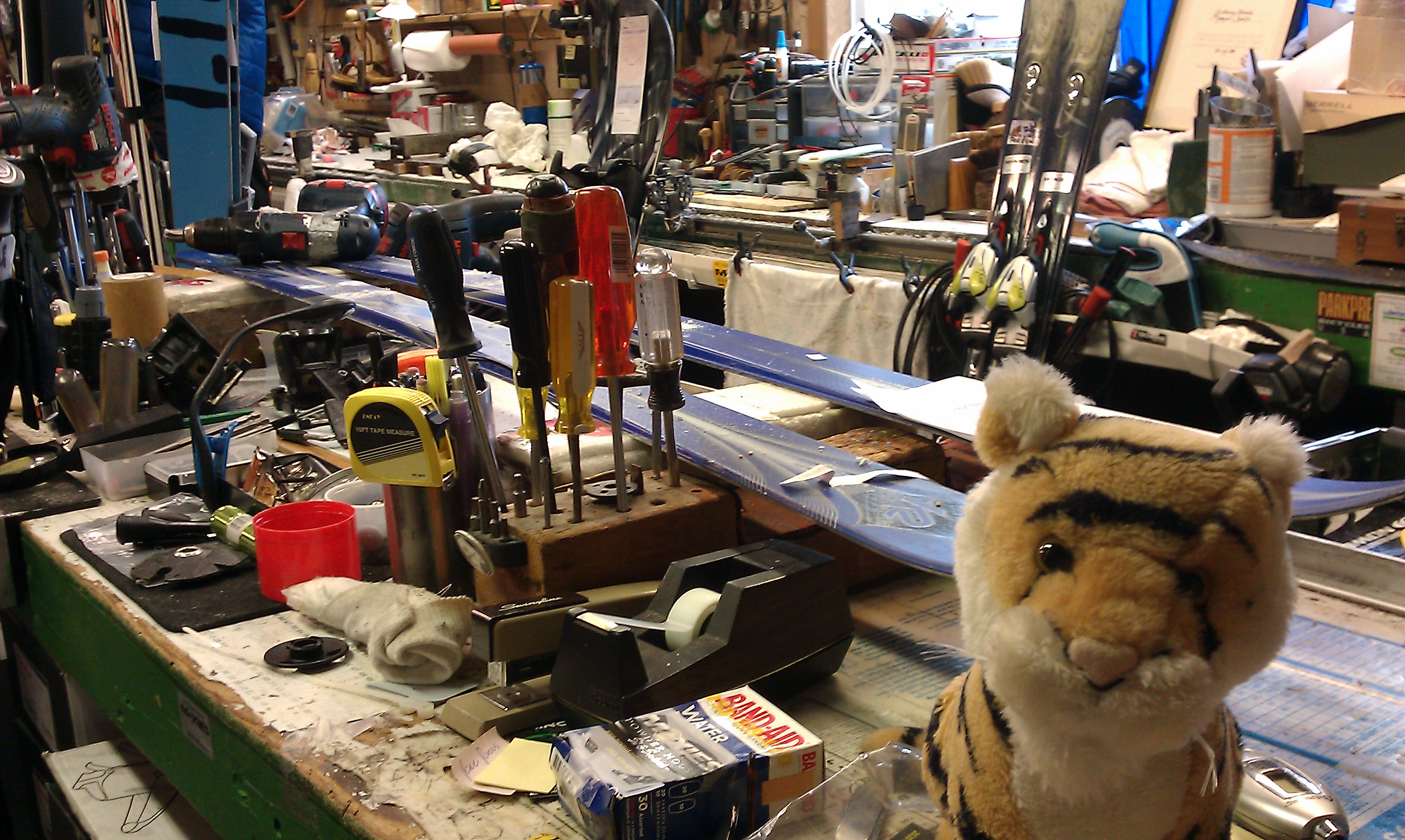 Here I am in Moxies workshop. He let me come downstairs and explore. I was very good and did not make a big mess while playing.