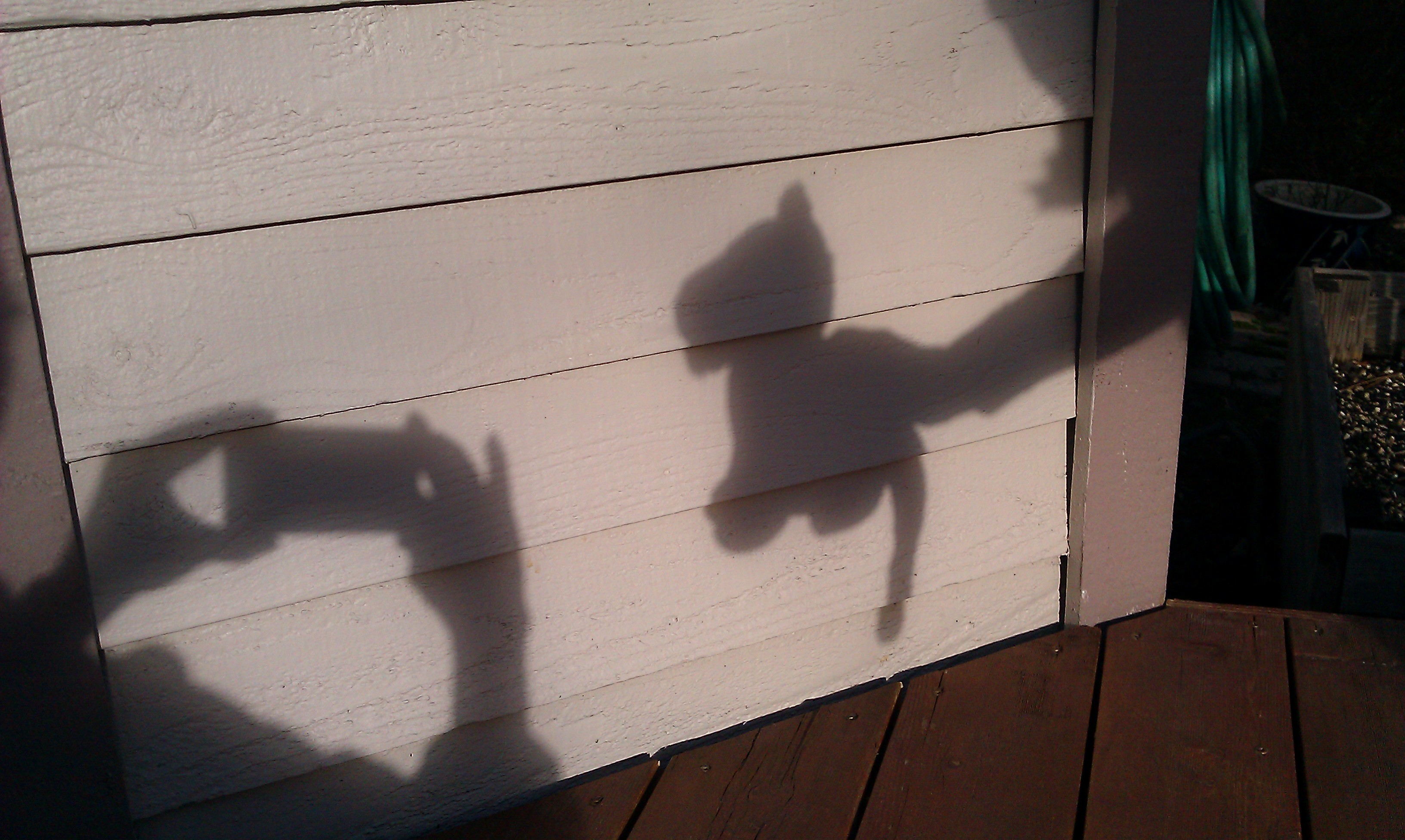 Aunt Darcy and Mom and I played shadow games against the side of the house. It was a super great day!