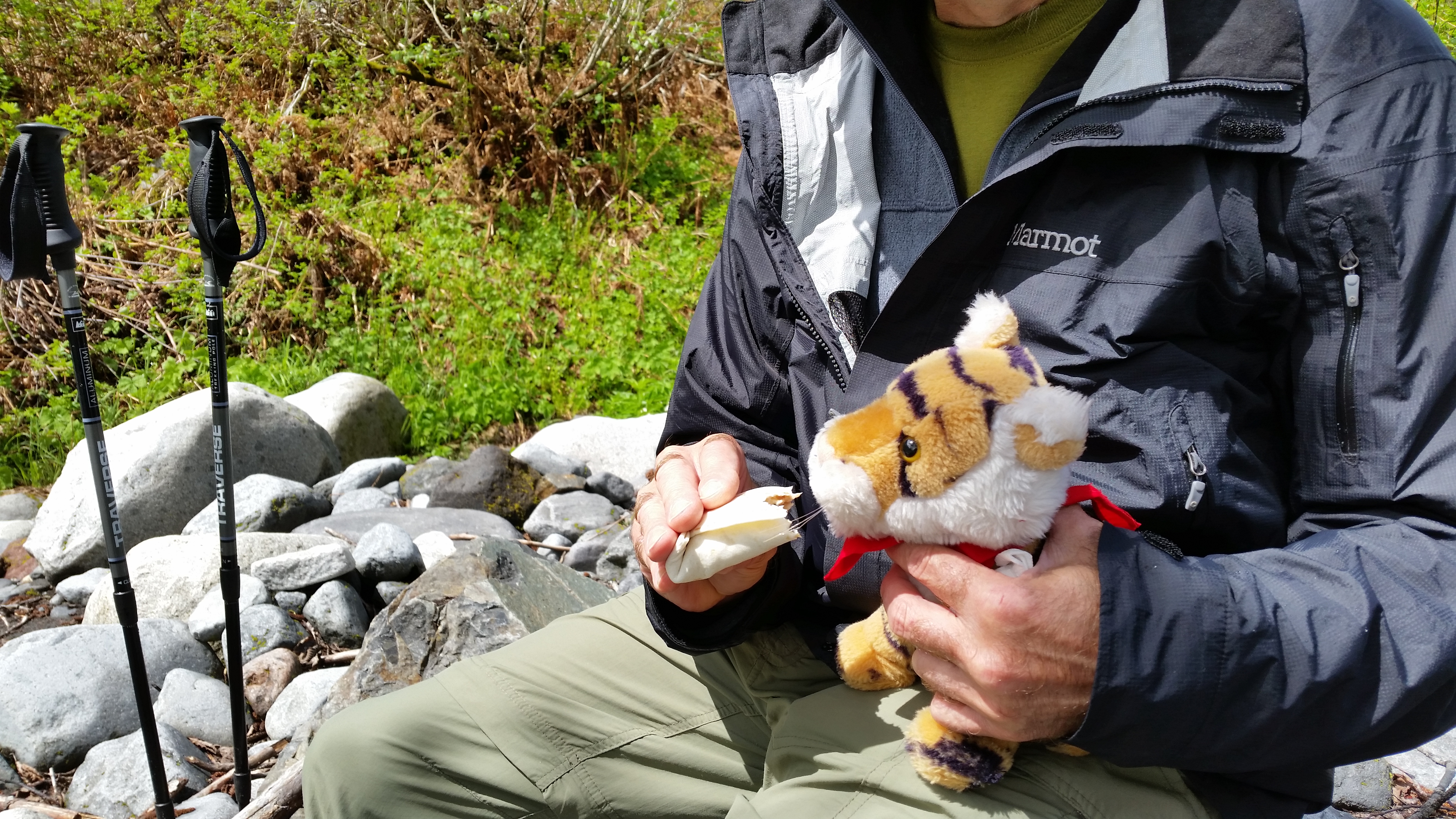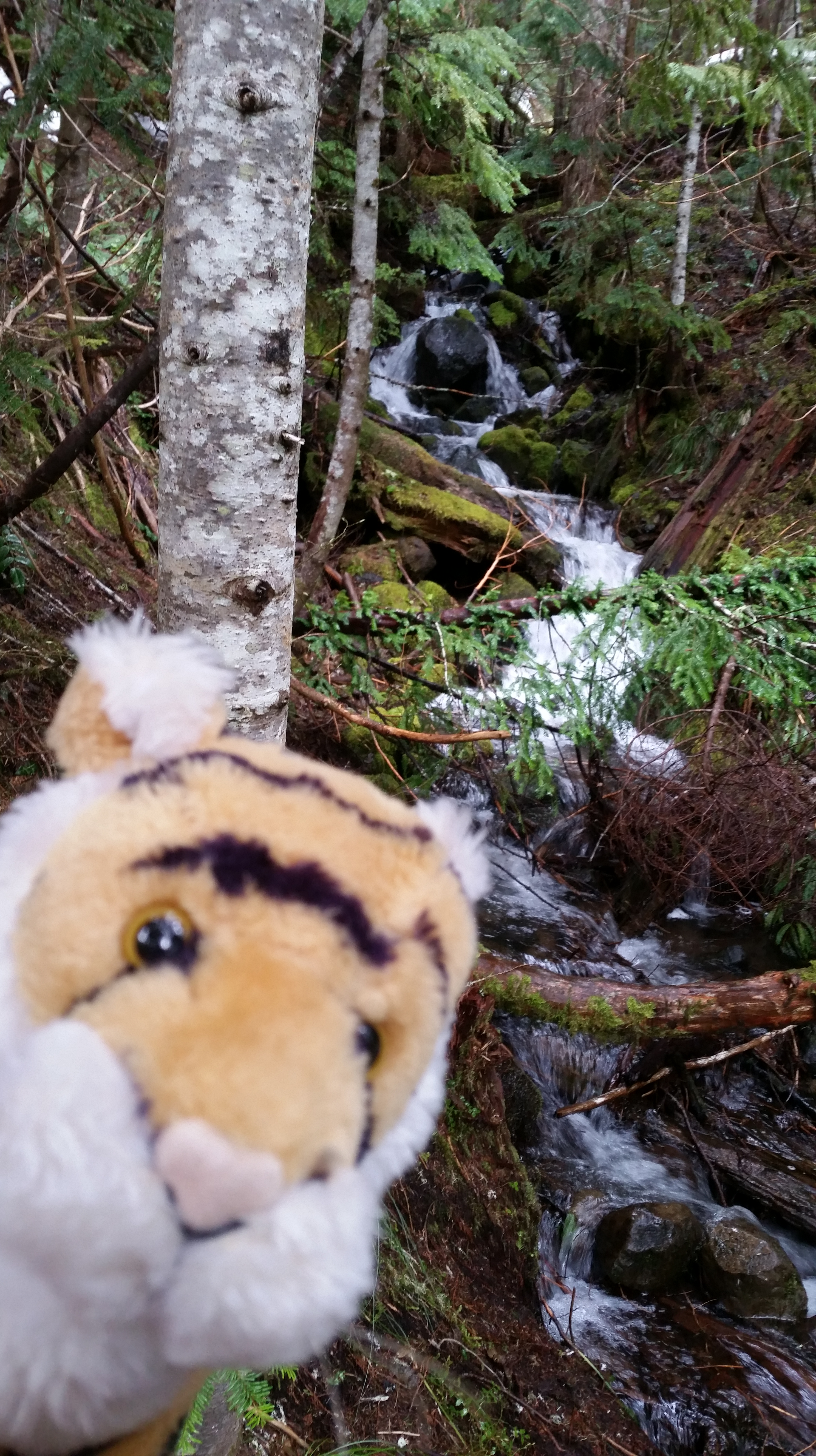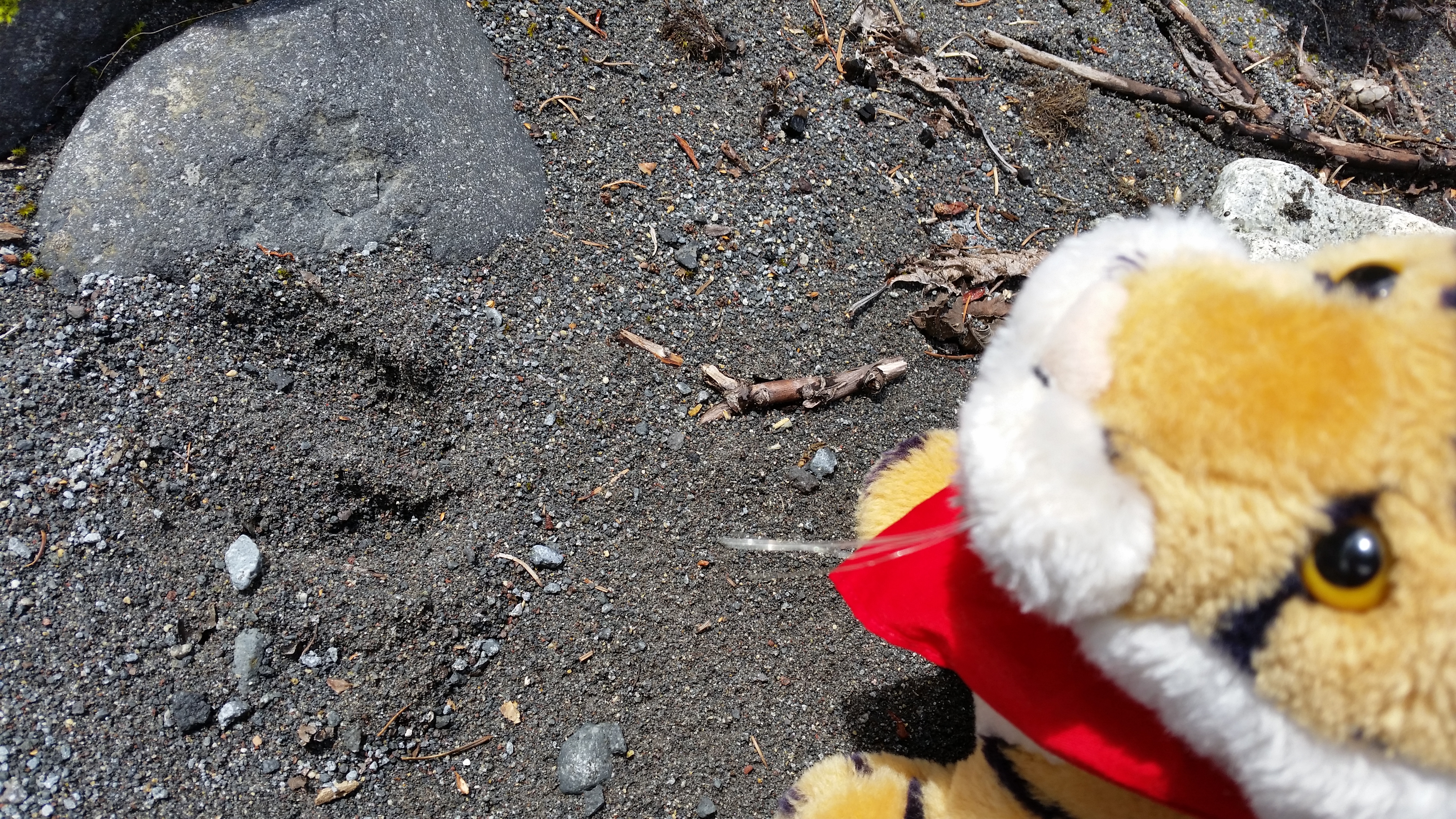 We saw lots and lots of scat (animal poop) and tracks. We saw bear poop! But no bears. They were probably scared of me. This picture is of a hoof print from an elk. Mom would not let me take a picture of the bear poop. It is ok for her to poke the poop with her hiking stick to see how fresh it is but it is not ok for me to take a picture of it.
