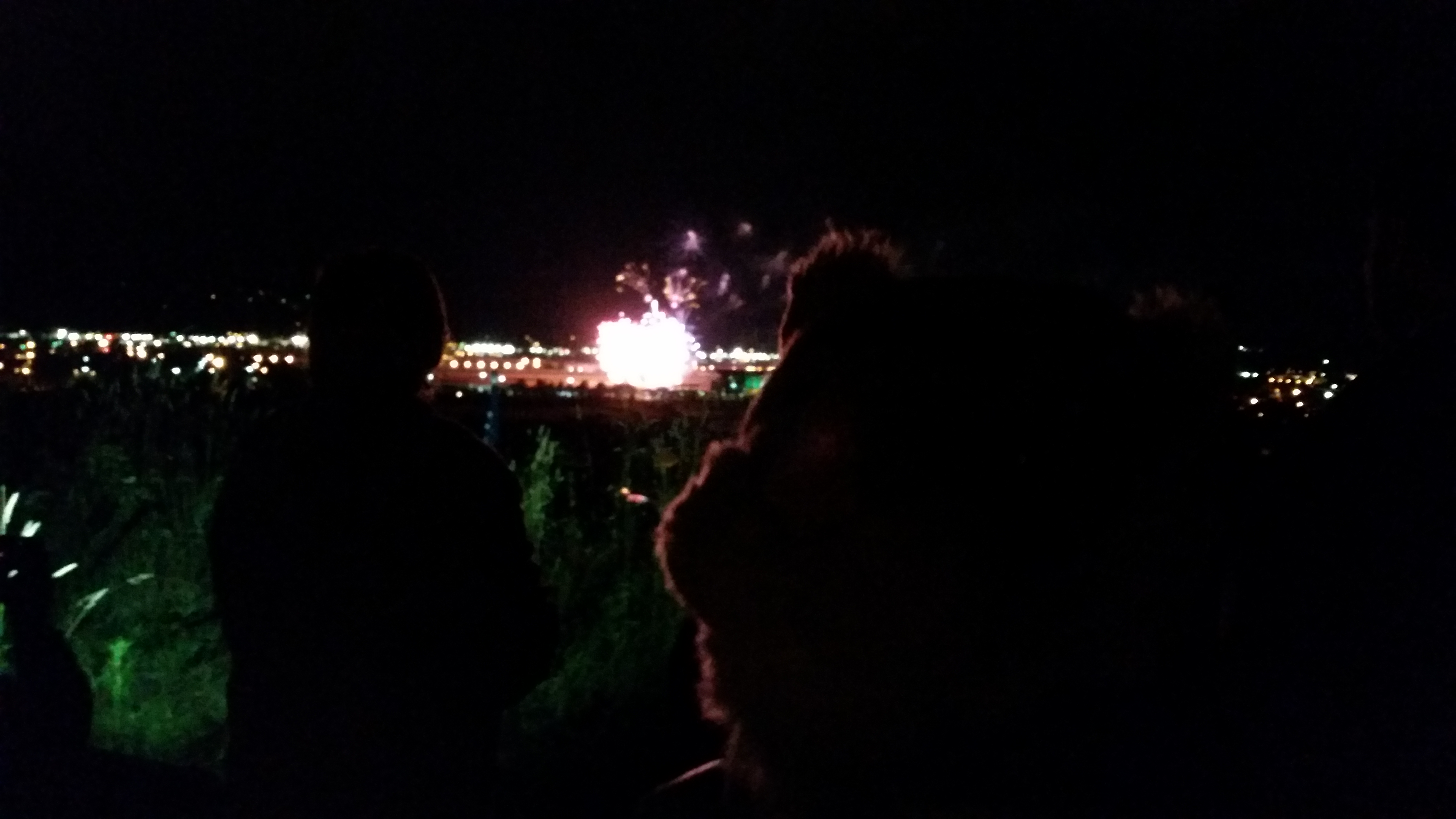 Also we went to see a big fireworks display; it was GREAT! We watched from a hill near where we live. You can hardly see me in the picture! Mom said it is hard to take pictures in the dark. I bet even Dixie could have taken better pictures than this.