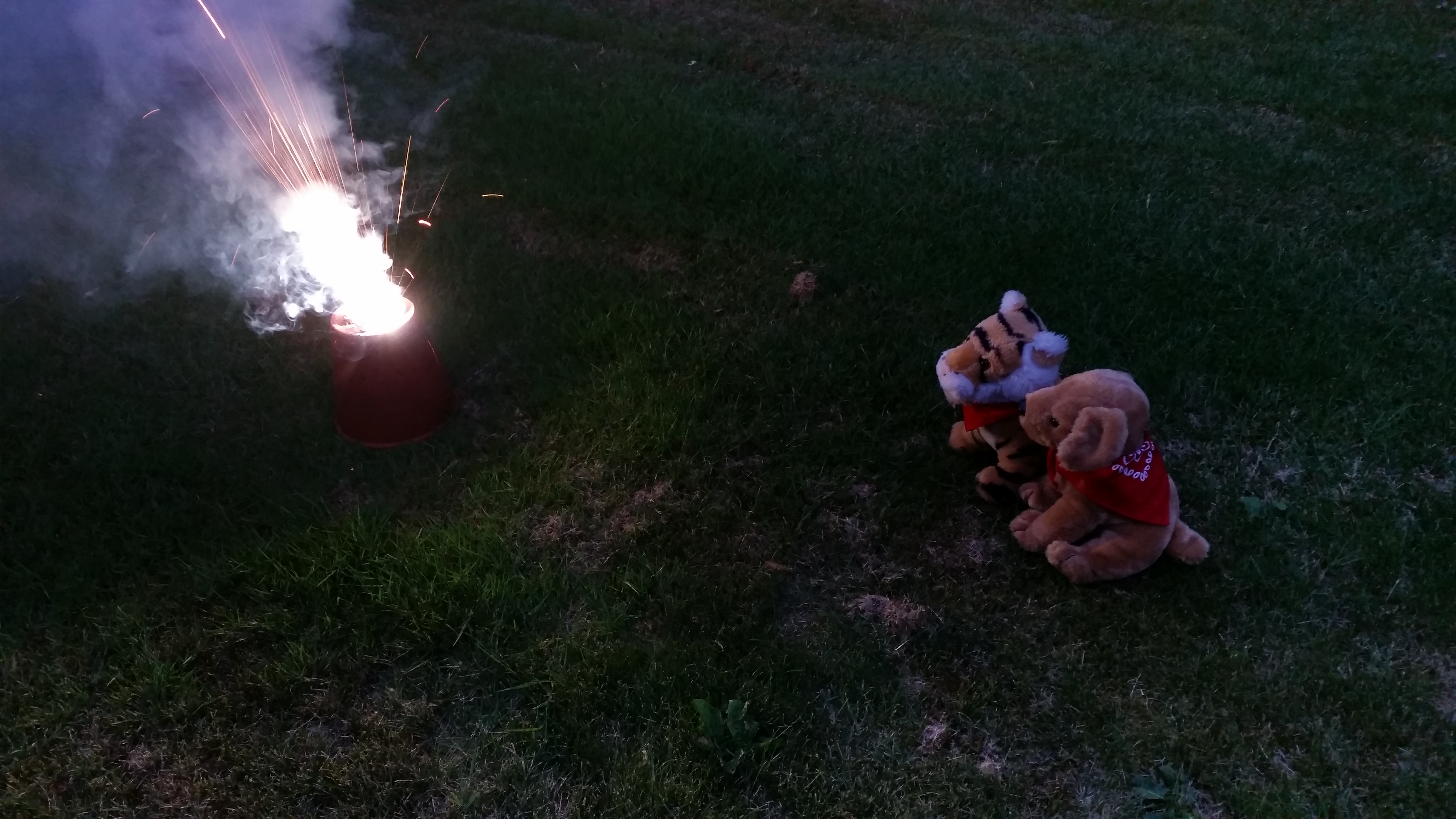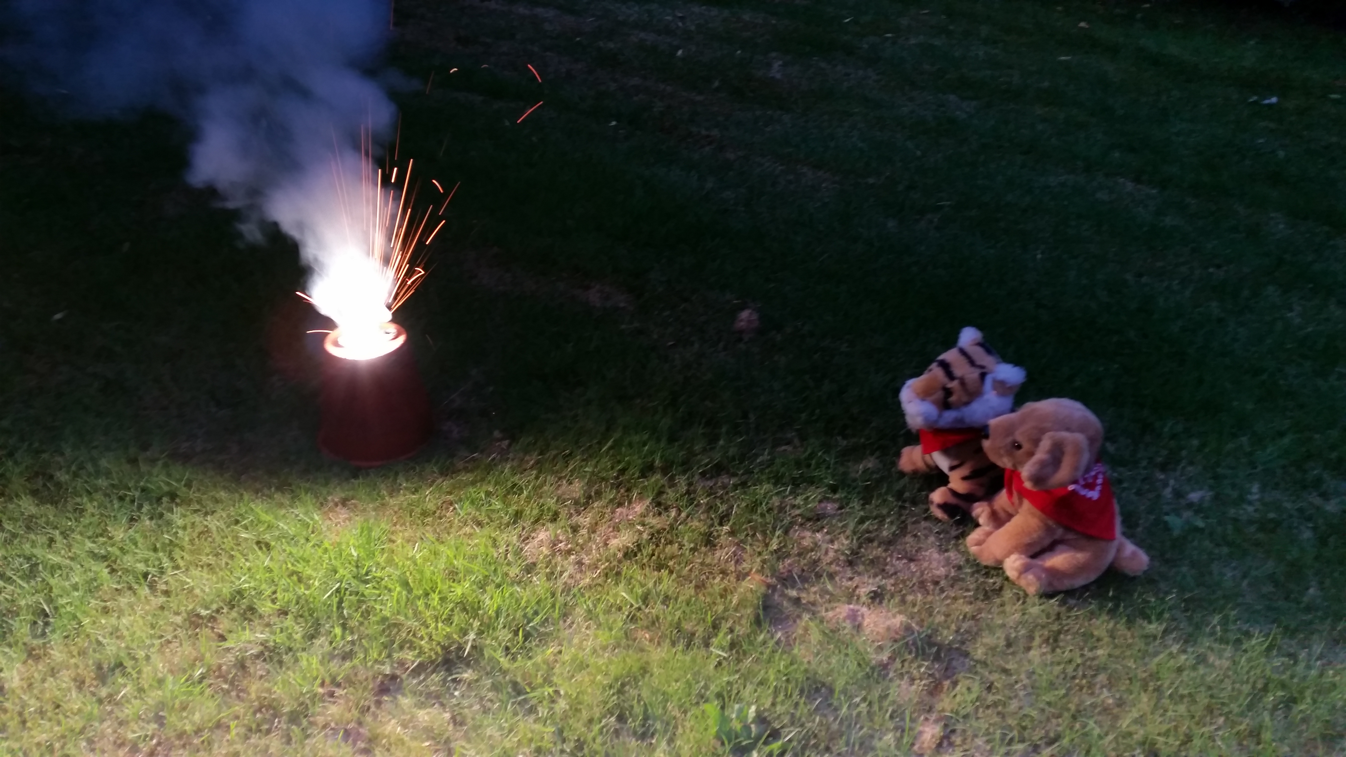 Yippee!!! Oh boy oh boy this is so great! It was not quite dark yet but me and Dixie wanted to try the fireworks. Also we wanted to make sure we were in the pictures. That is very important.