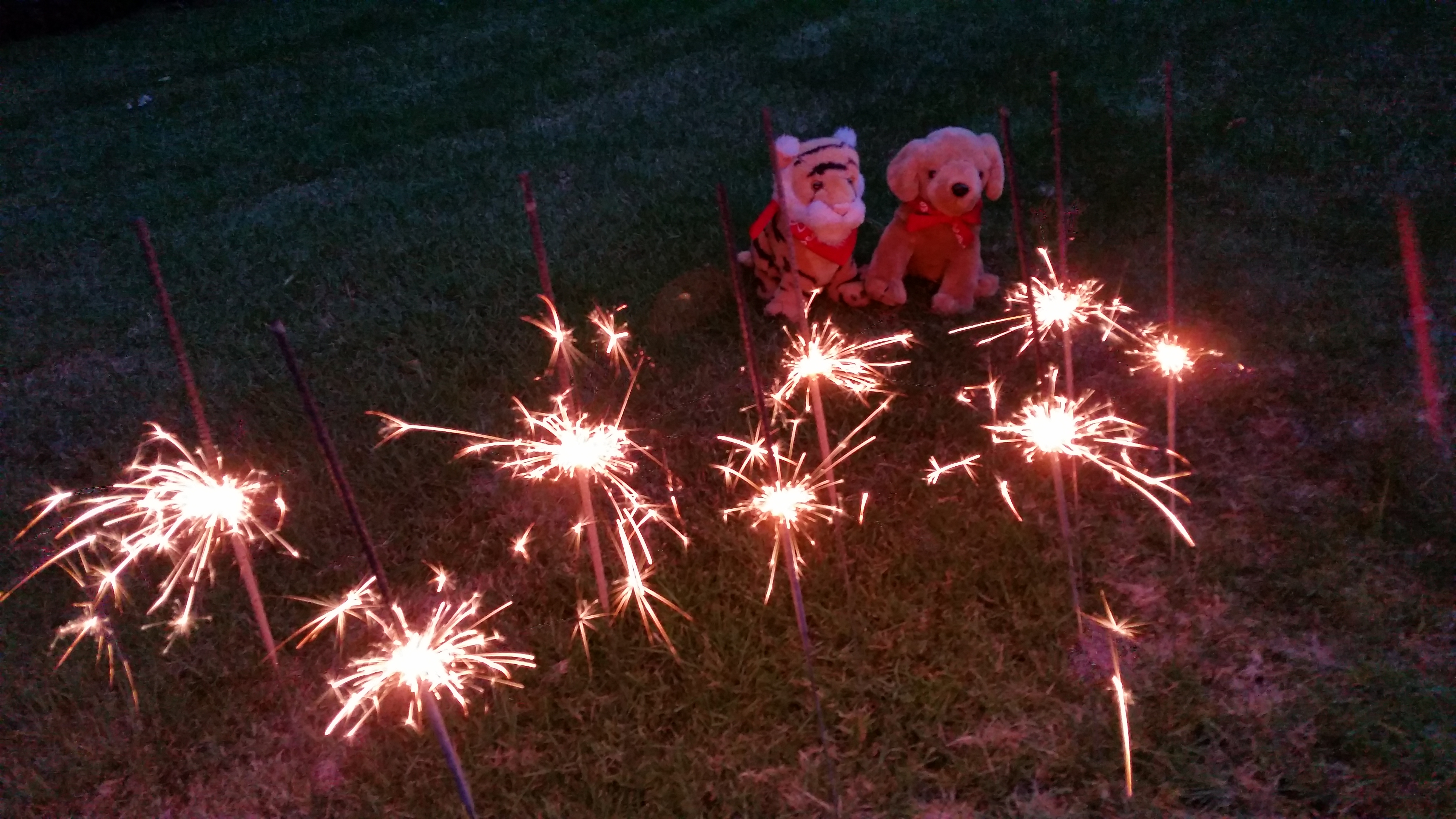 Mom is not crazy about fireworks. When she was a little kid she stepped barefoot on a hot sparkler and is apparently now scarred emotionally for life. But guess what she bought me? Sparklers! Ha ha! She says at least she knows how they work and they do not go BOOM! OMG I can hardly wait to light them! Mom says we have to wait until it is dark.