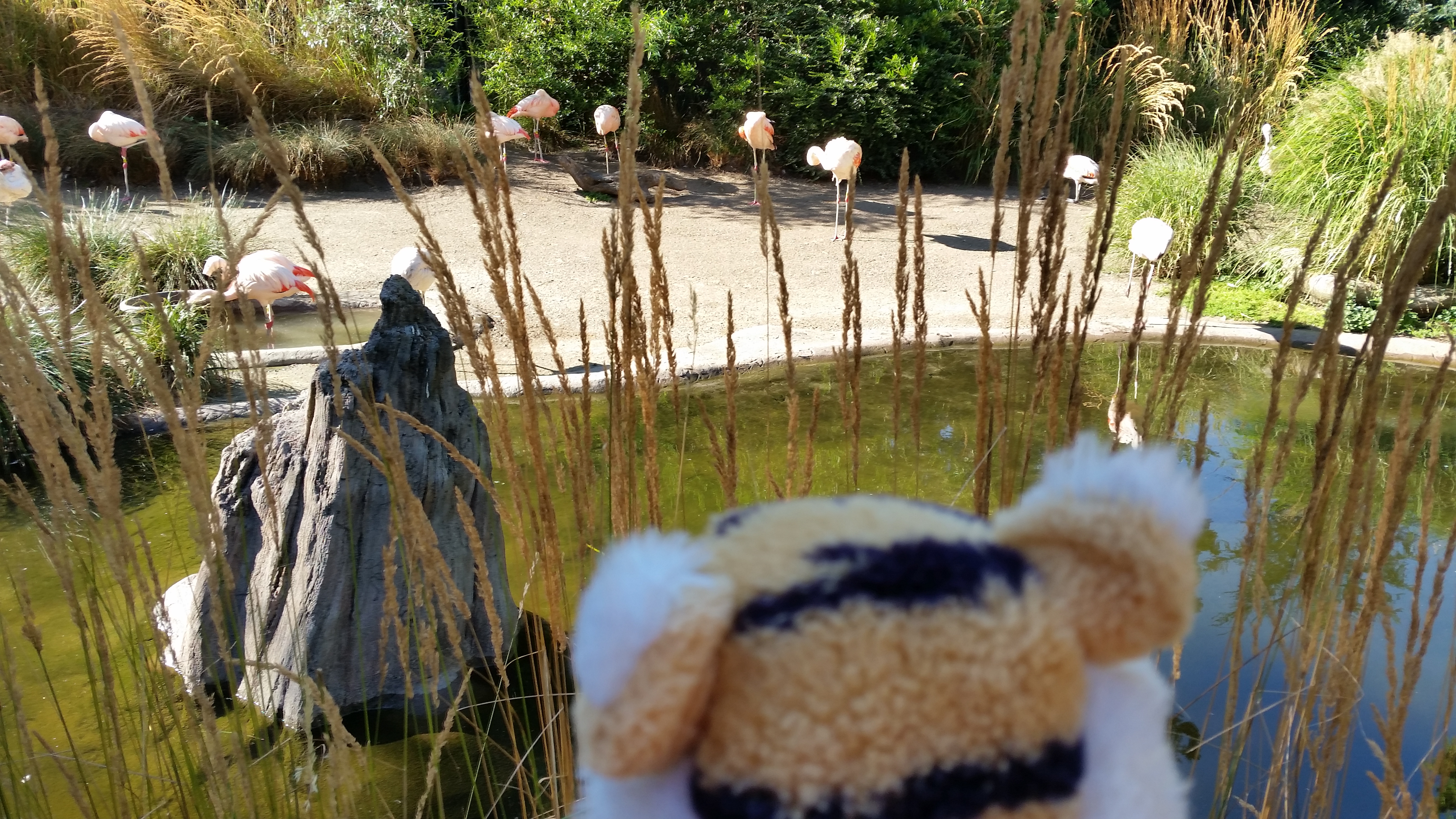 You can barely (ha ha get it?) see the bear in the back of the photo. He is the brown spot a little above and between my ears. This is such a great zoo they have big enclosures for the animals and lot of places for them to hide so it can be tricky to get a good photo with me in it.