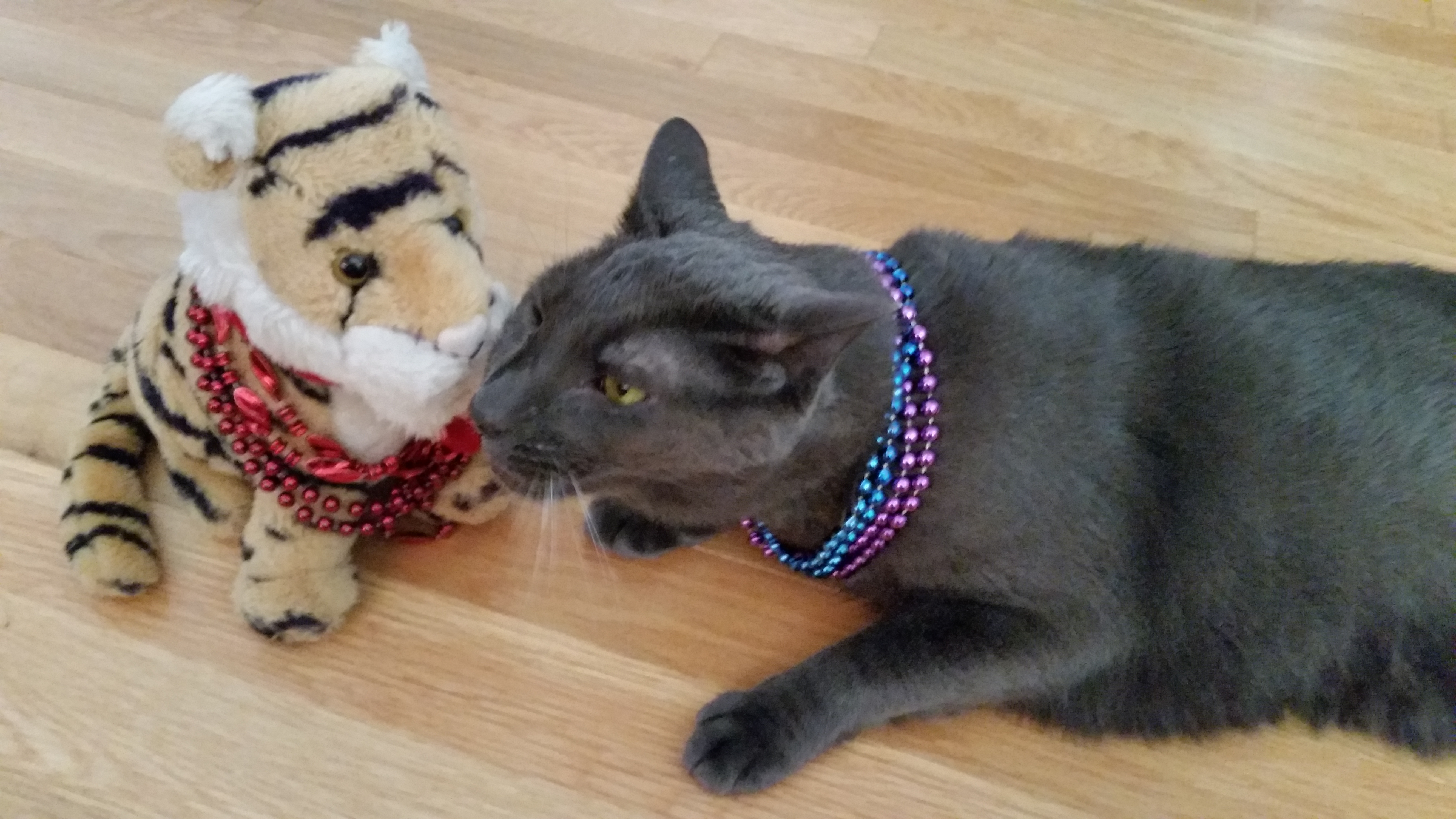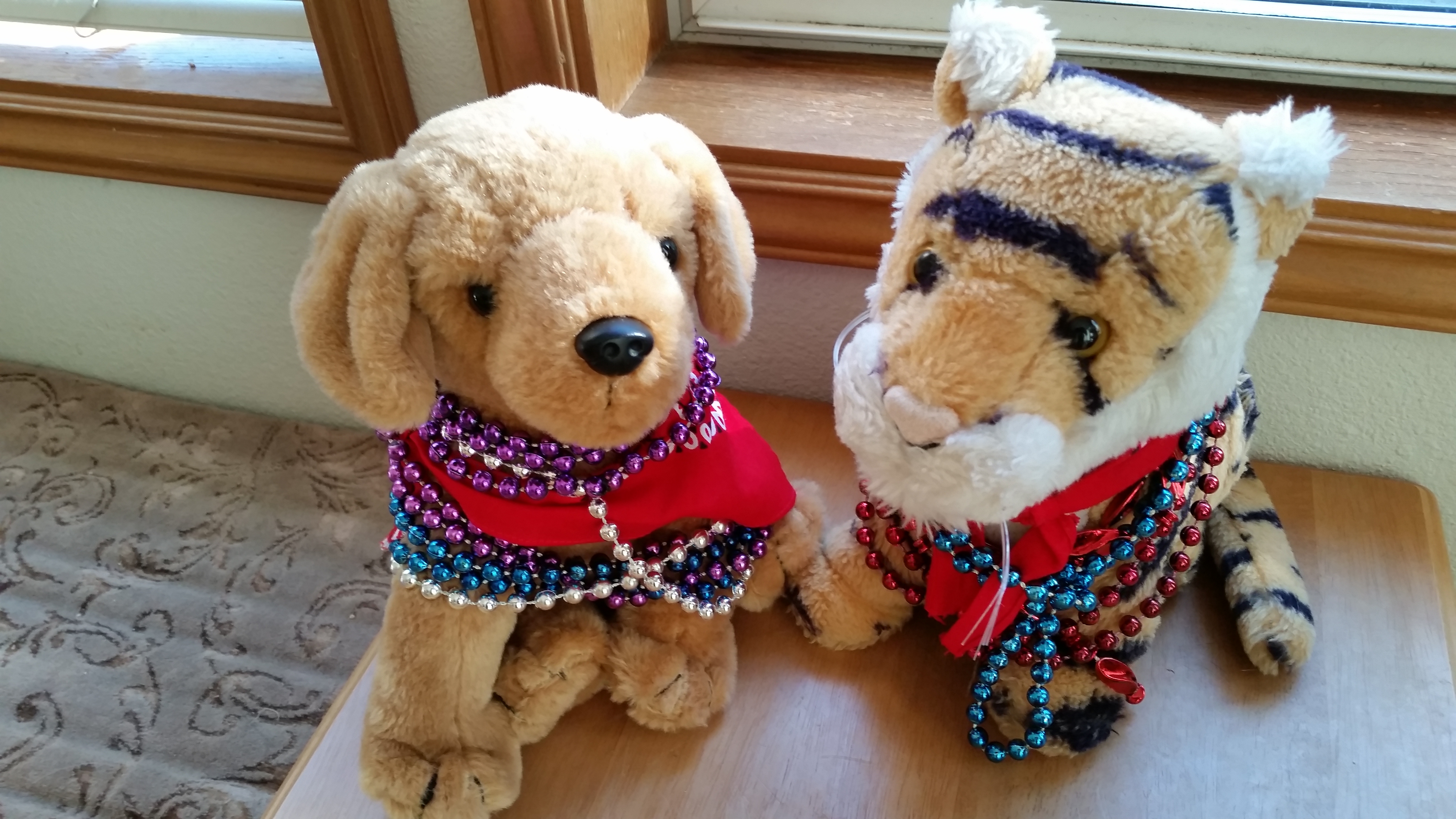 Travelling is fun but gosh it is good to be home! I shared my New Orleans Mardi Gras beads with Dixie and Jimi.