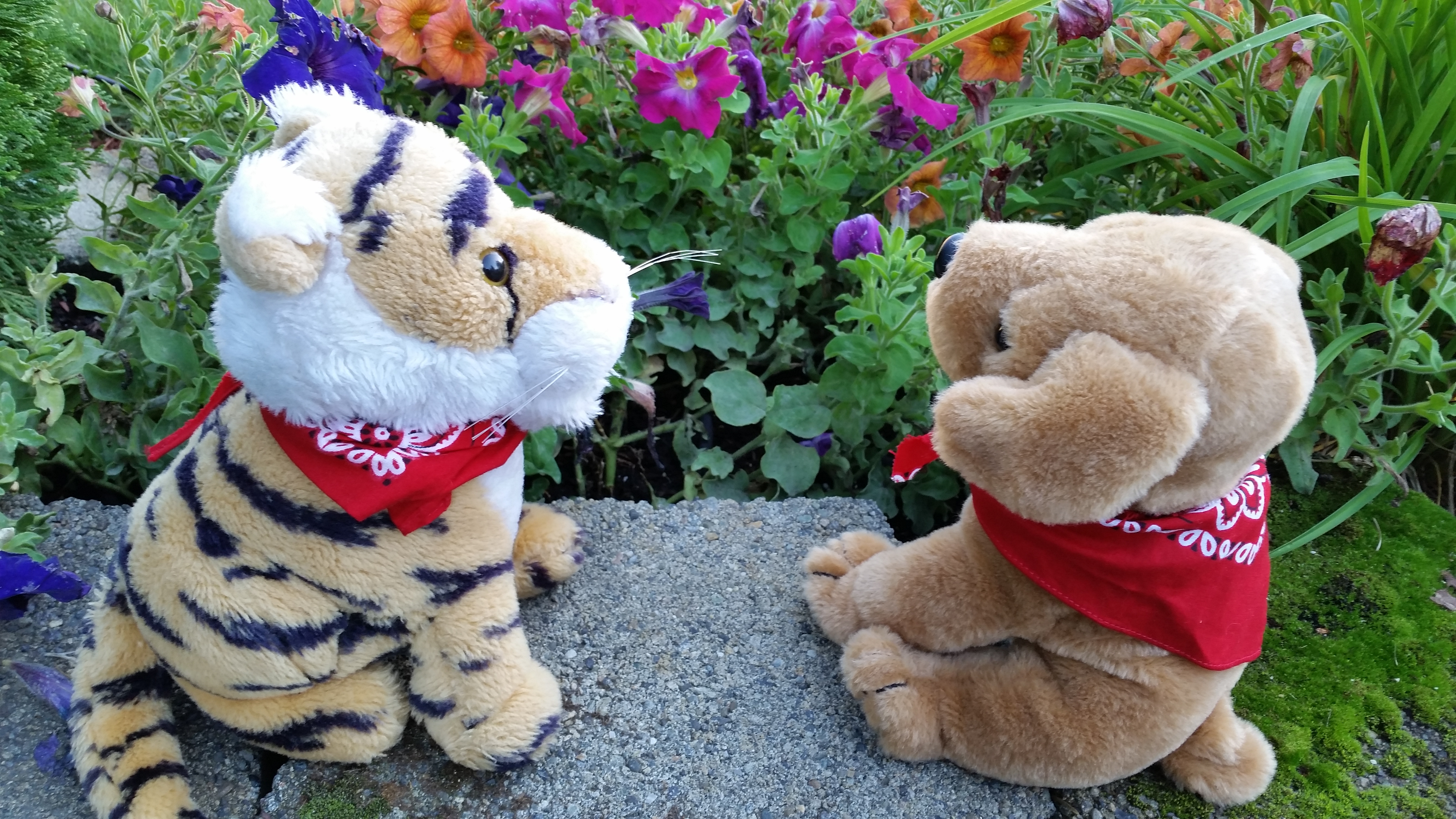 Dixie likes to look at the flowers.