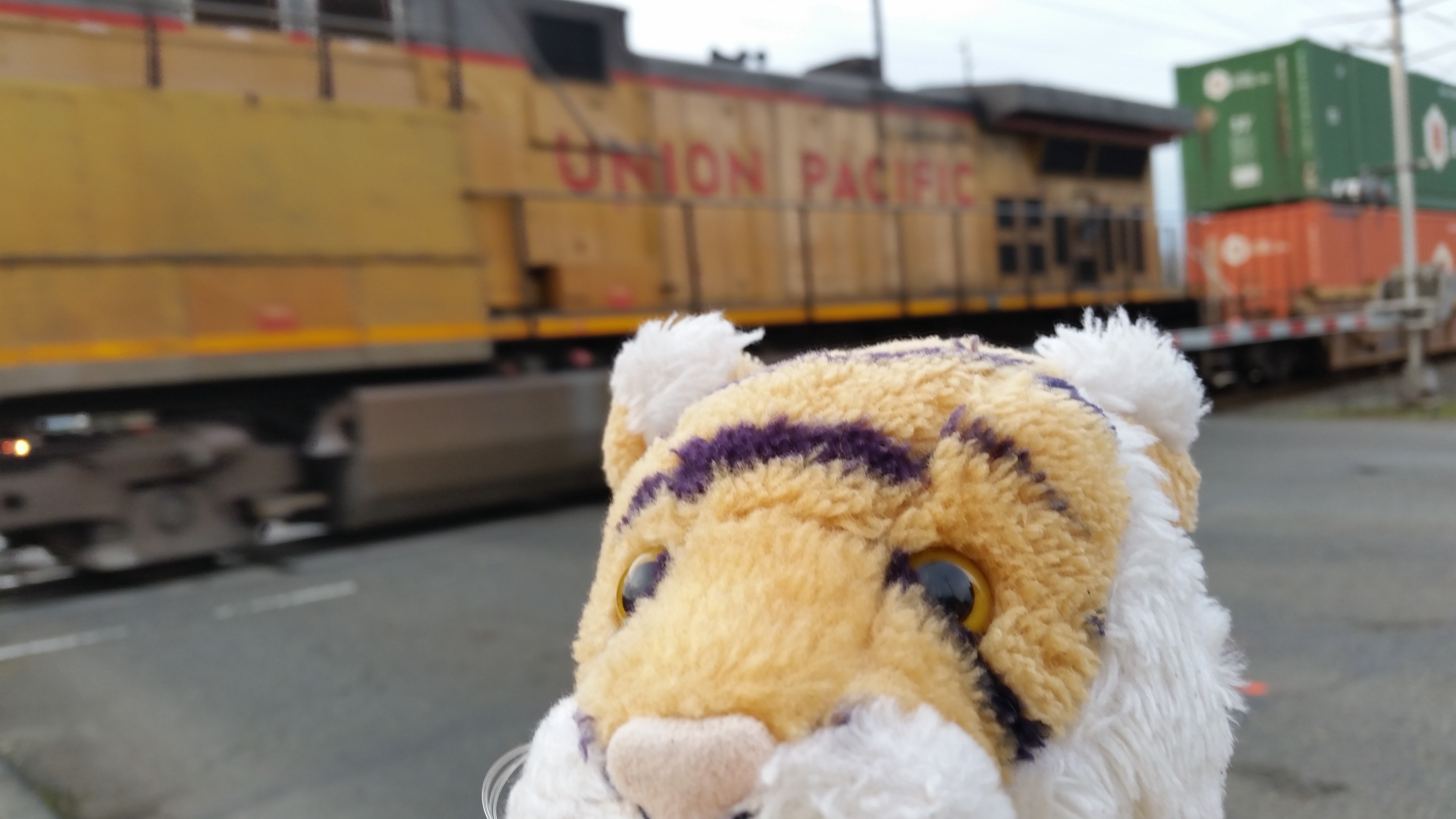 Then we got stopped at the next set of tracks by another train! It was so GREAT!!!!
