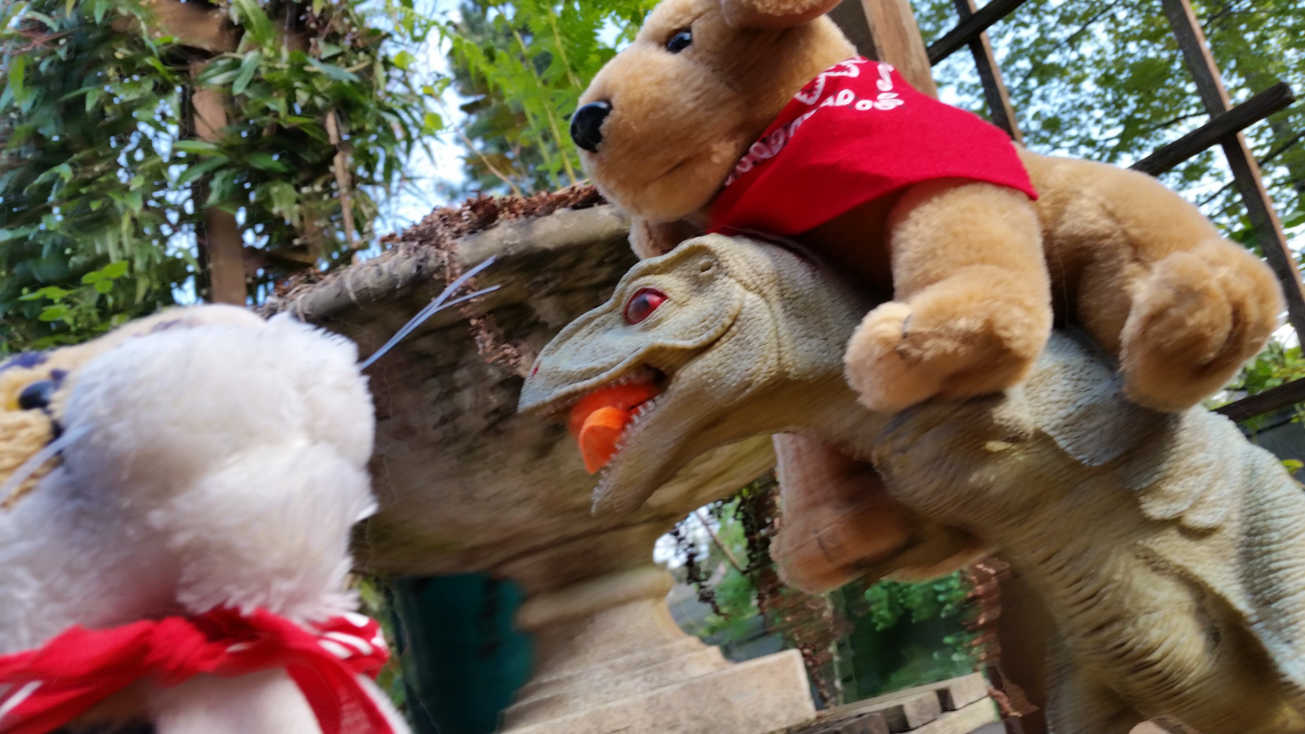 Here we are playing with Dino. I had to take a lot of pictures to get myself looking so good in the picture while taking it. Mom said we should only post the best ones.