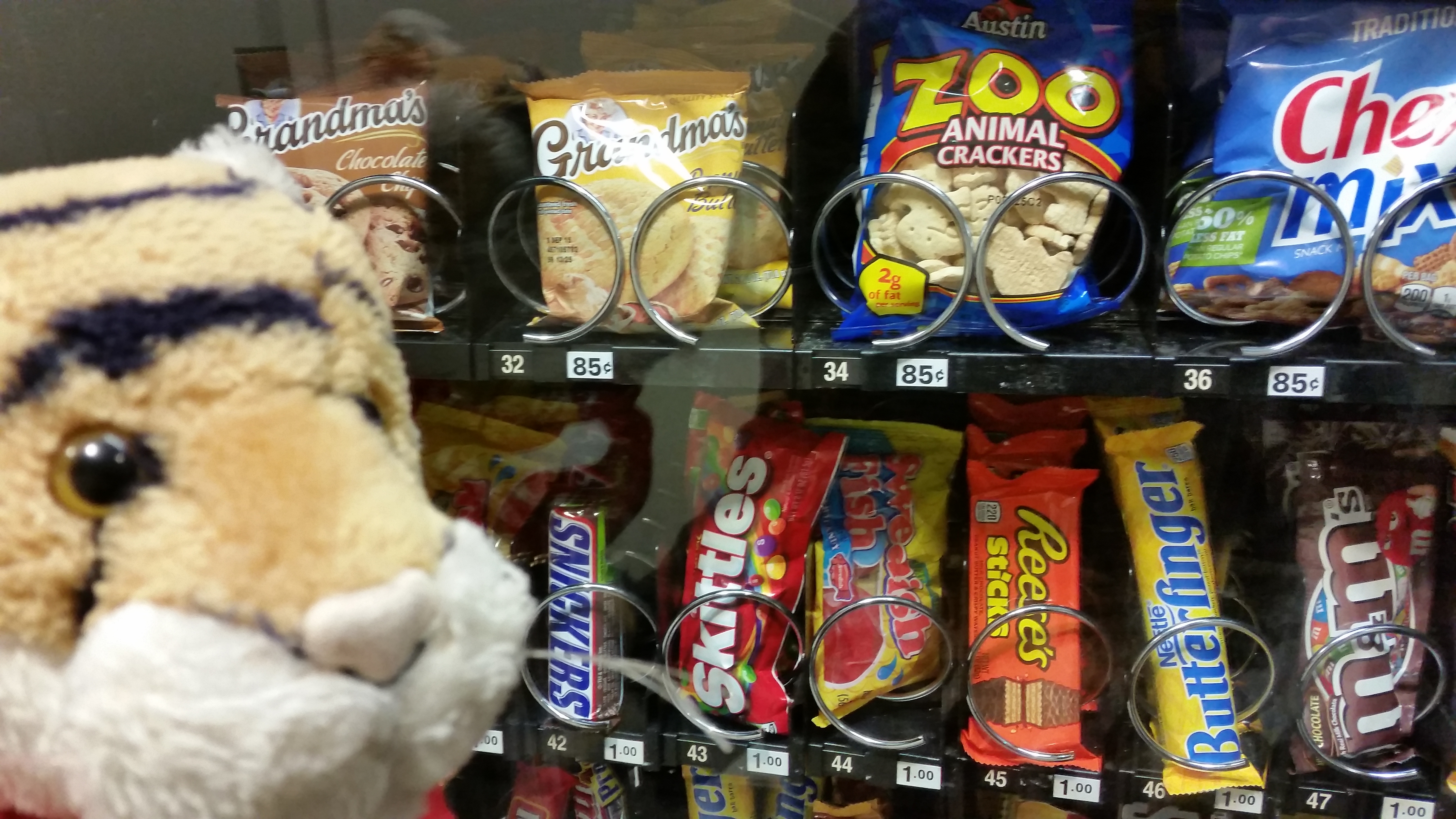 Today there was something wrong with the car. We had to go to the place where they do car repairs. It was GREAT! They had a super fantastic snack machine there! Look there are ANIMAL CRACKERS!!!!!