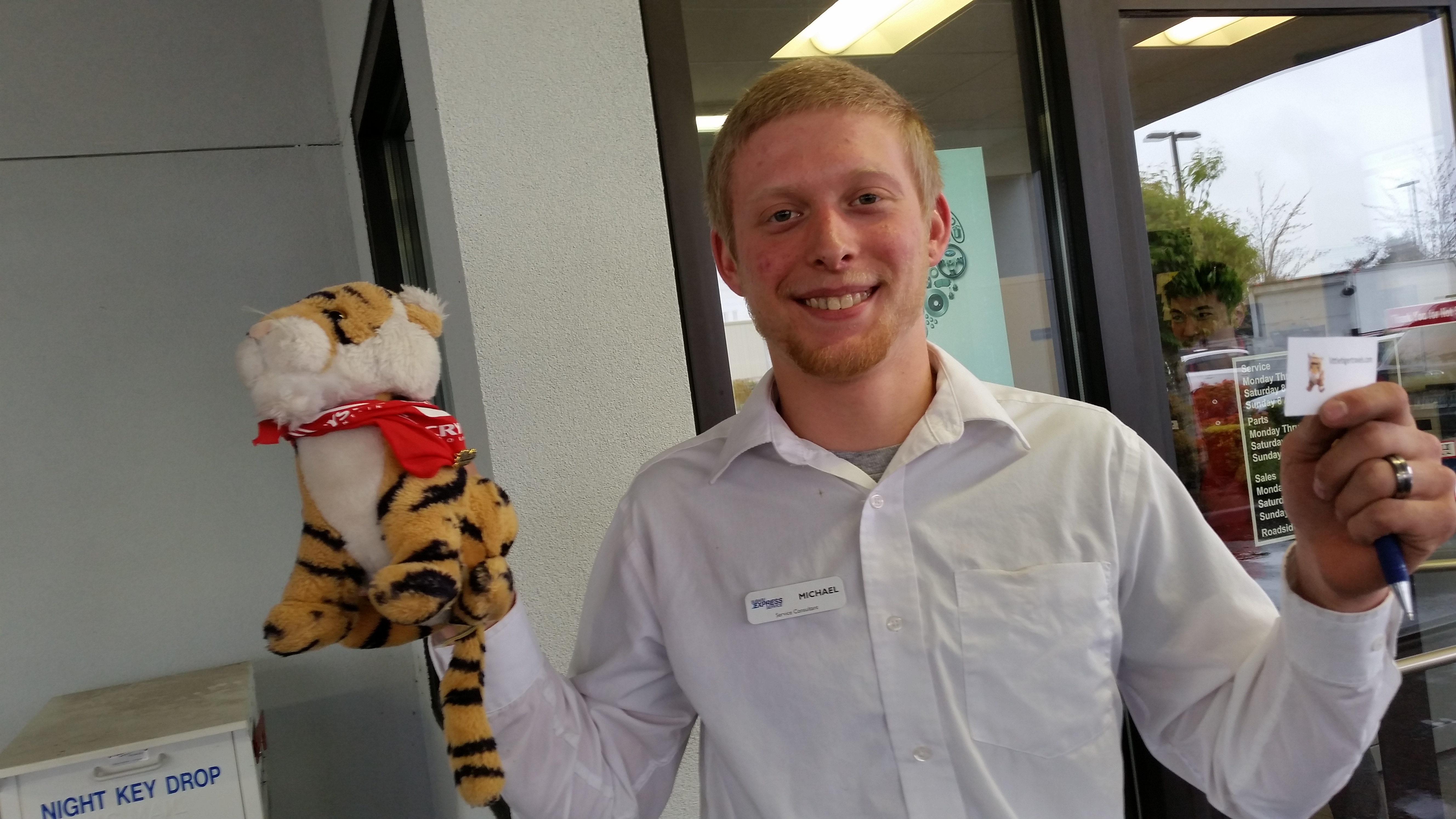 This is Michael he helped get the car fixed. He was so handsome and did not even charge mom any money for fixing the car. They must make all their money selling animal crackers.