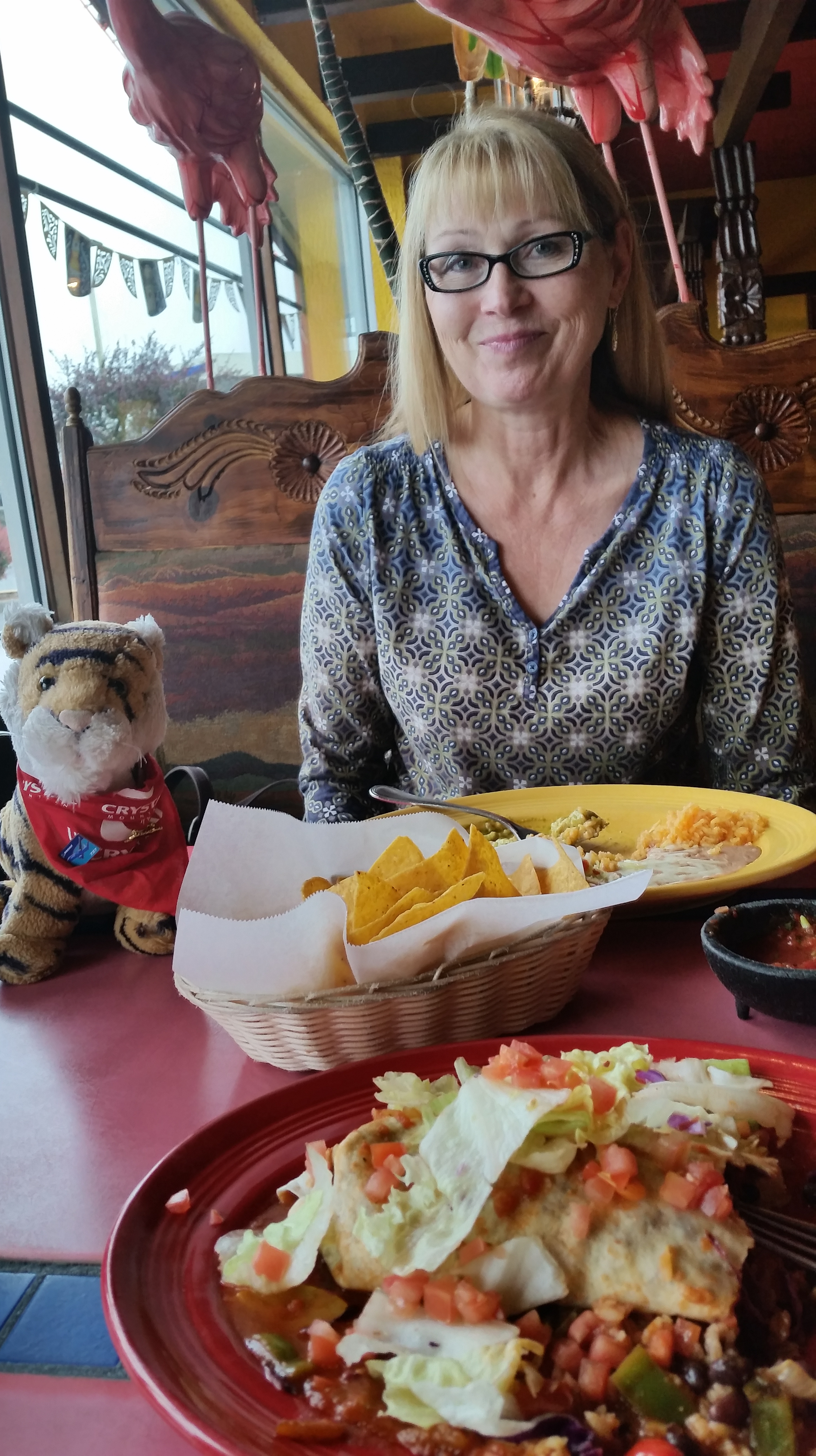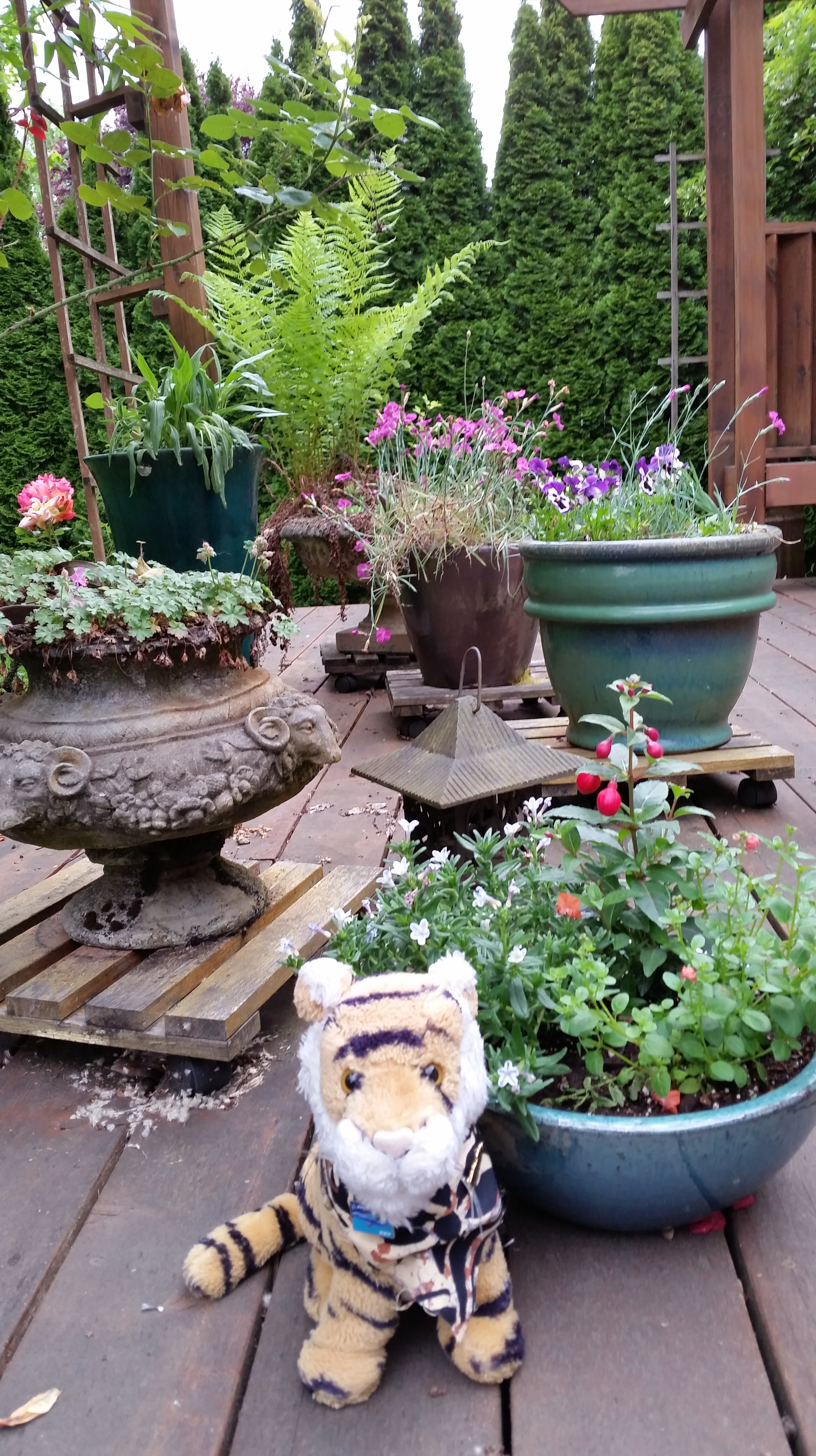 When we got home we took a picture of this beautiful pot of flowers that Cheryl gave us. Last week she gave it to us. It is the one that I am standing right in front of. Cheryl is a good friend we wanted her to see how good the plants look on our deck.