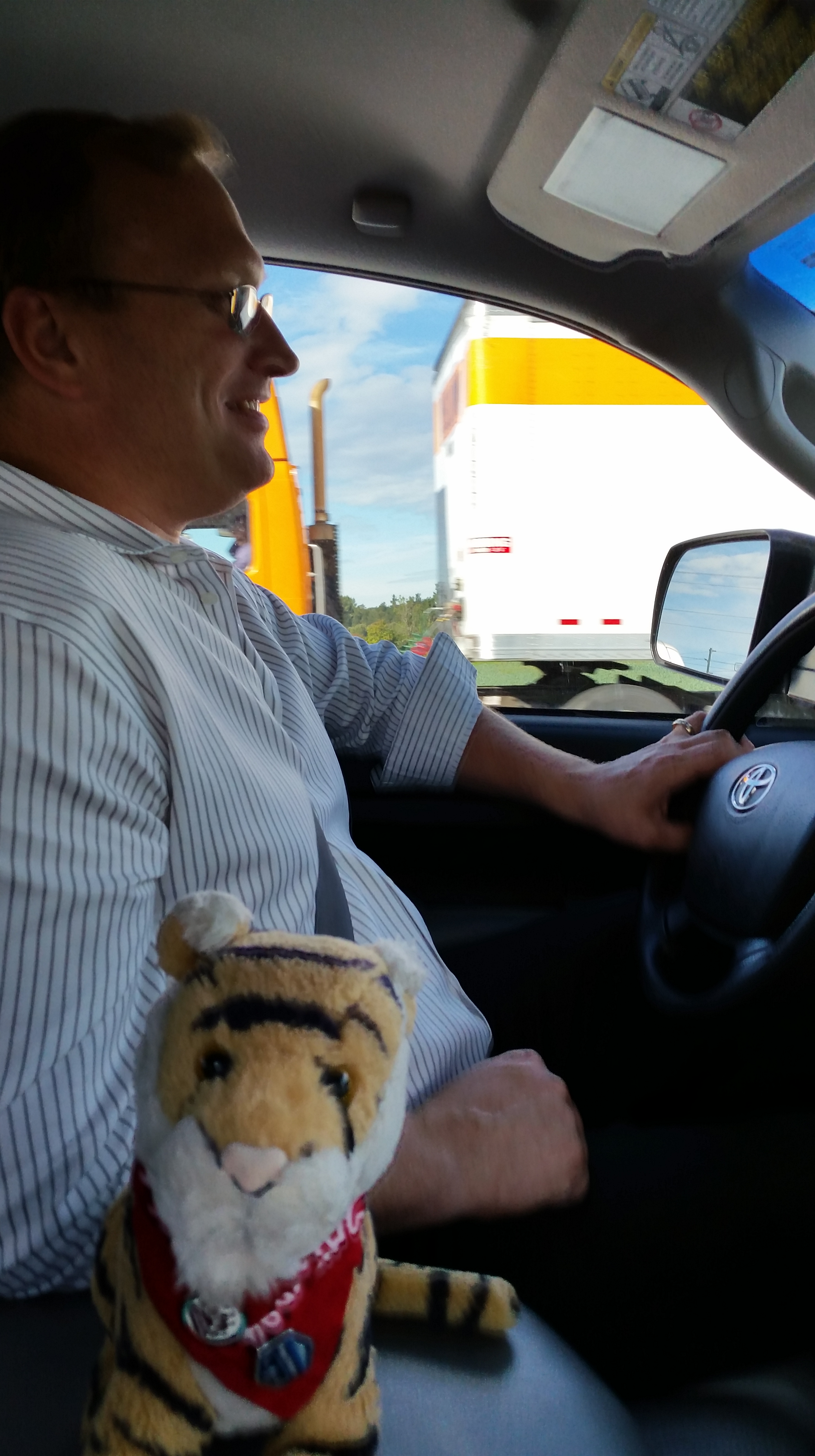 Here is Bill driving he is very smart and handsome but not quite as handsome as me.