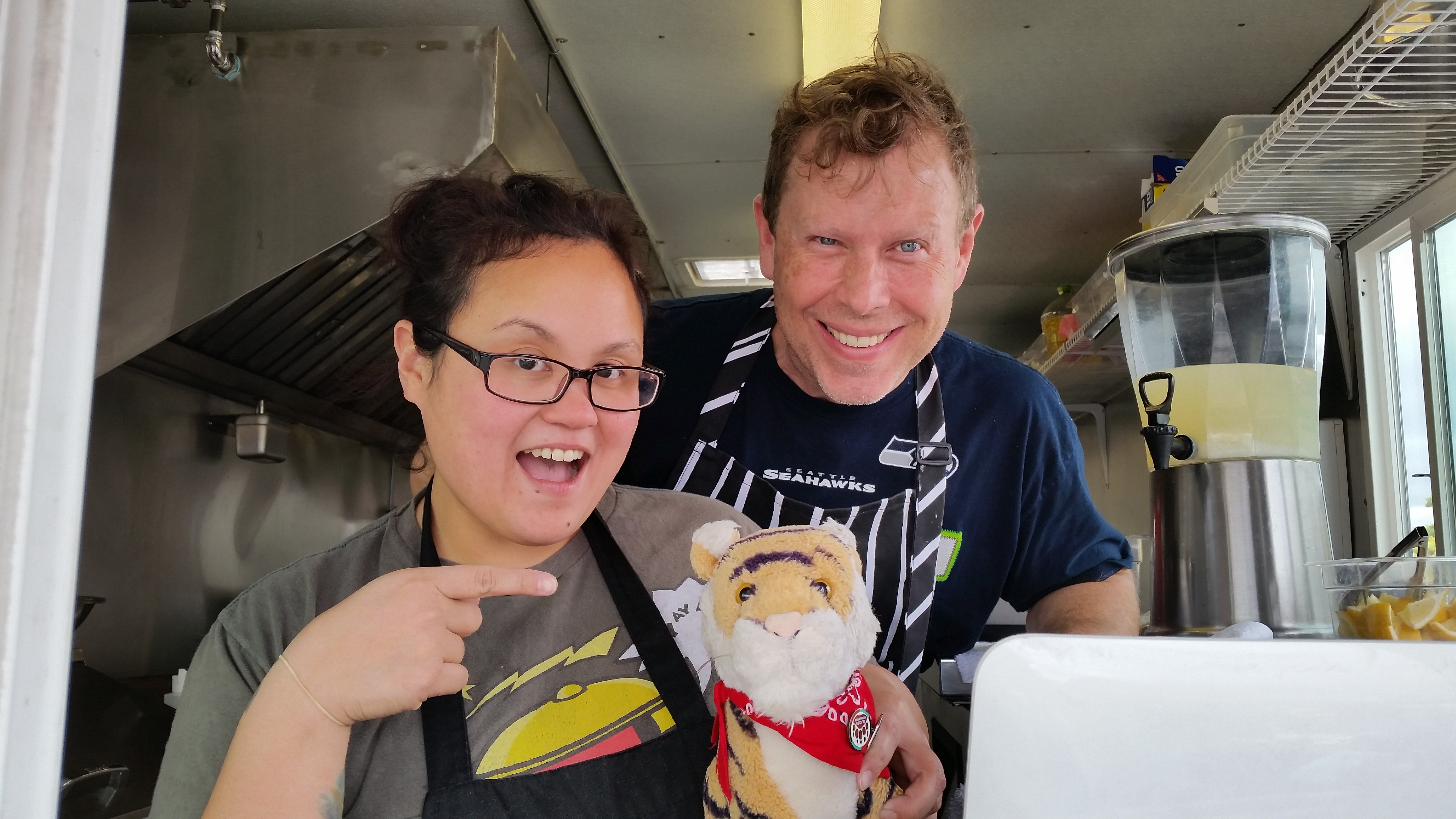 Mom bought fish tacos from this food truck! Tigers LOVE fish tacos! Cameo and Trent made our lunch and OMG they were the best fish tacos EVER! The fish had some Cajun spice and there was some fruit salsa that balanced perfectly. Cameo is so beautiful and Trent is very handsome but not quite as handsome as me.