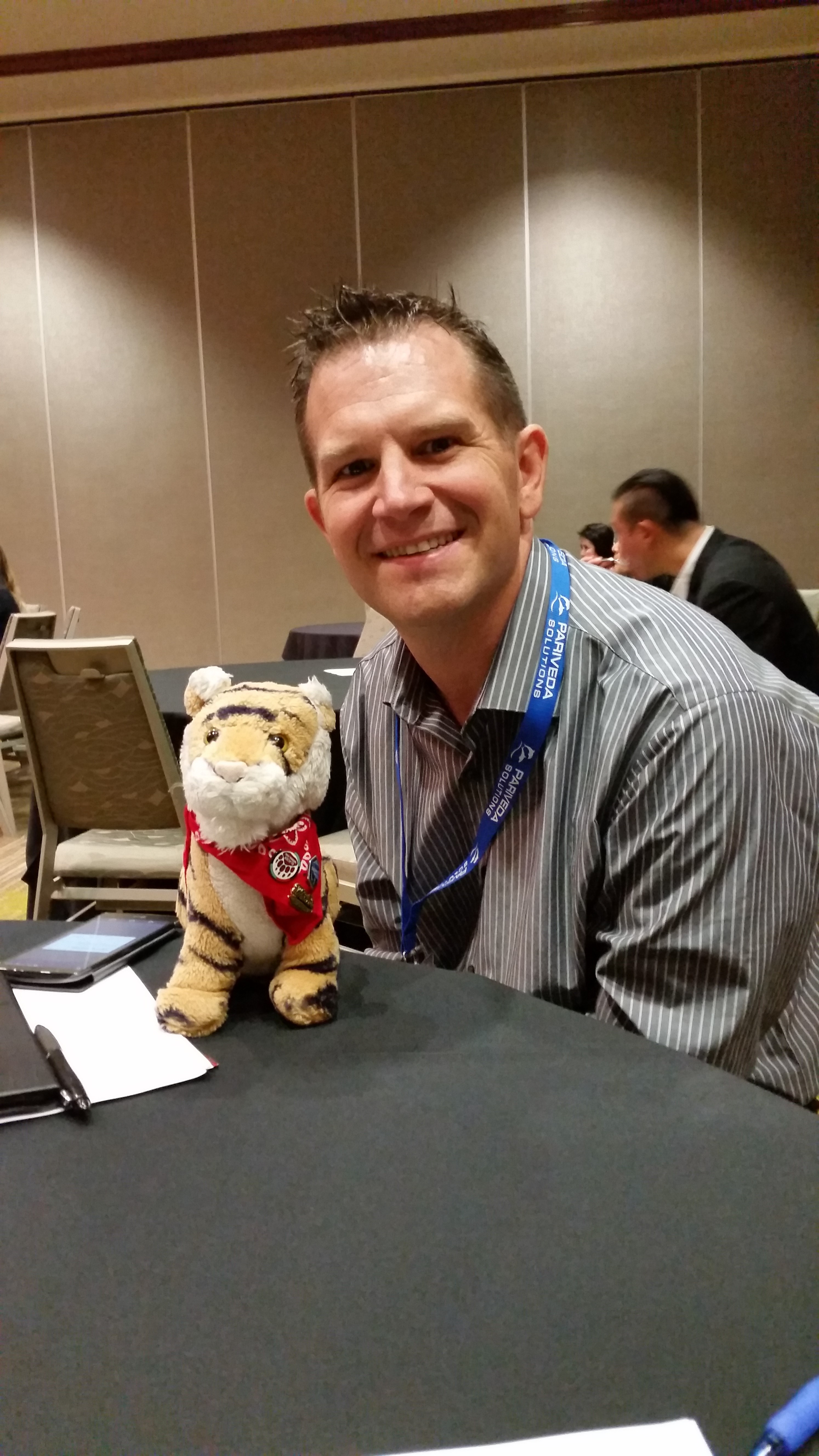 Here is something totally funny that happened! This is me with Jeff who is our next-door neighbor! I am not making it up he lives right next door to us and he works for Dell and he was at the conference but we did not know he would be there! Jeff is a really good neighbor and is really nice and very handsome but not quite as handsome as me.