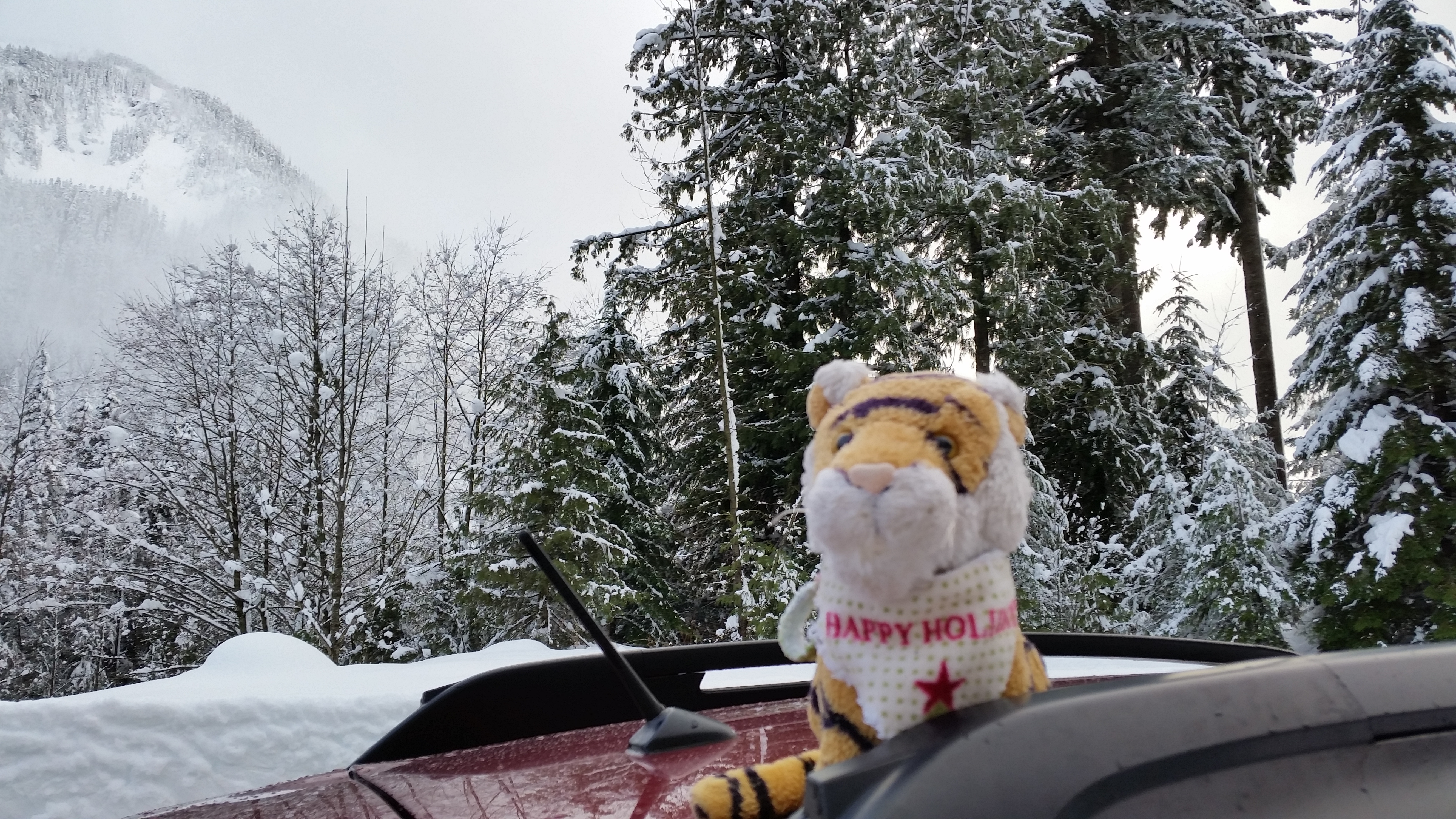 Then today we went snowboarding again!!!! So much for the clean car. Here it is totally covered in snow, it was snowing a lot at Snoqualmie!