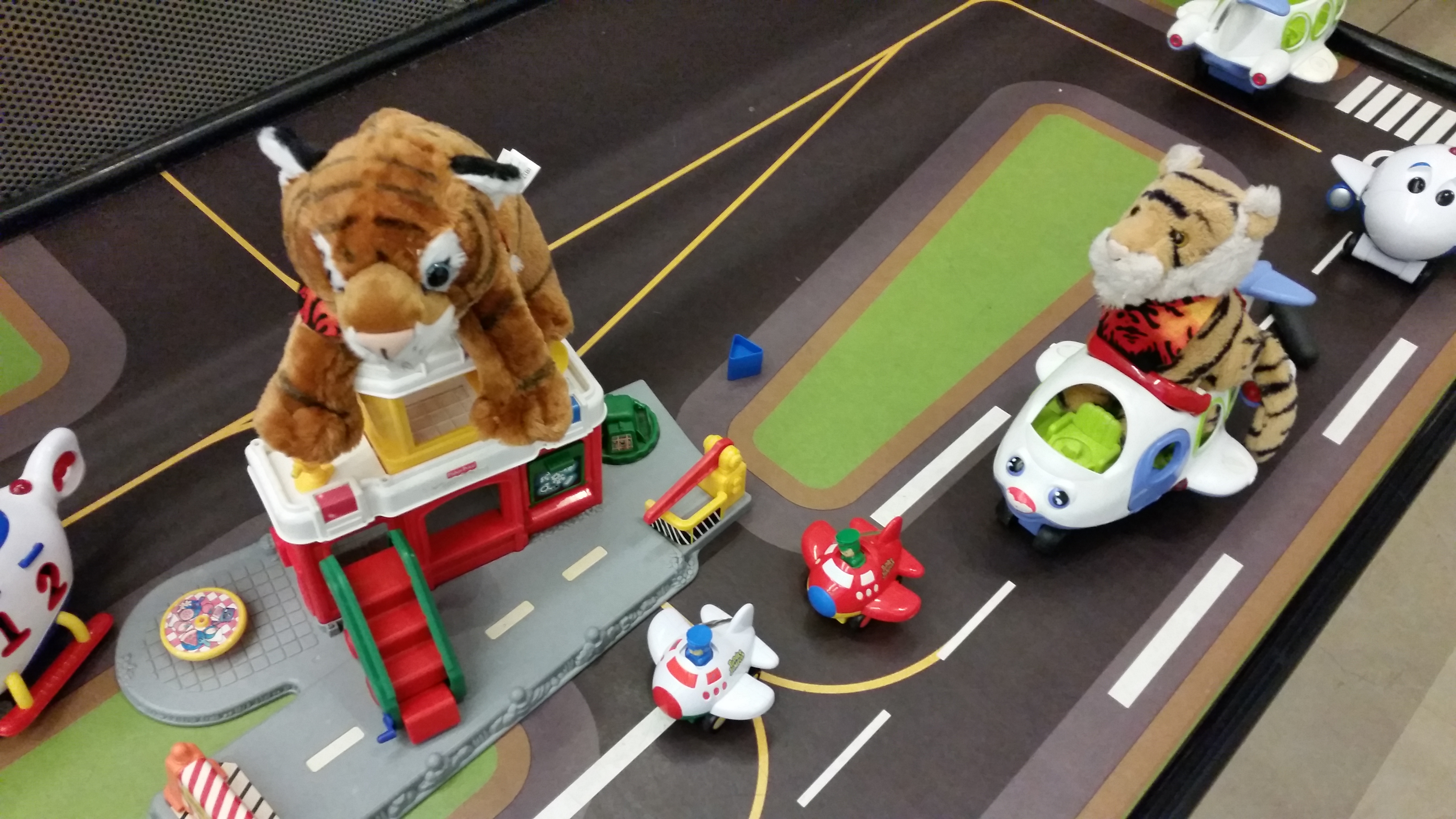 Here we are playing airplane. I was the pilot and Taj was in charge of the control tower!