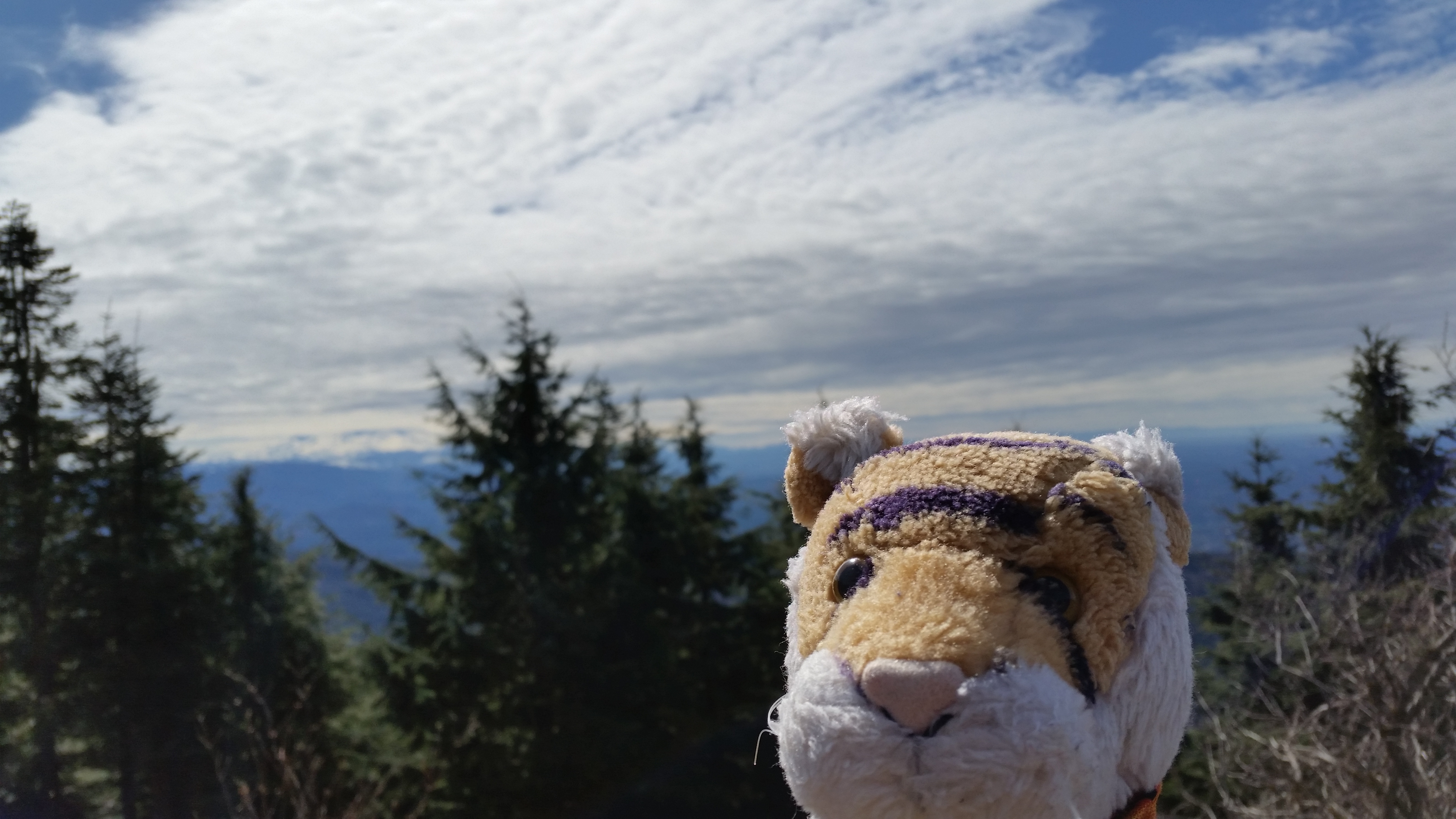 We went hiking on Tiger Mountain!!! Tigers rule! Mt. Rainier is in the background but is partly hidden by the cool clouds.