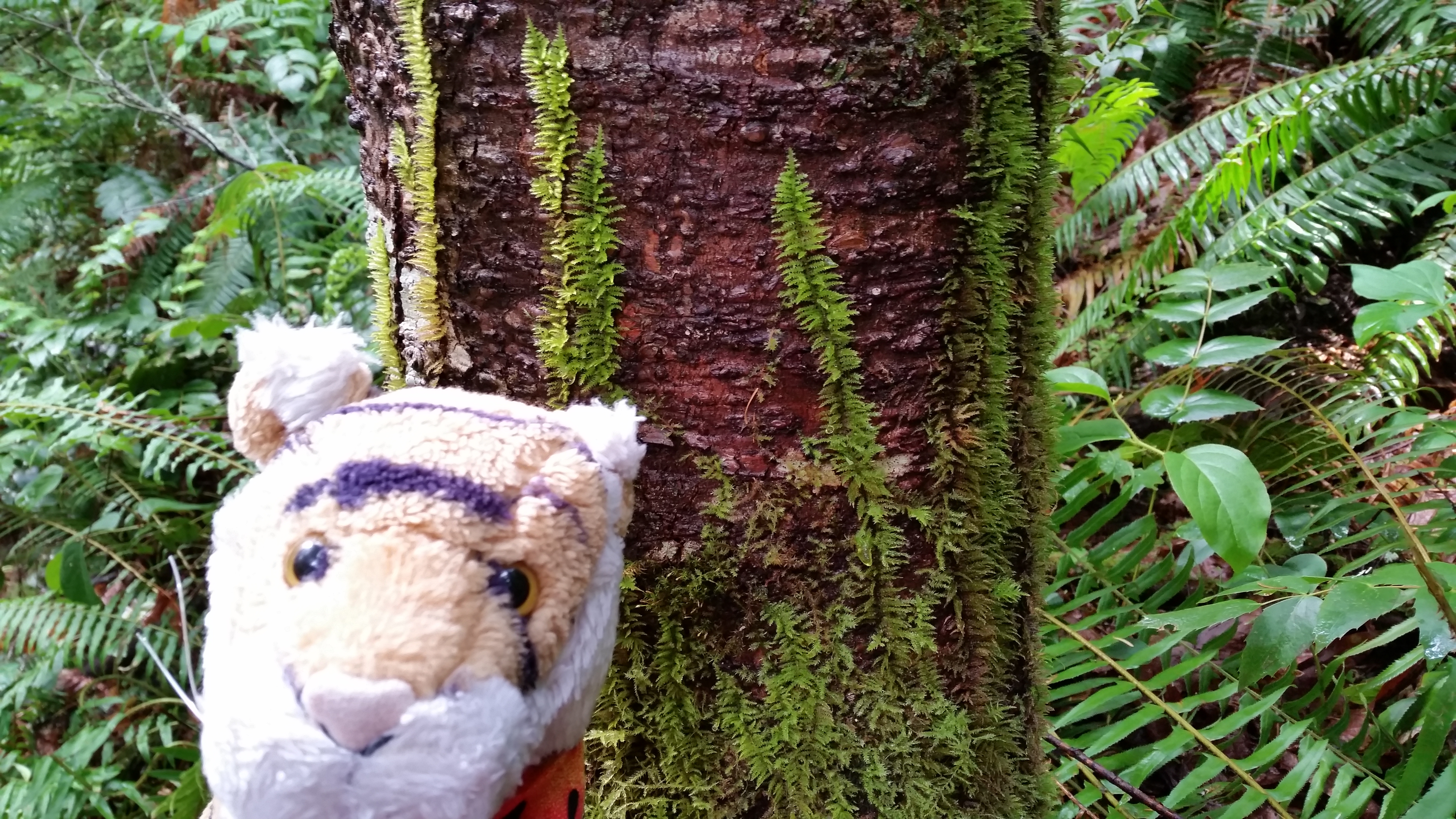 Here is a photo showing how the moss climbs up the trees!