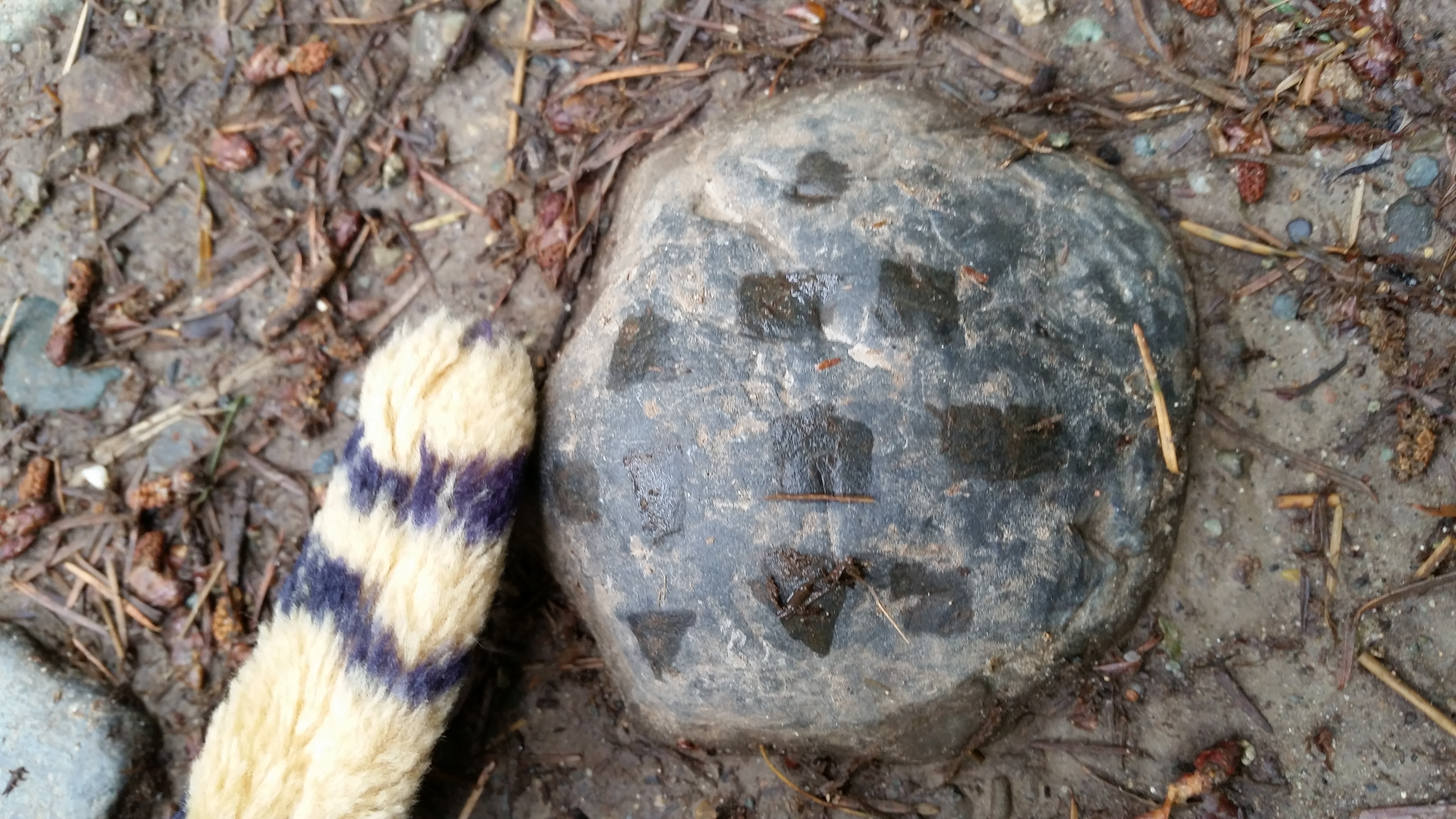 Mom let me use the camera !!!! Here is my best photo it is a rock with a wet print of a bicycle tire. There were lot of mountain bikers on the trails.