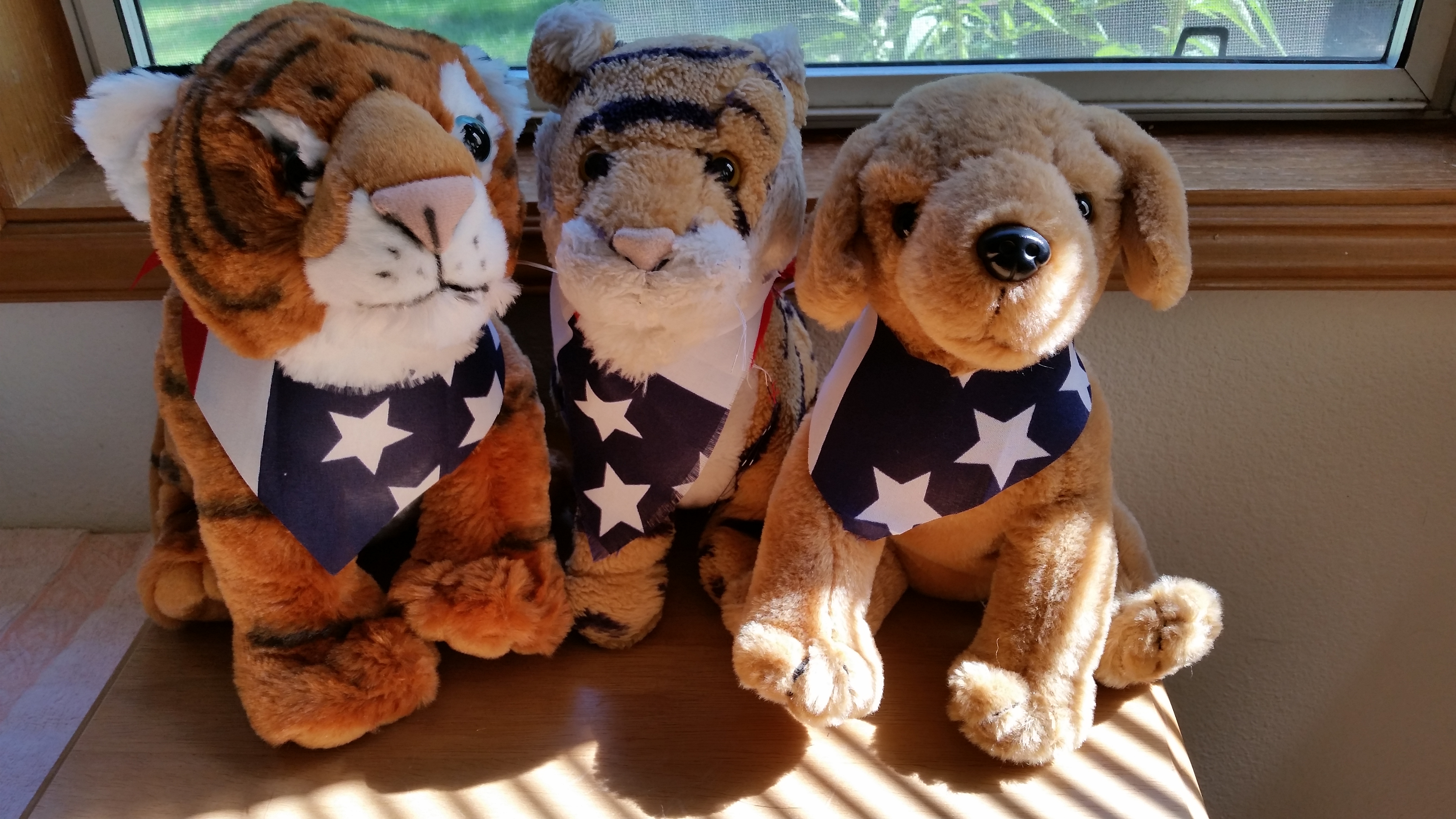 When we got home mom made super new patriotic bandanas for me and Dixie and Taj !! It is for the 4th of July! It was a great weekend!