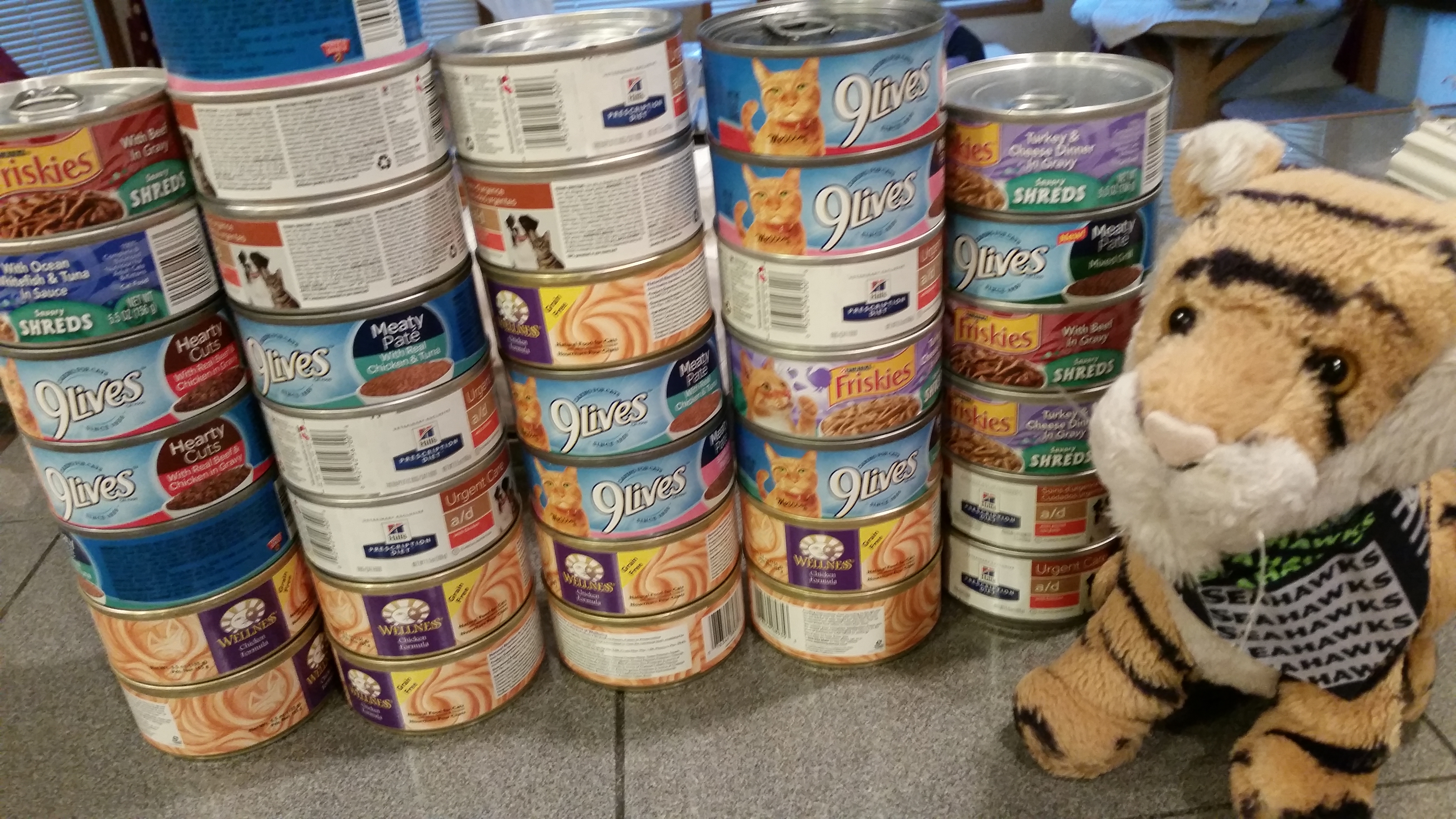 This is about one week of canned food for Dolly. She is eating at least 5 cans of food a day plus kibble too! The recycling bin is always full of cat food cans.