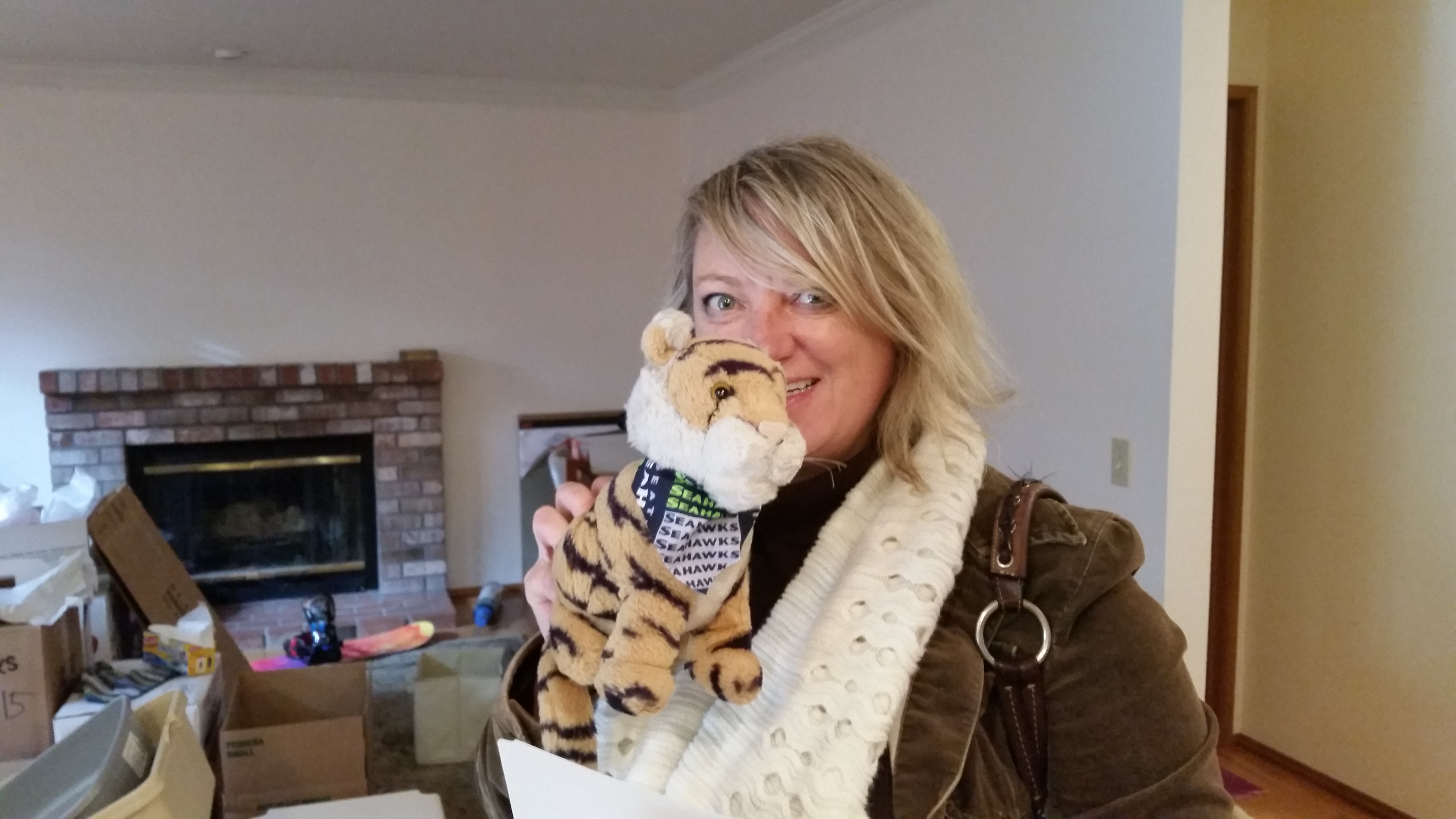 A few days ago Mom’s friend Caprice came over. She is totally gorgeous and also very funny with all kinds of stories amazing. Caprice is a realtor and she is going to sell our house in Auburn! You can see some of the packing boxes behind her. We have been doing a LOT of packing. I made sure we packed all my bandanas.