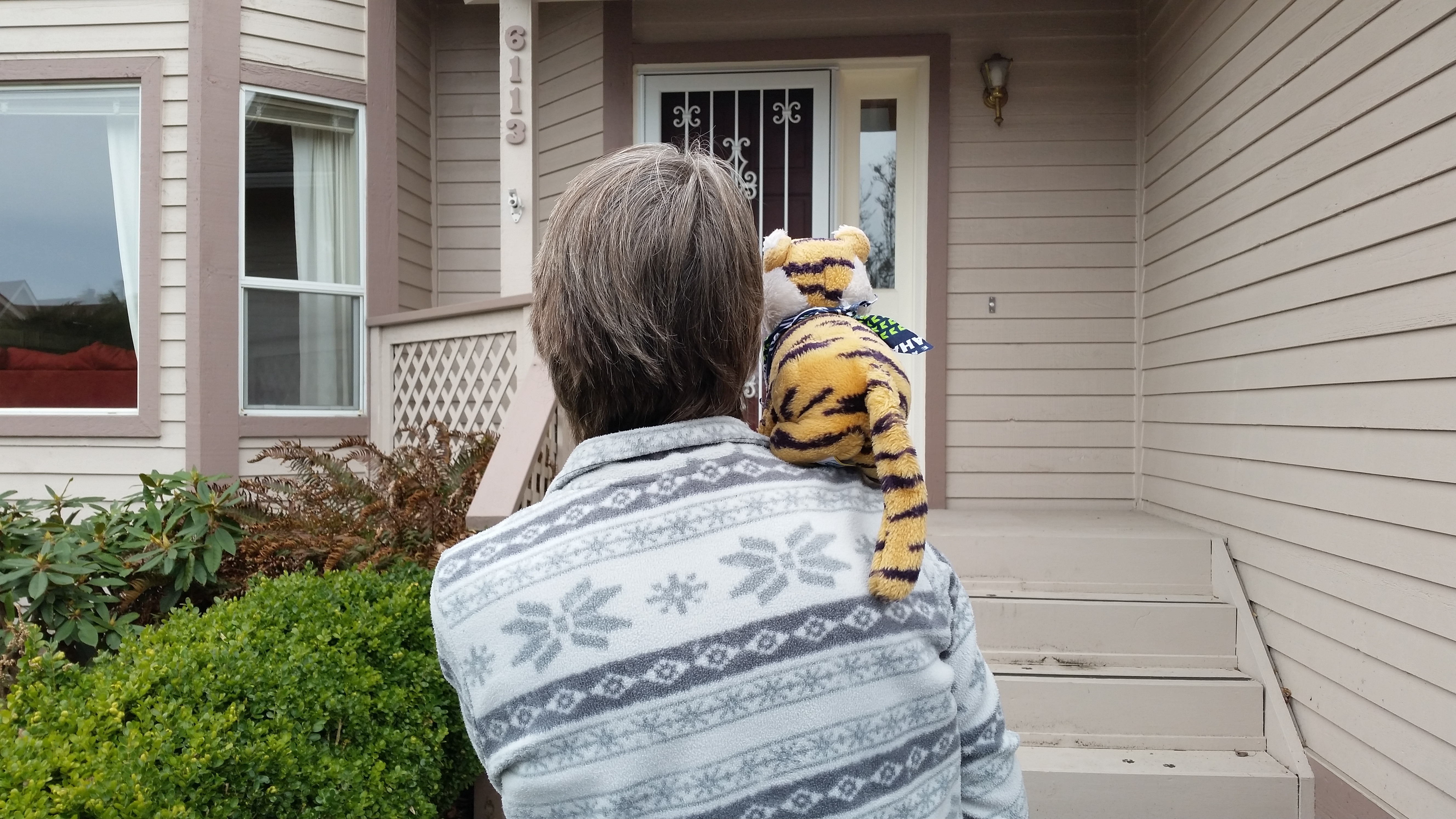 We did this road trip so we could pick up the last things at the old house like the lawnmower. Here we are saying goodbye to the house. It was a good house.