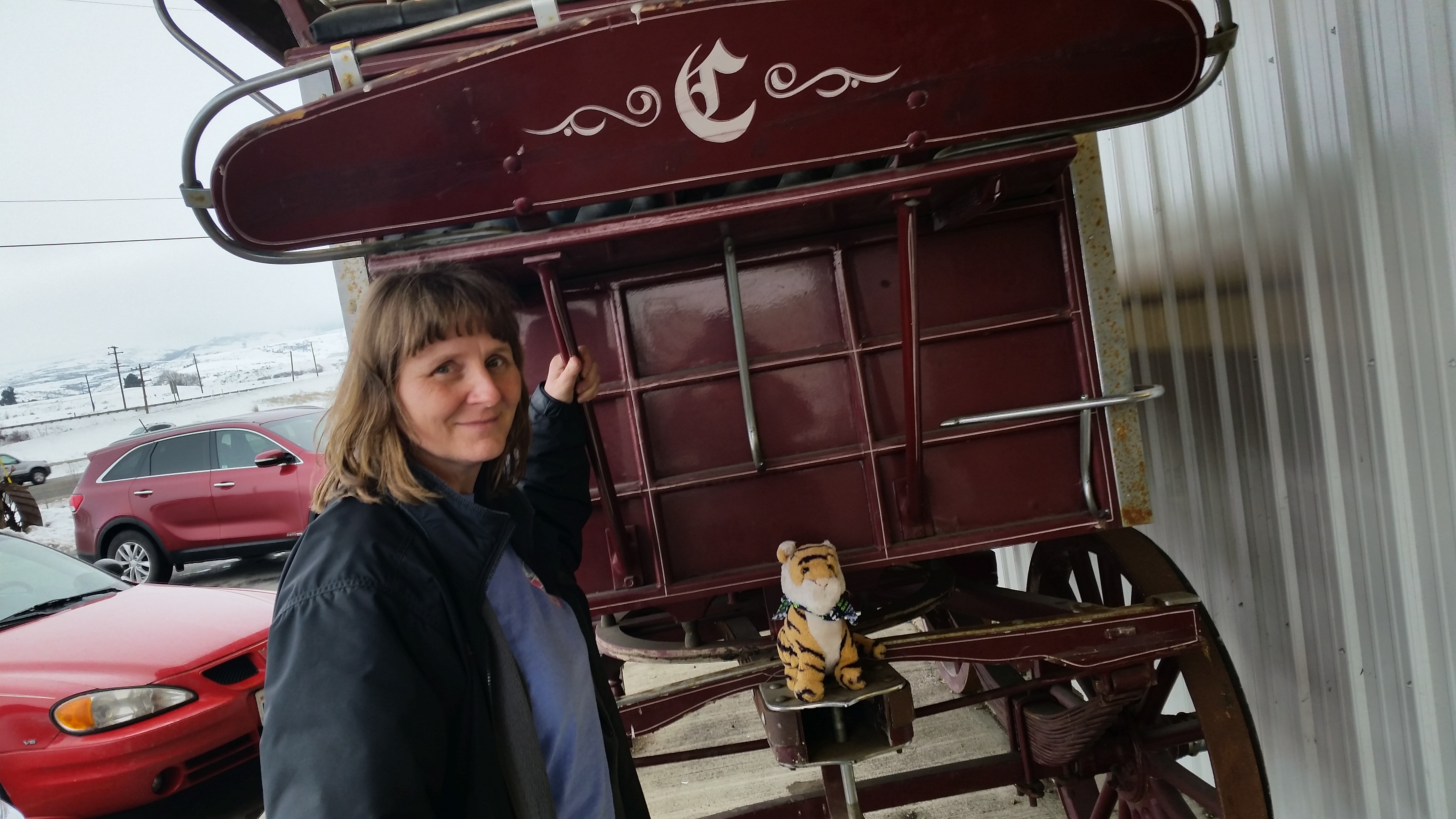 Here I am outside the store with Margo !!! We are looking at a horse carriage. Margo is a super good friend and is really funny and totally gorgeous and also lets me help drive which Mom does not do. Margo is my best friend. She lets me help drive the car.