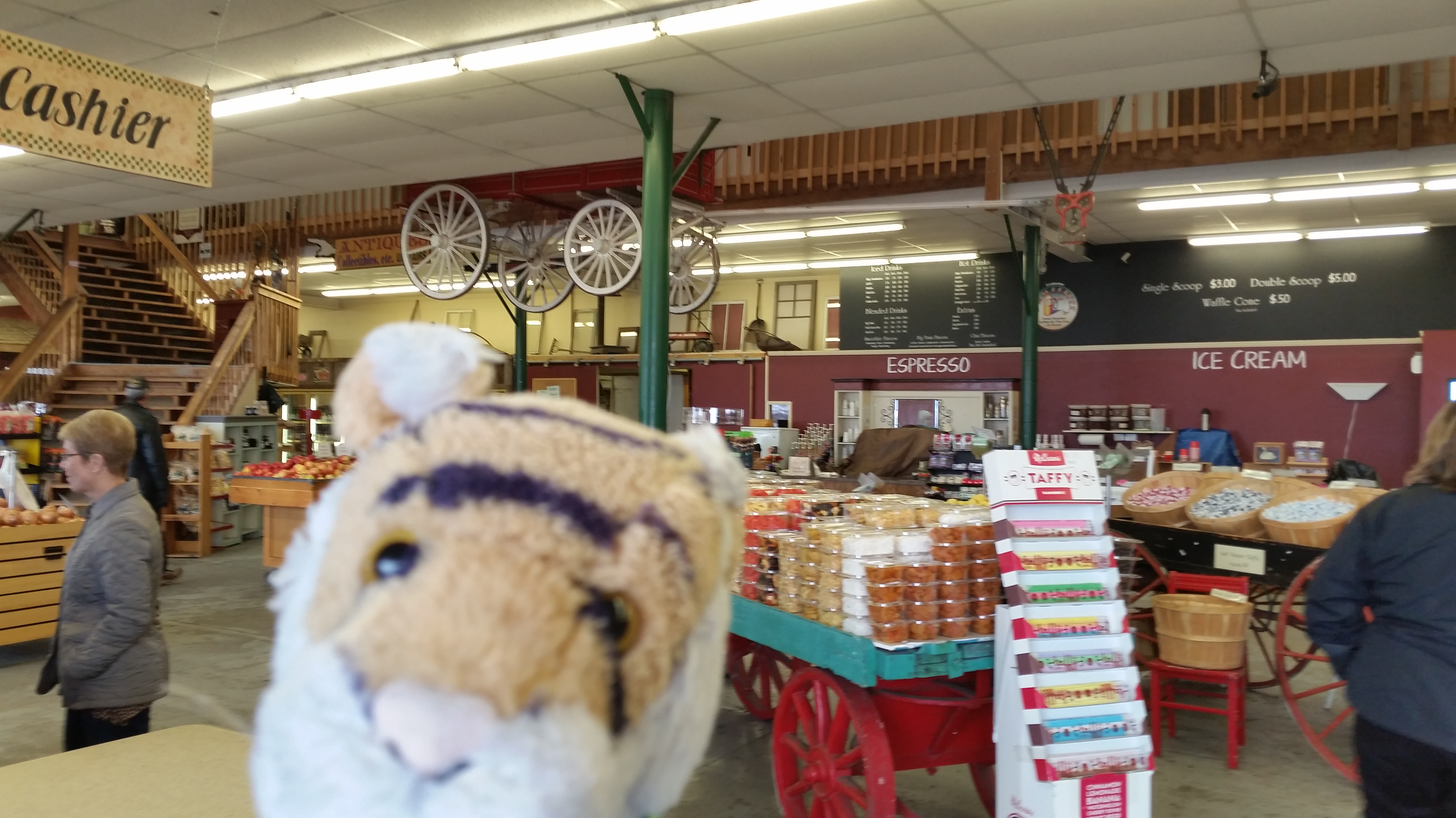 We stopped in Thorp to go to the gigantic fruit stand that is open year round! They had all kinds of great stuff for sale like ice cream and taffy and espresso. All those things are exactly what a Tiger needs in the car on a road trip!