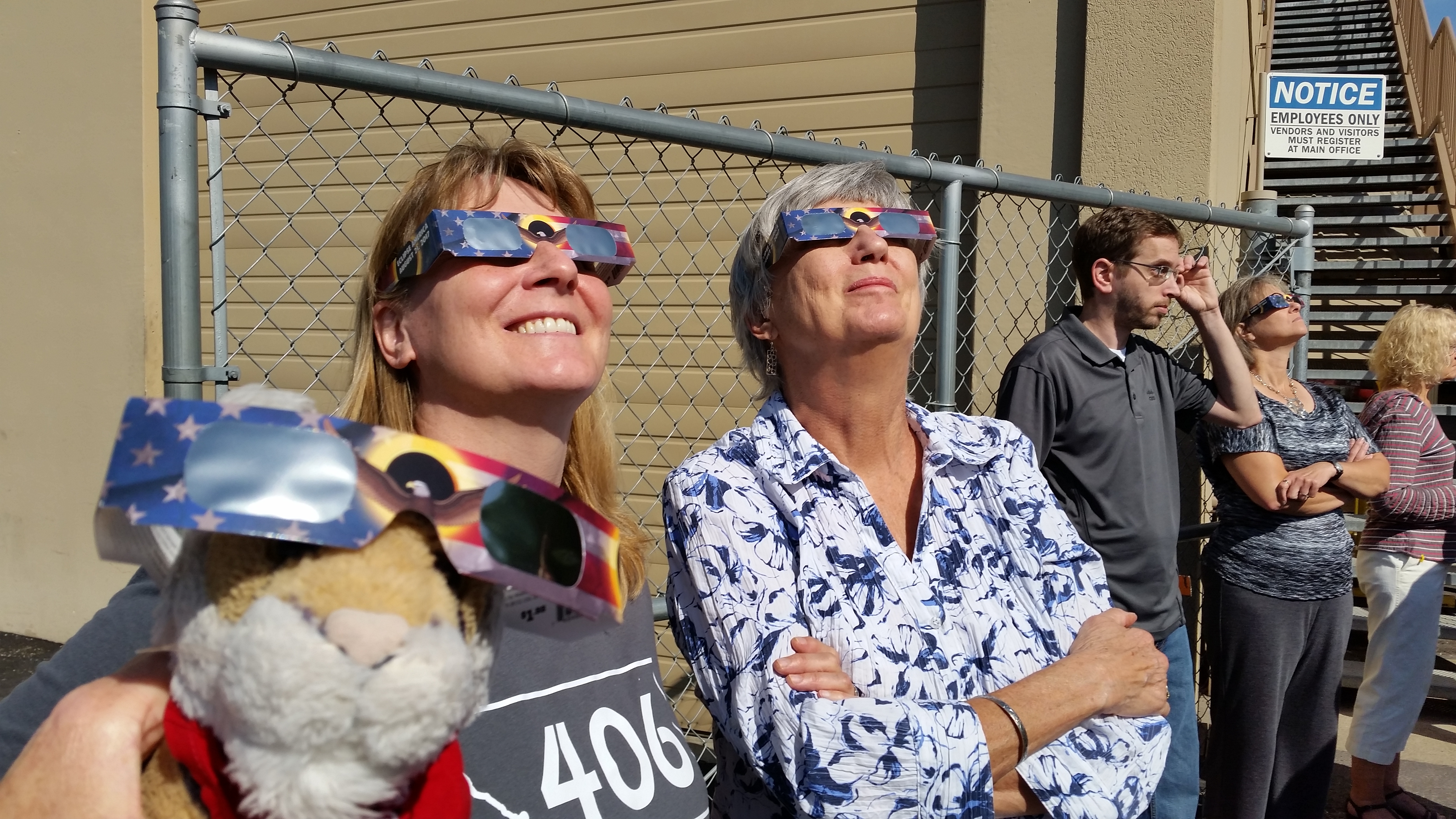 Also I want to report that at work last week there was an Eclipse party! With donuts! The eclipse was great here I am wearing my eclipse glasses with Margo and Laurie.