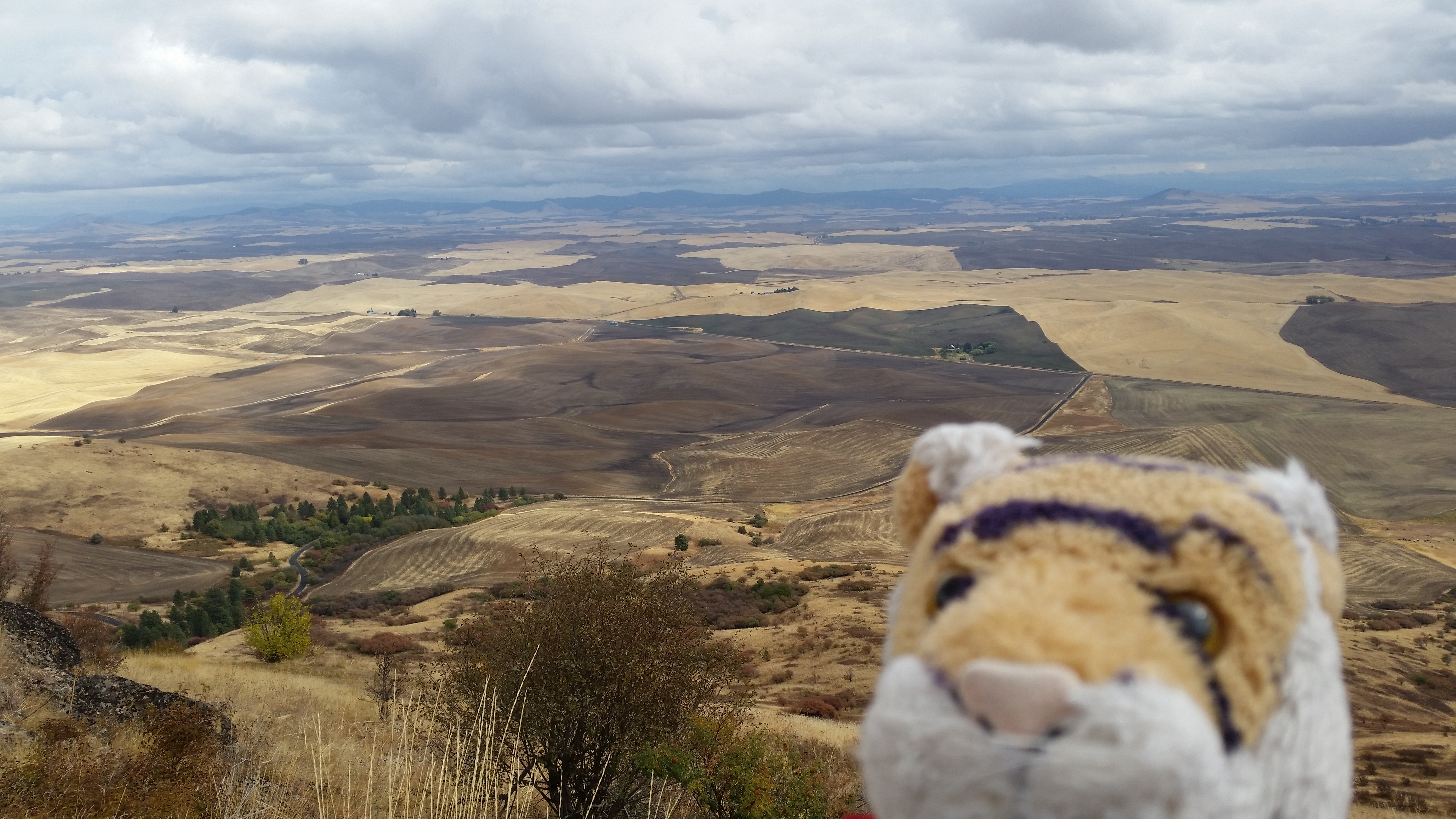 We also went to Steptoe Butte HA HA HA! Mom says it is not pronounced butt I KNOW that but it is still funny to think about. At the top there is a great view of the Palouse Hills and you can see some of the farms and ranches in the area. I am standing on some of the oldest rock in the Pacific Northwest!