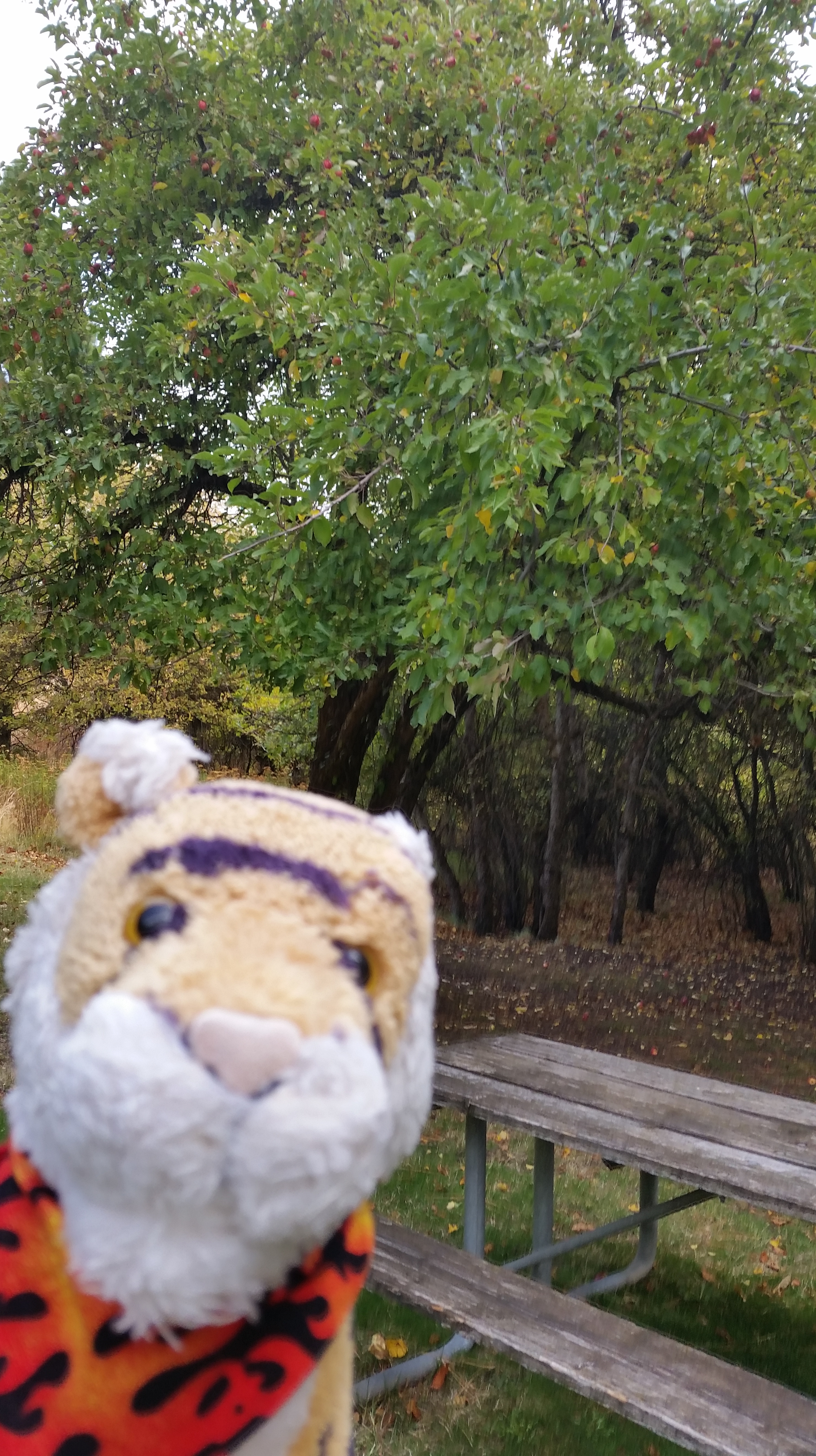 At the bottom there is a picnic area in the middle of an apple orchard!