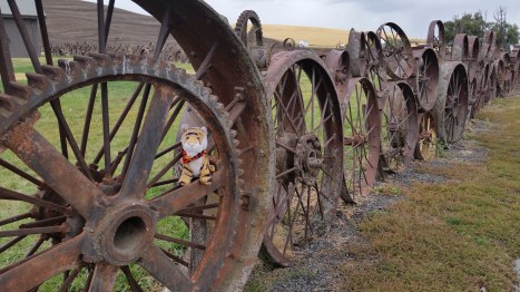Outside the barn is this awesome fence made of over 1000 wagon wheels!