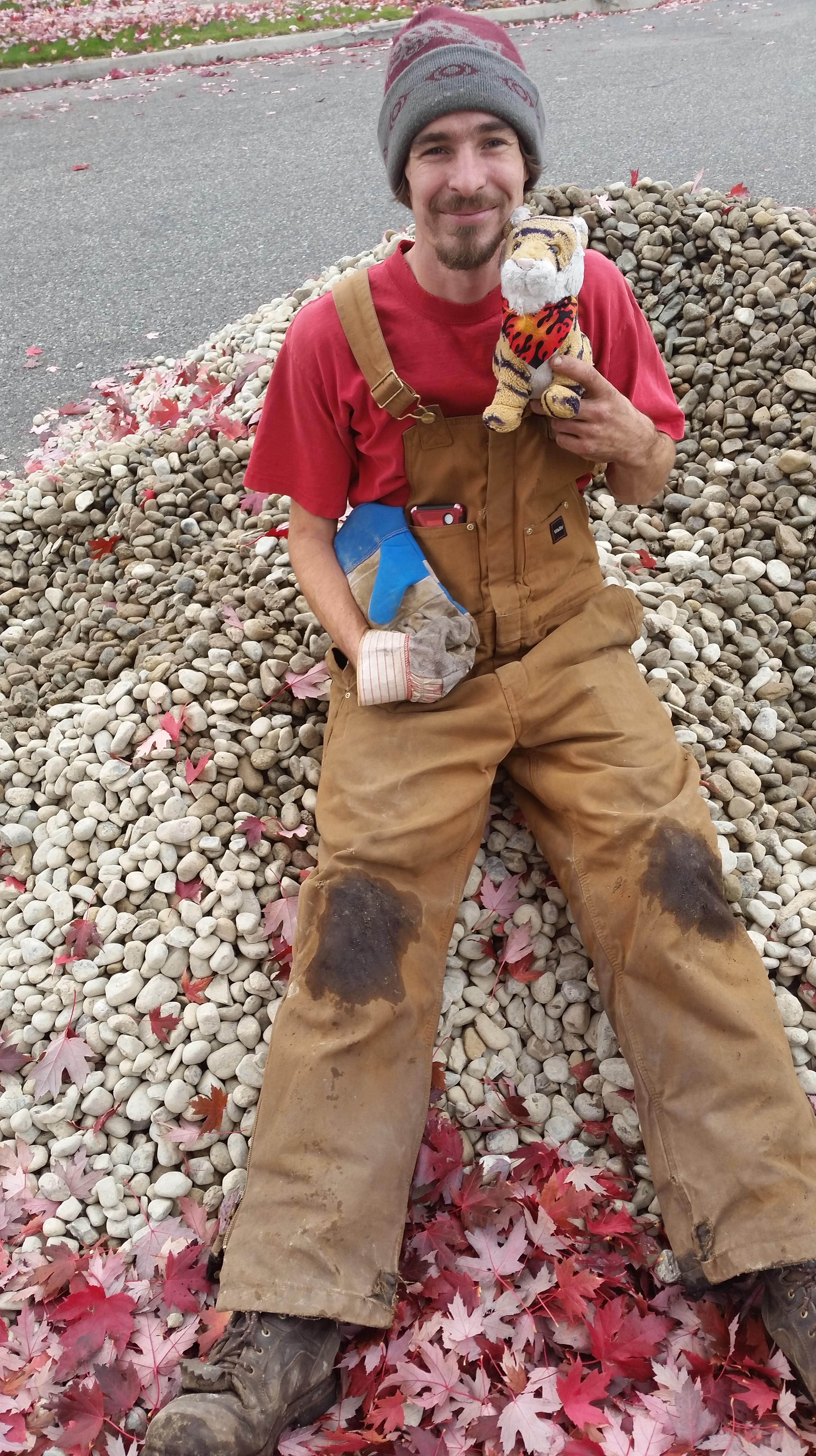 Yesterday Marcus who has been doing some landscaping for us came over and shoveled rocks all day! It was a huge pile of rocks! Marcus is super nice and handsome but not quite as handsome as me. I wanted to help move rocks but mom had me help fix him a grilled cheese sandwich for lunch and I only got a little bit of fur in it.