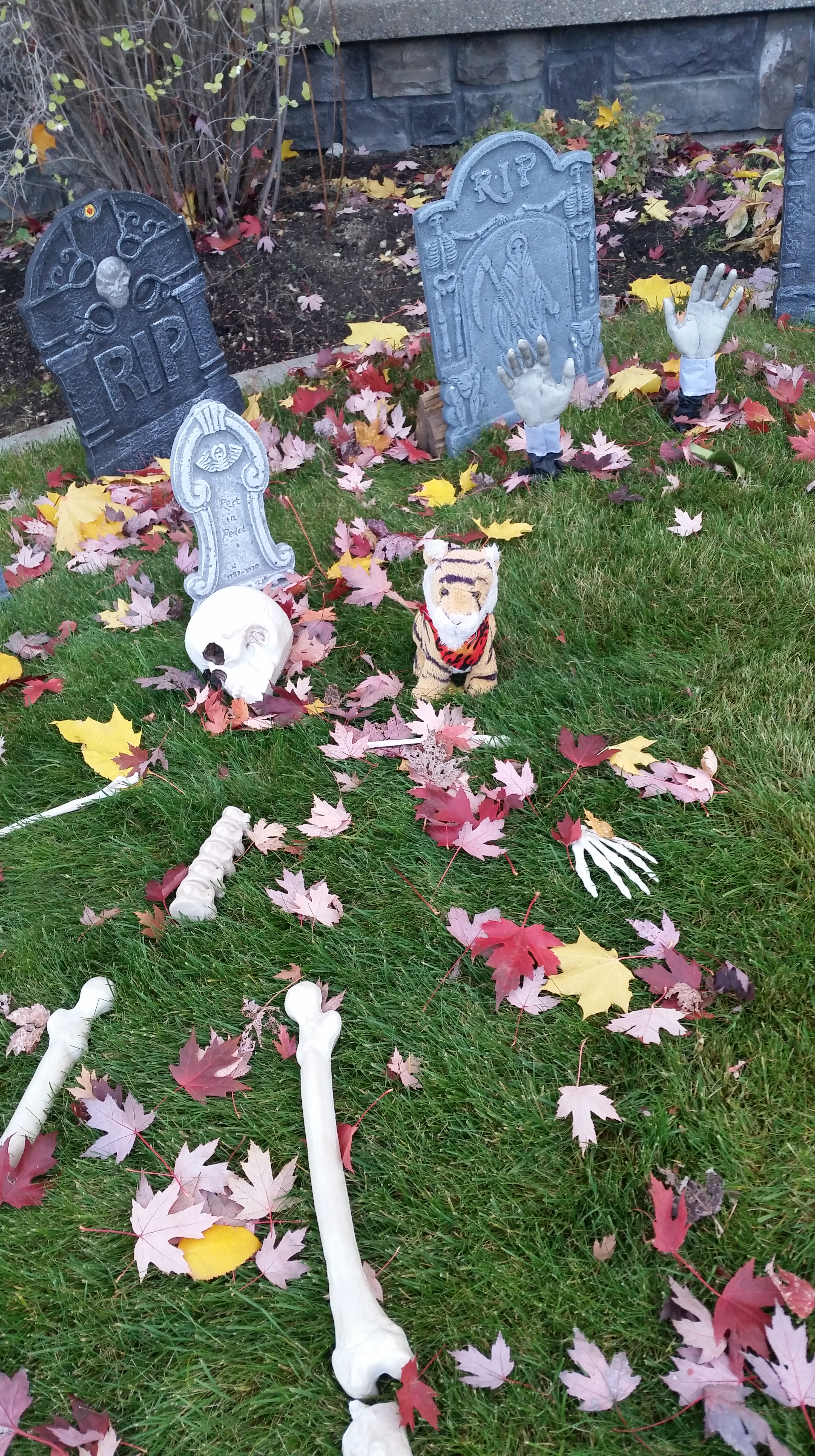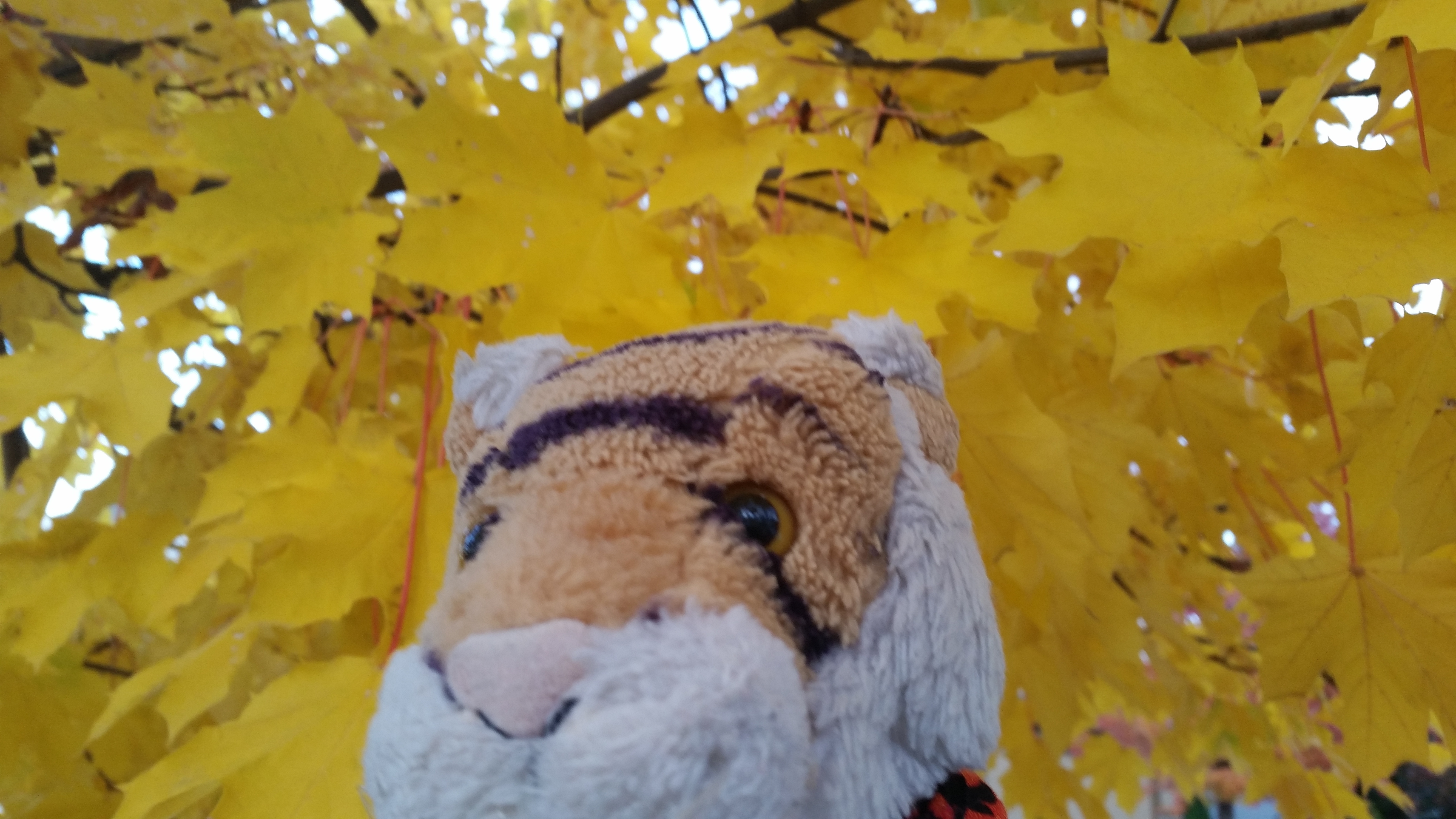 Here are pictures of leaves on trees in our street. We’ve been raking leaves a lot!