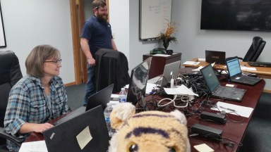 Oh Boy! We spent the whole weekend at WORK! It was GREAT! We did a big domain migration whatever that is here is a photo of me outside Migration Command Center!