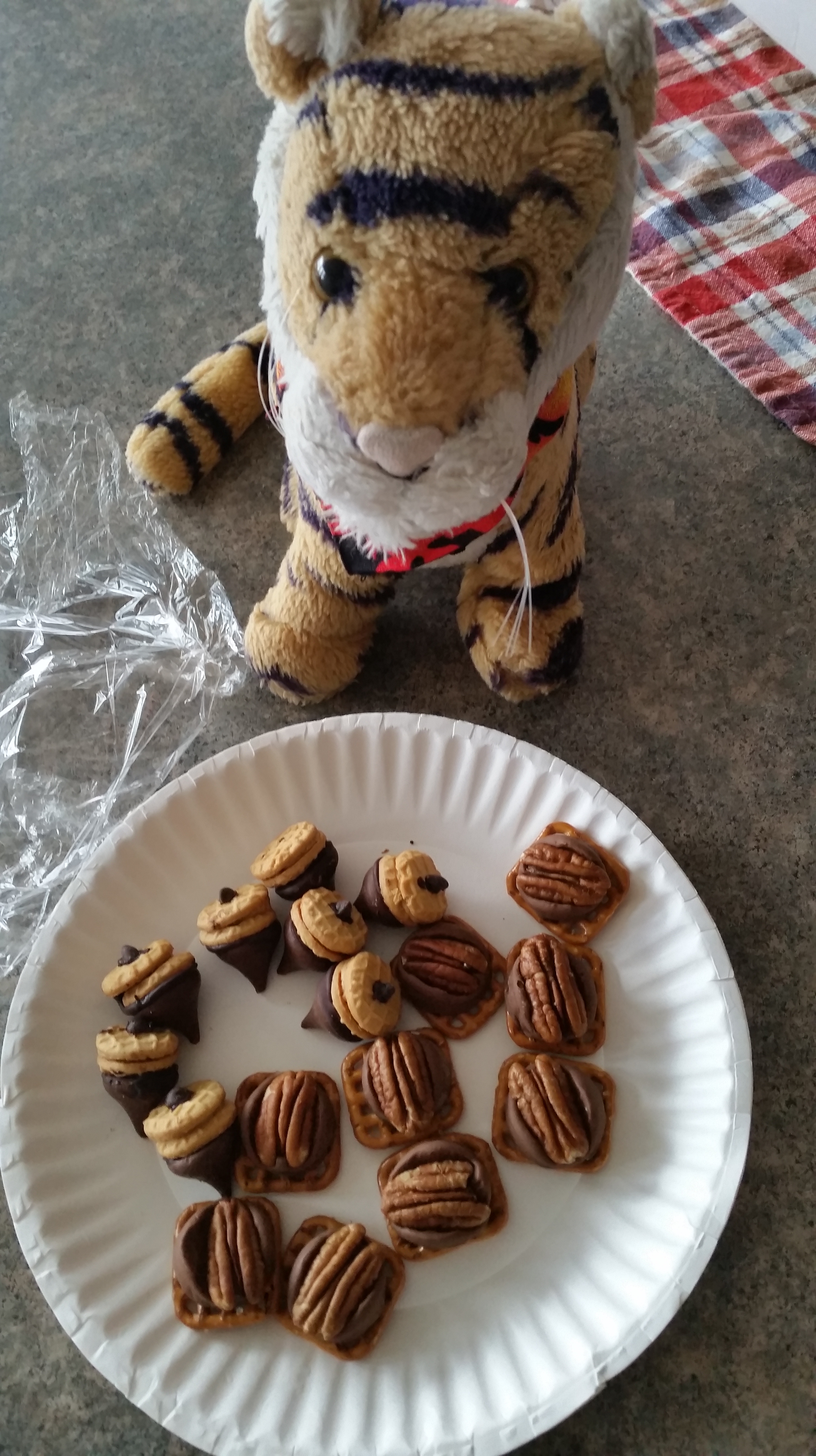 Oh boy we had a great Thanksgiving! First our awesome neighbor Lee brought over these terrific candy acorns and turtles that she made! Chocolate – yum yum!