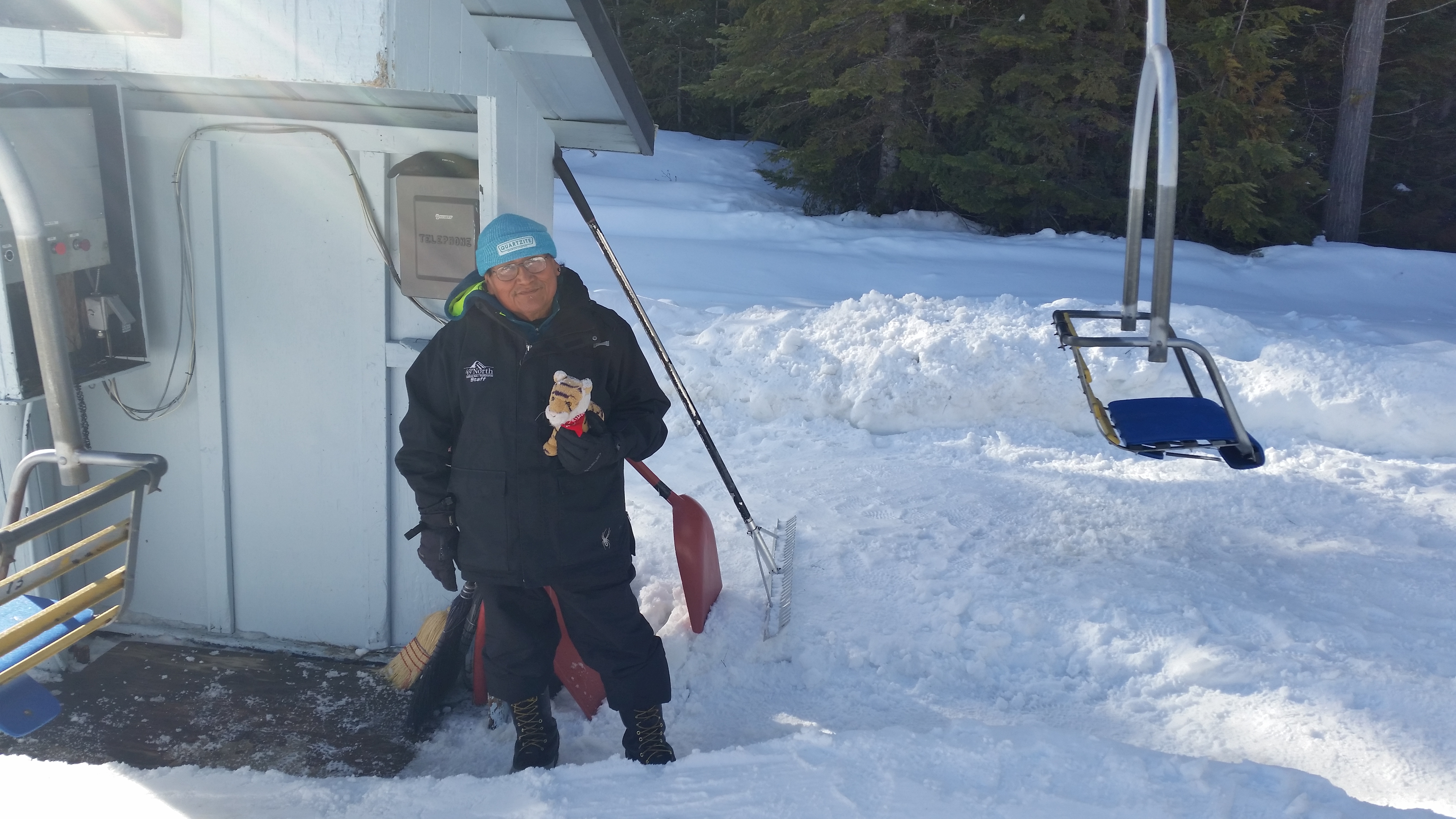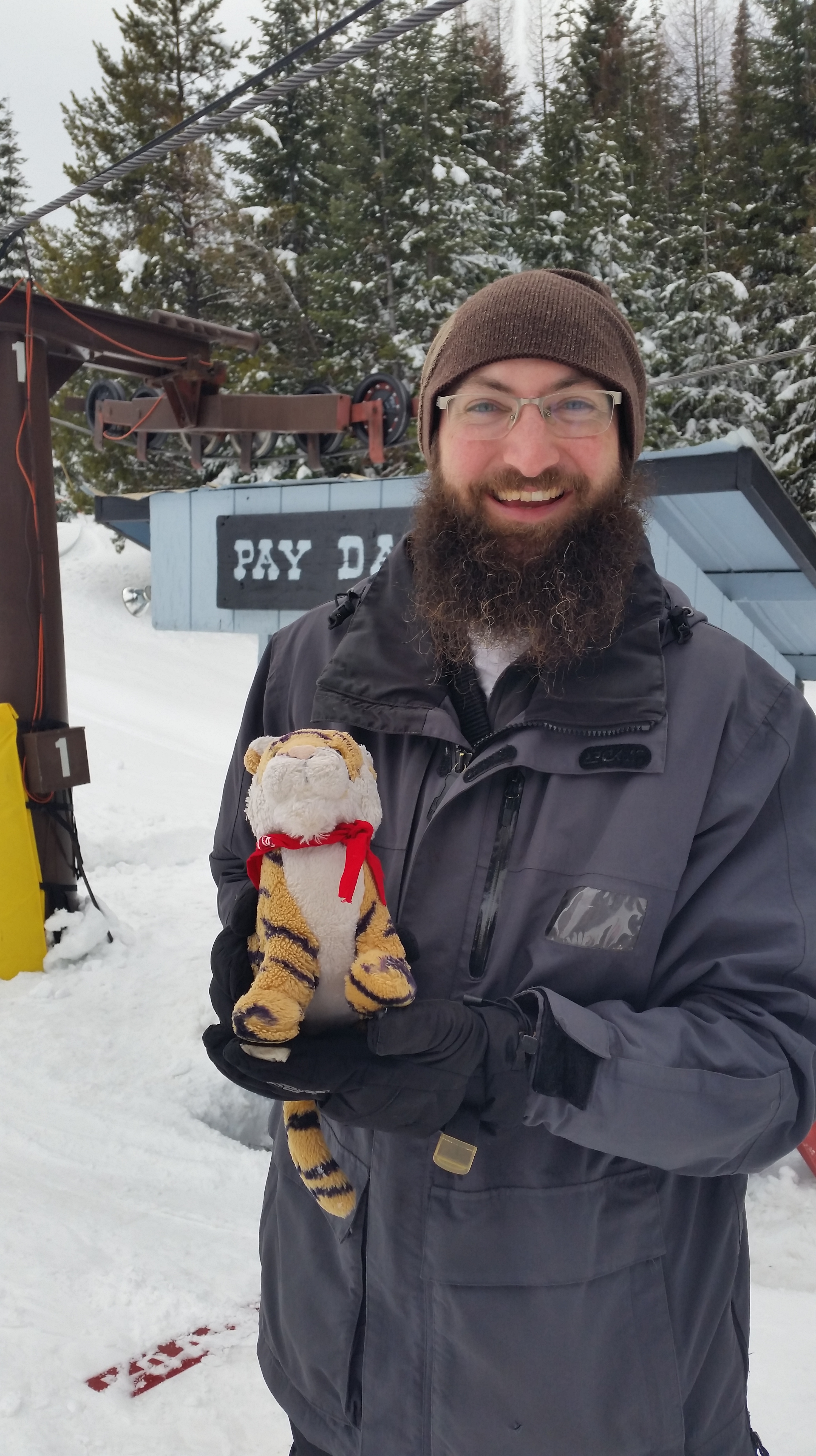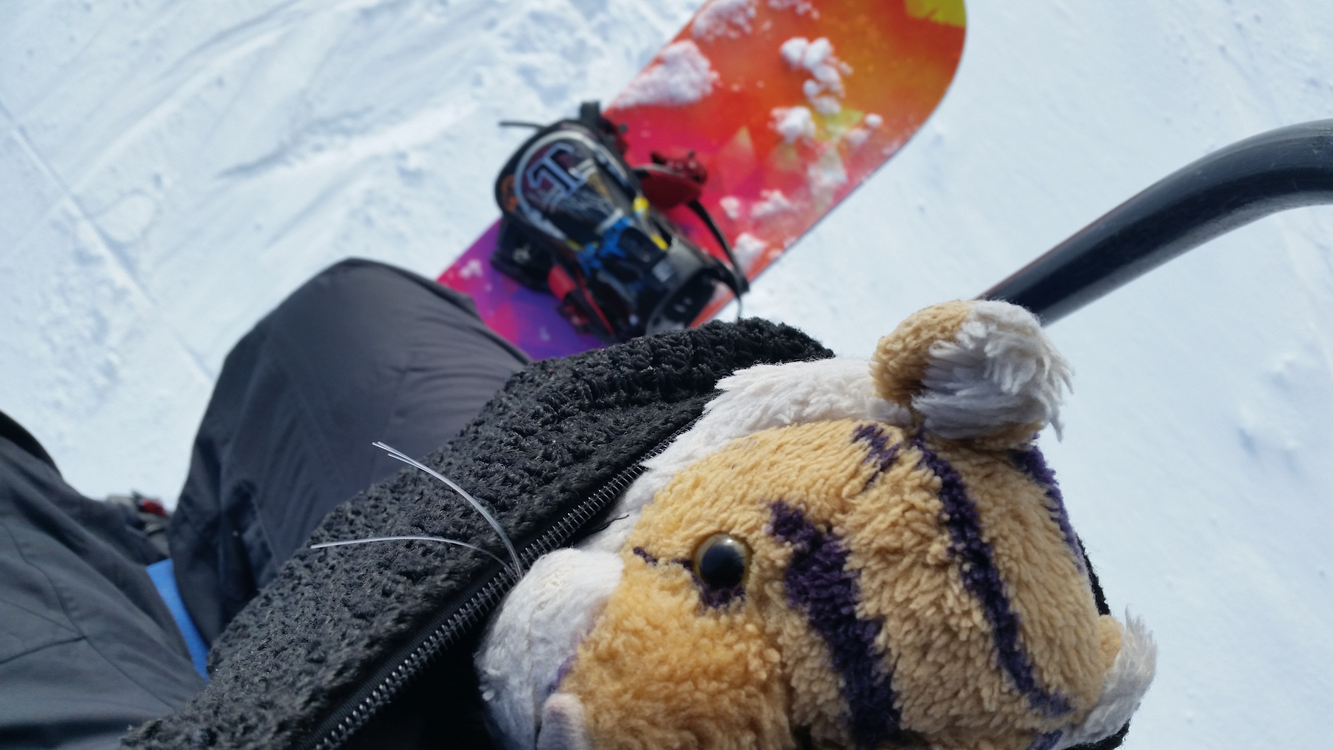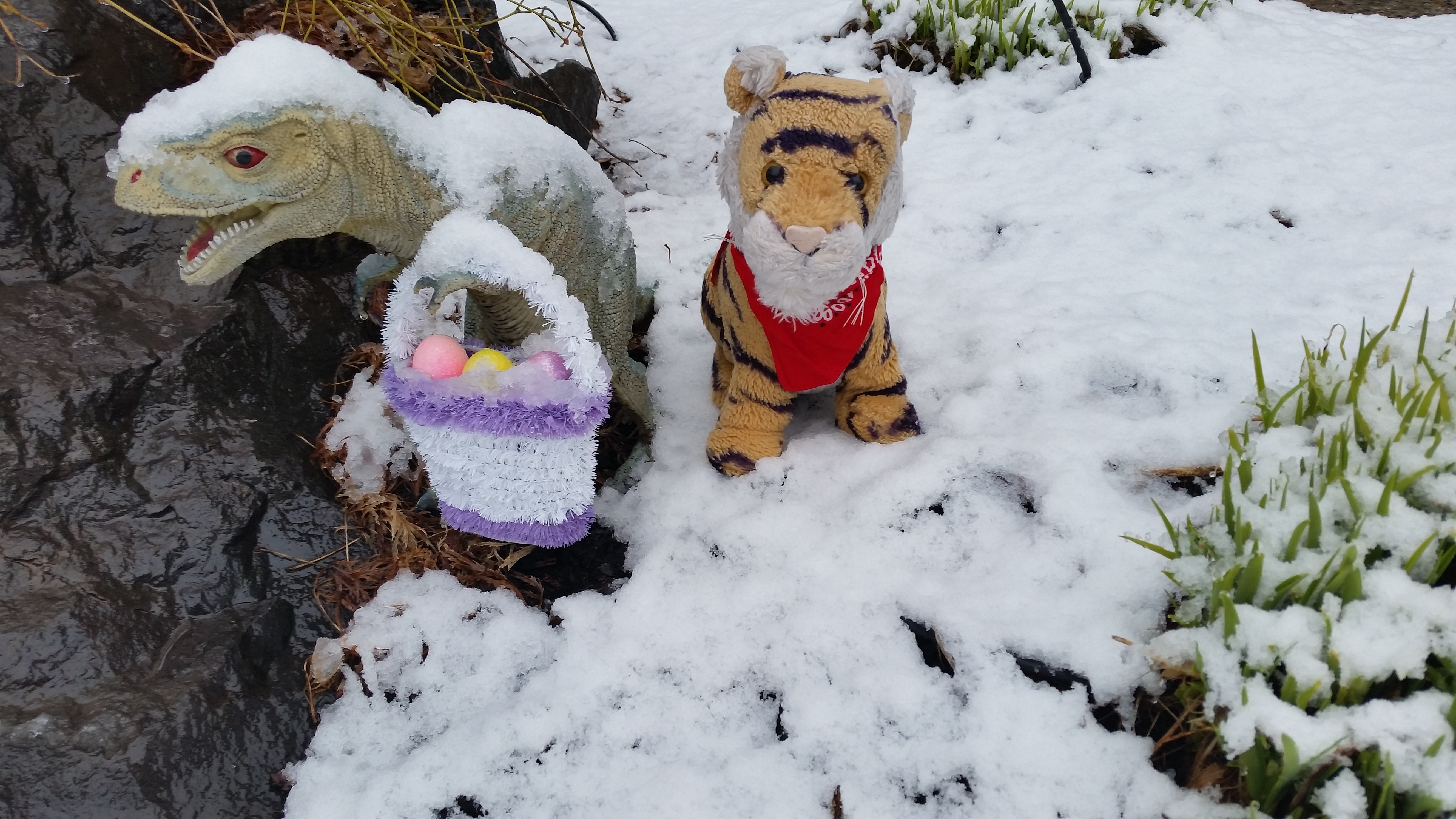 It is supposed to be the season called Spring but it is hard to tell. It has been cold and it even snowed at our house yesterday and today. Dino is all ready for Easter!
