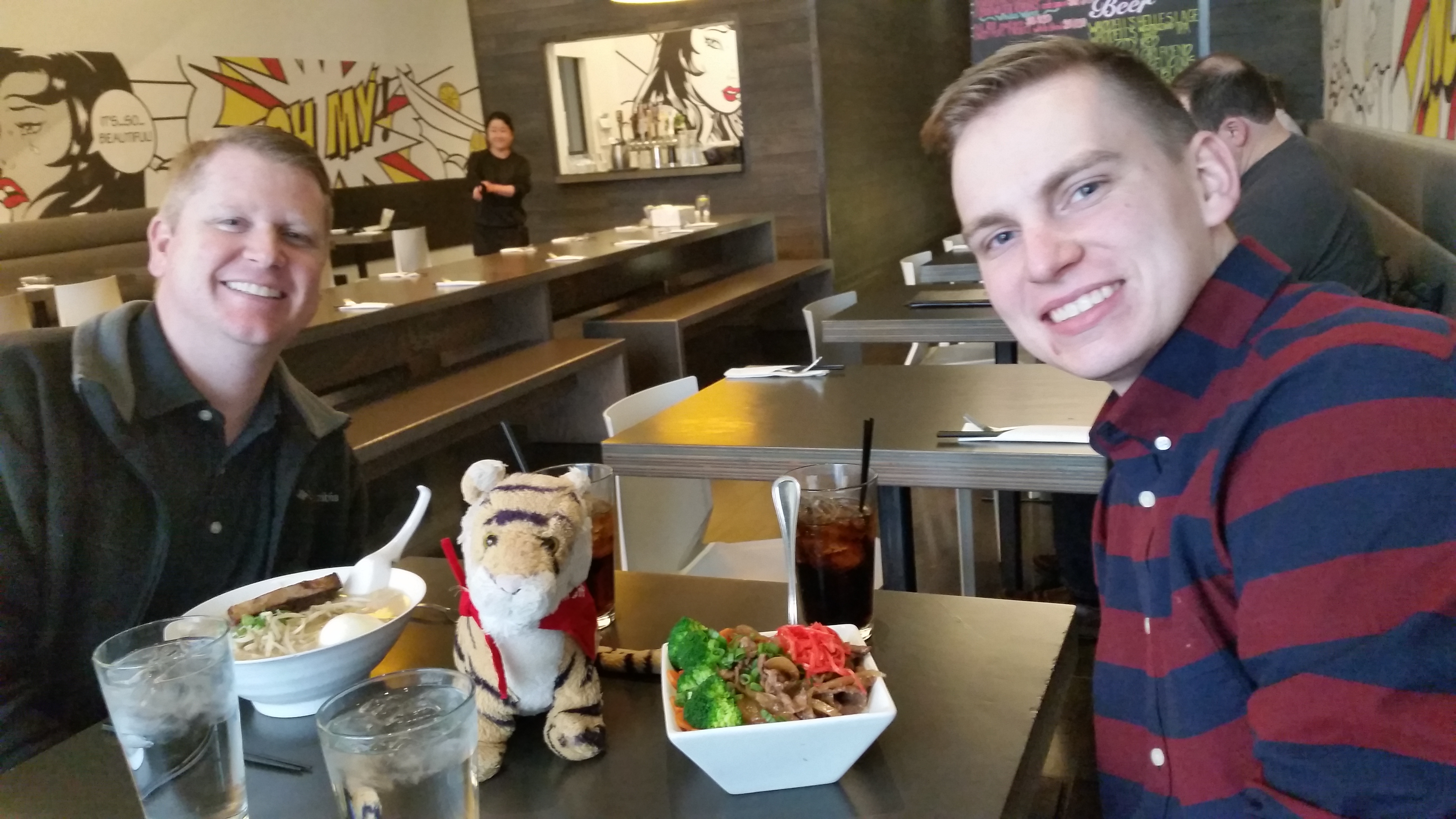 We went for a walk and met our awesome neighbor Rona and her dog Cooper! Rona is totally gorgeous and super nice and knows almost everyone in the neighborhood. Cooper is very well behaved. Most dogs try to chew on me but Copper did not.