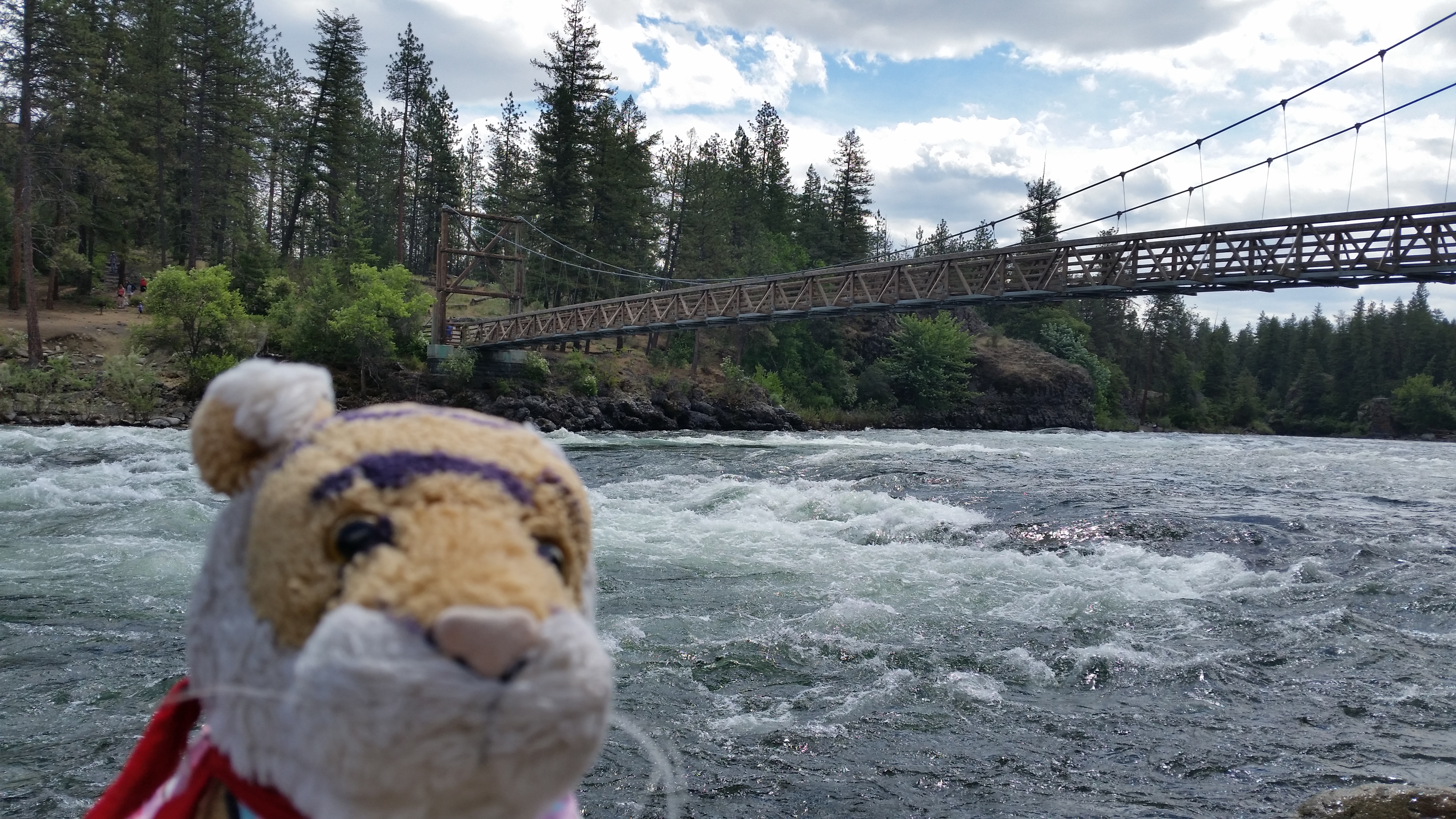 Here we are crossing the bridge. I asked mom to hold on tight to me! I am a Tiger I was not scared. No I was not! but wanted mom to feel more secure by holding me.