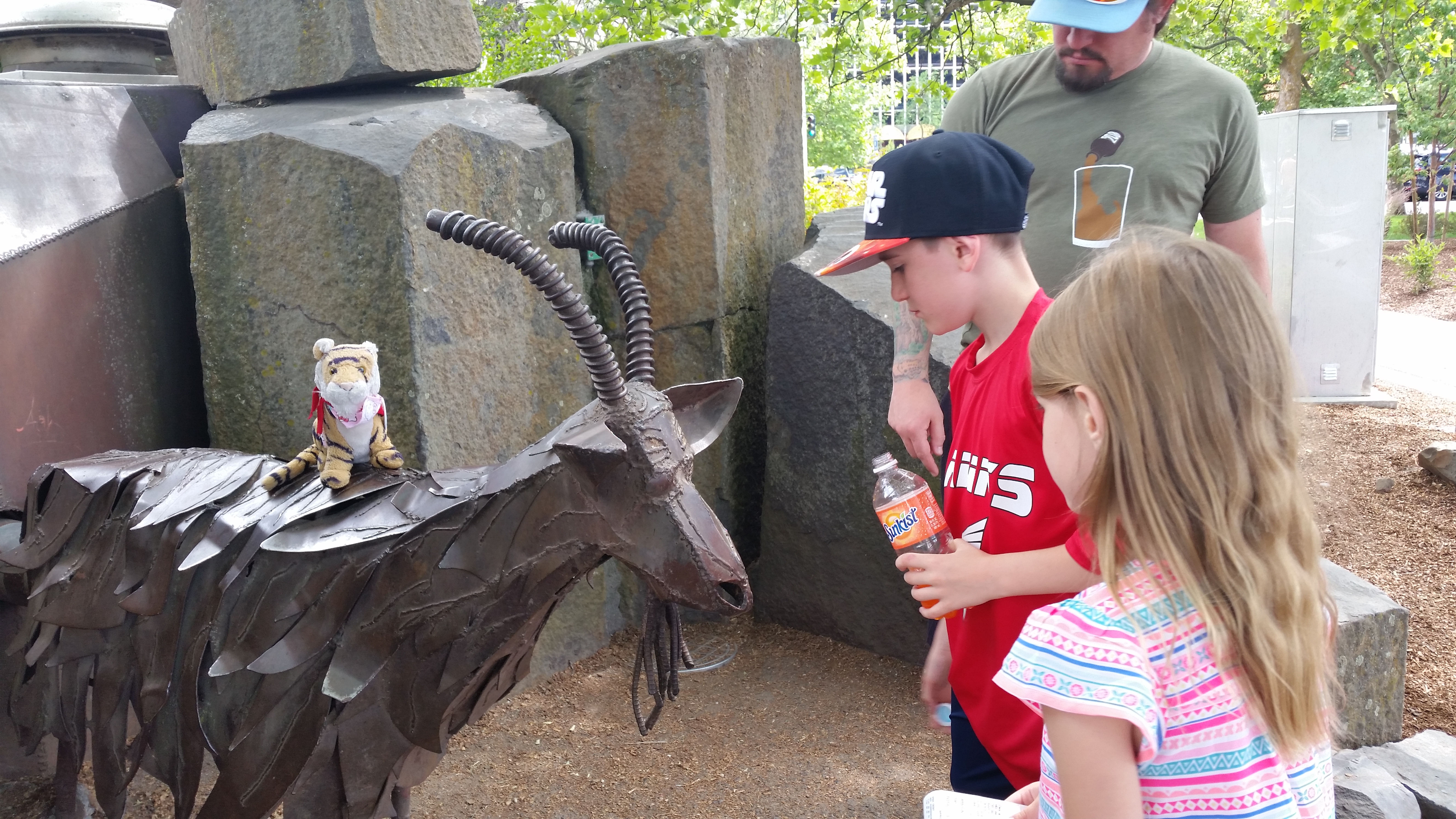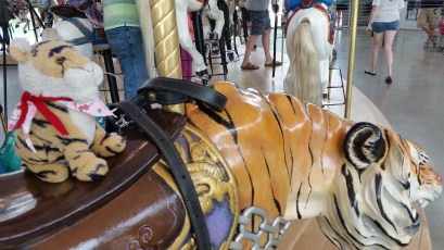 There is a merry-go-round downtown too and it has a TIGER!!!! Mom bought me a ticket so I could ride on it !!!!! It was super fantastic what a great day we had!